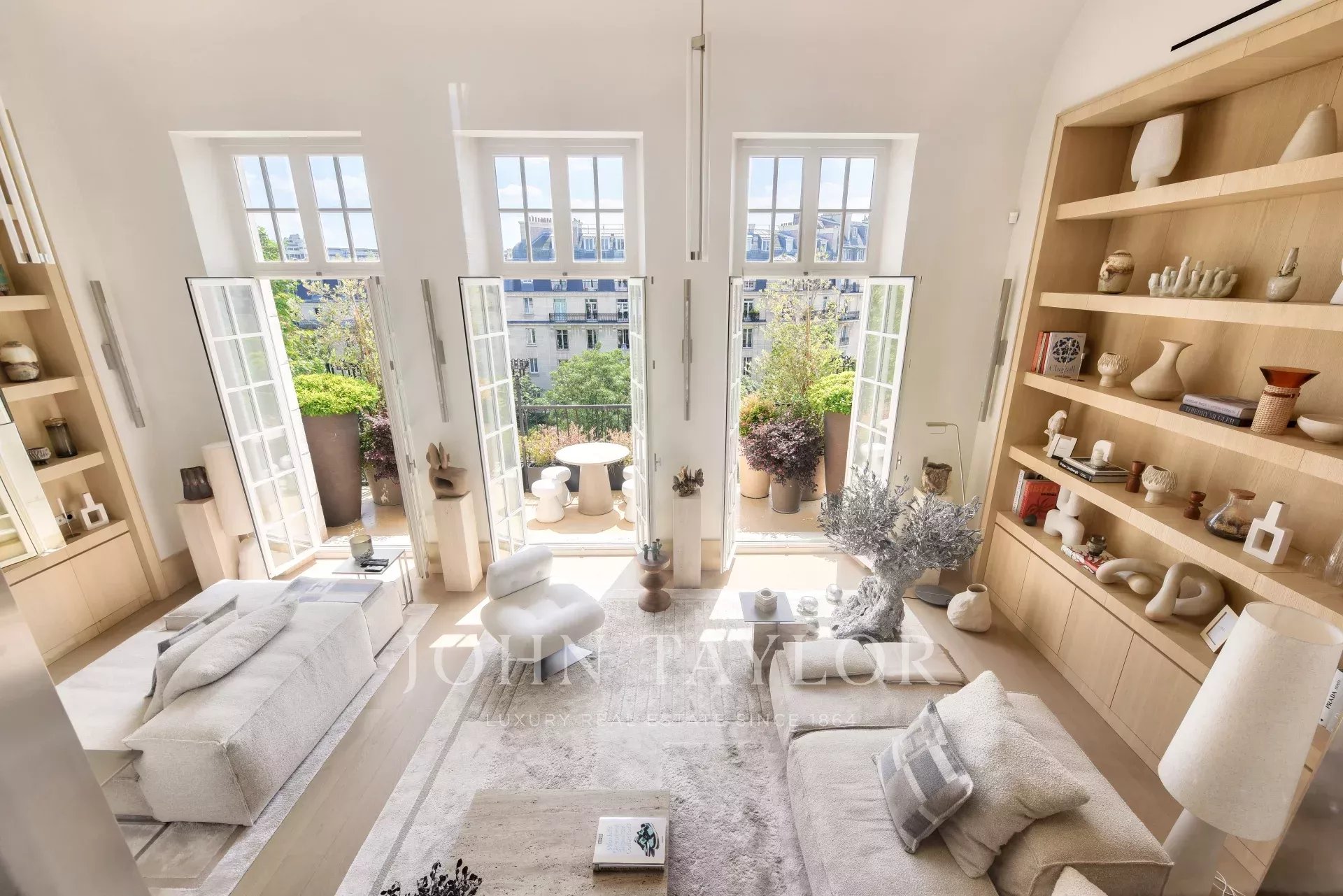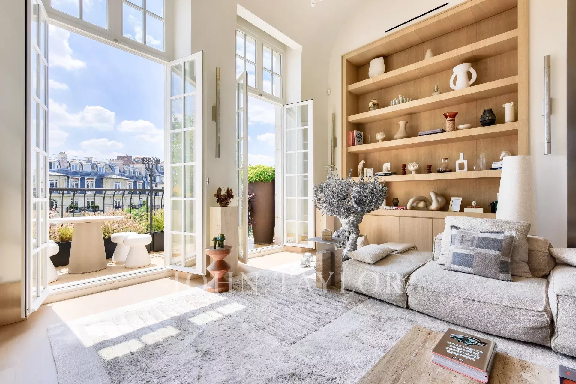 - double living room with nearly 6-metre high ceilings and ground-level terrace (14 m²)