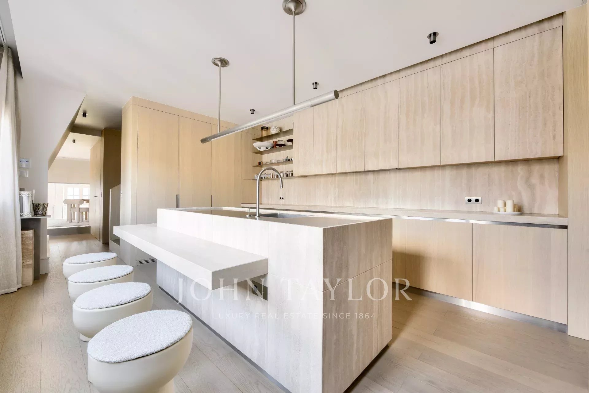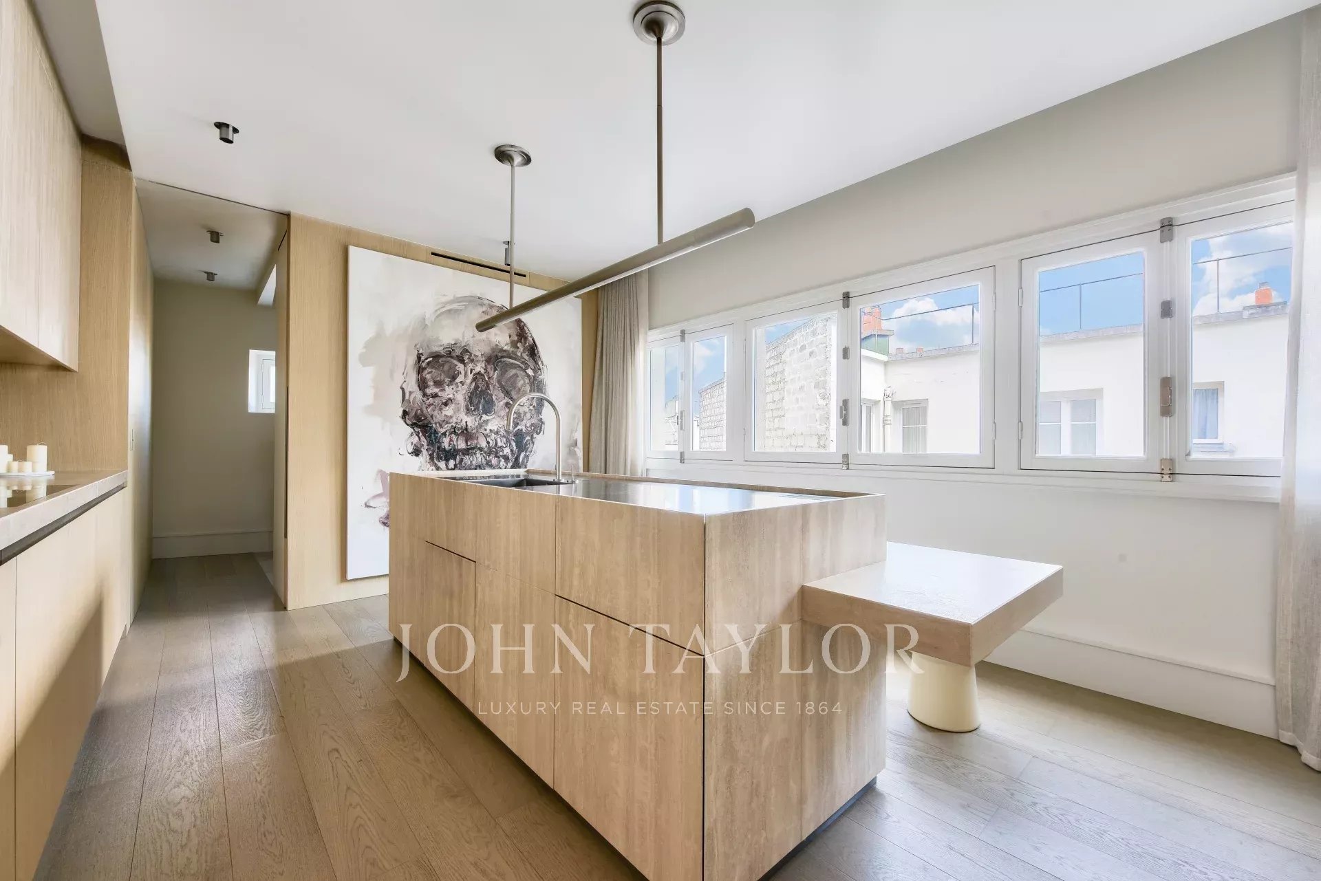 Completely renovated by an internationally renowned architect, this air-conditioned penthouse is sold furnished and is organized as follows: