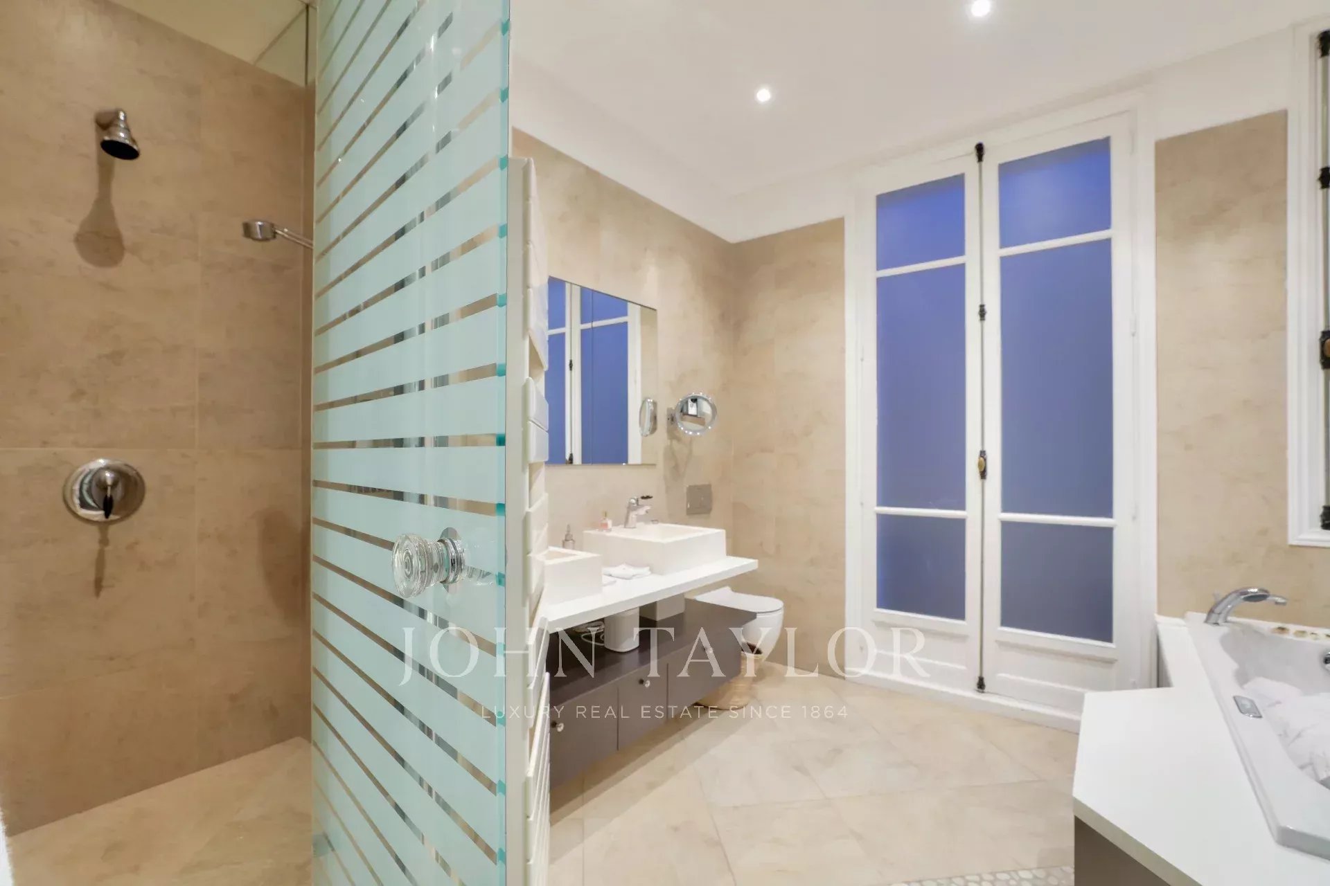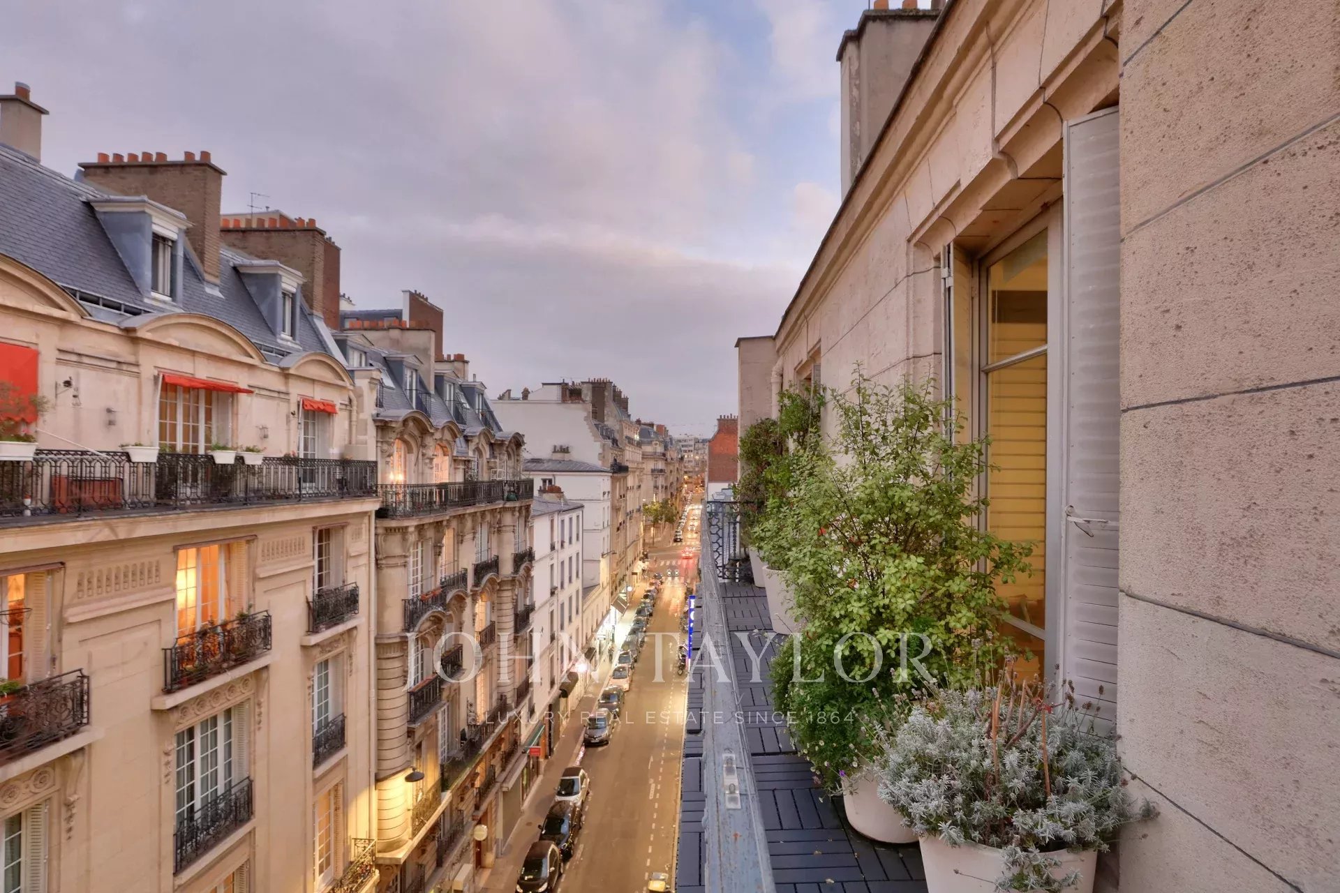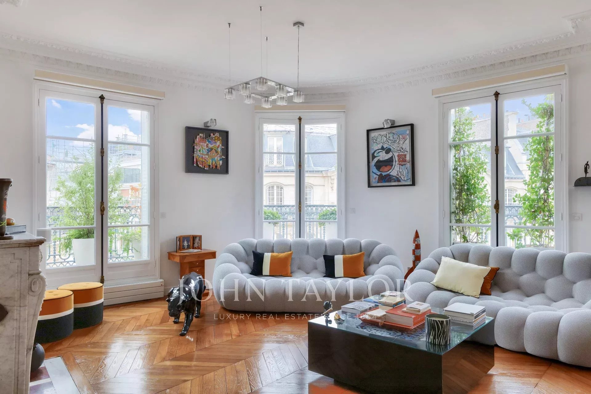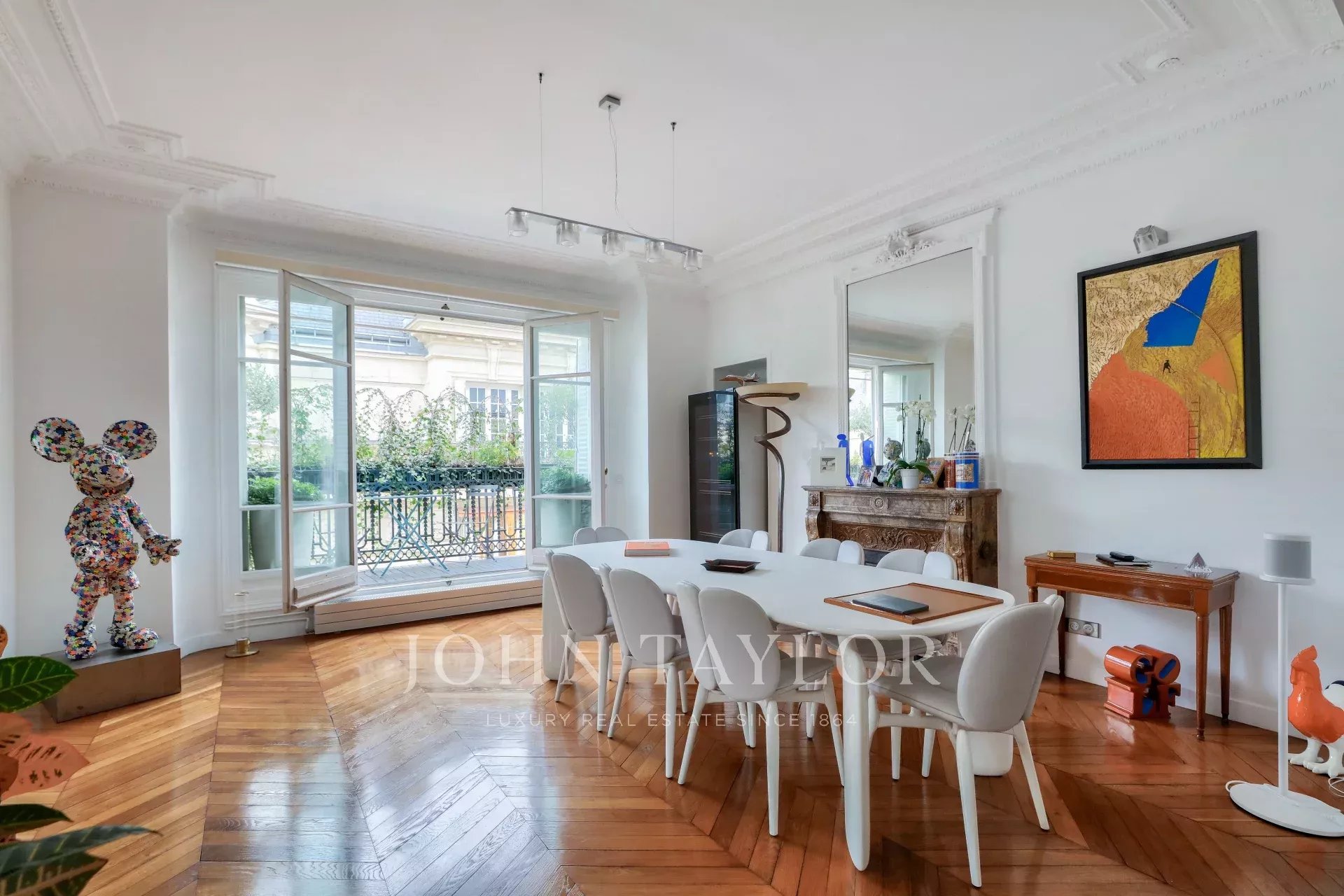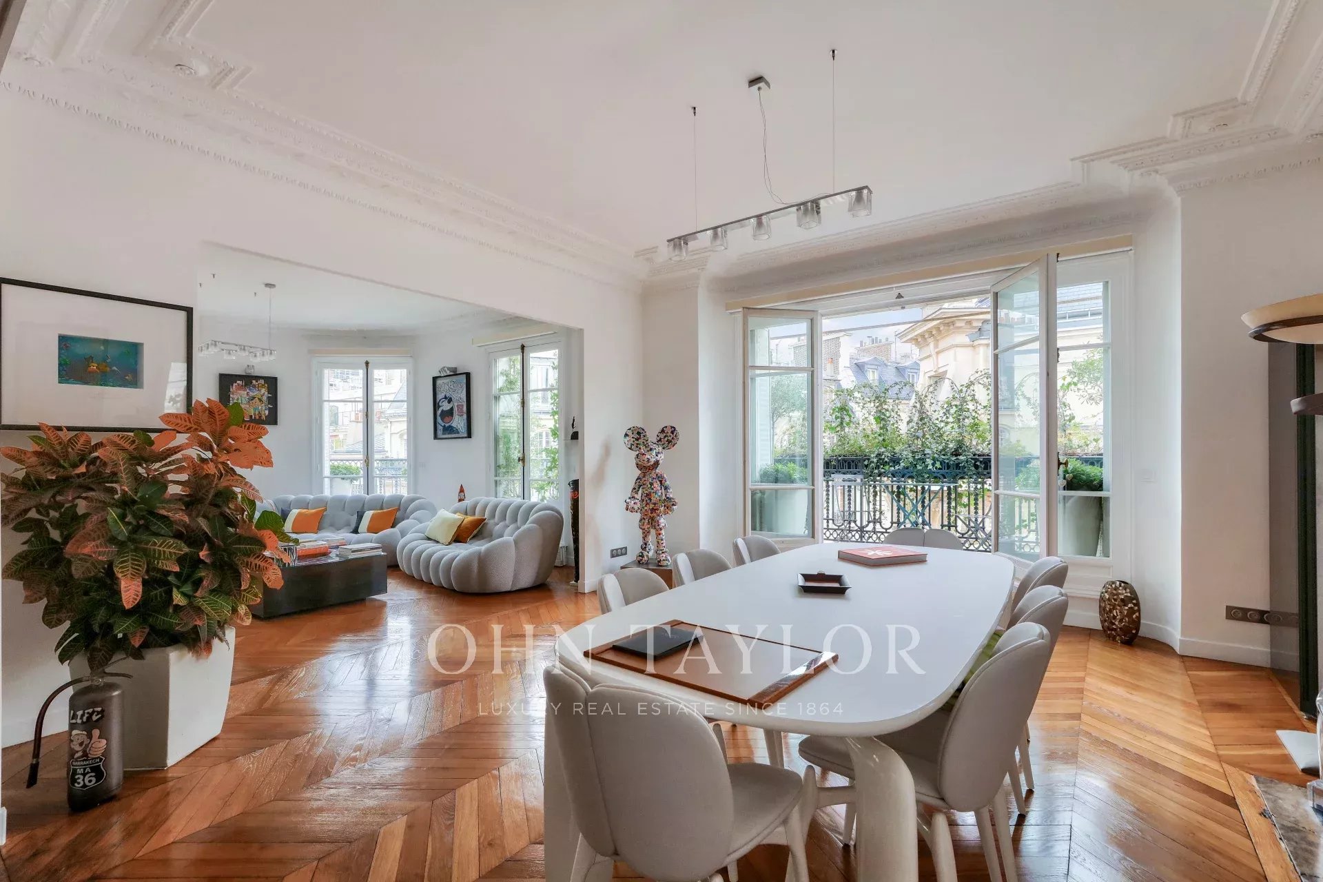 Located on the fifth and top floor of a prestigious period building with renovated common areas, elevator, and caretaker, we offer this beautiful 140 m² (Carrez law) apartment, fully renovated, featuring a stunning 23 m² continuous balcony.