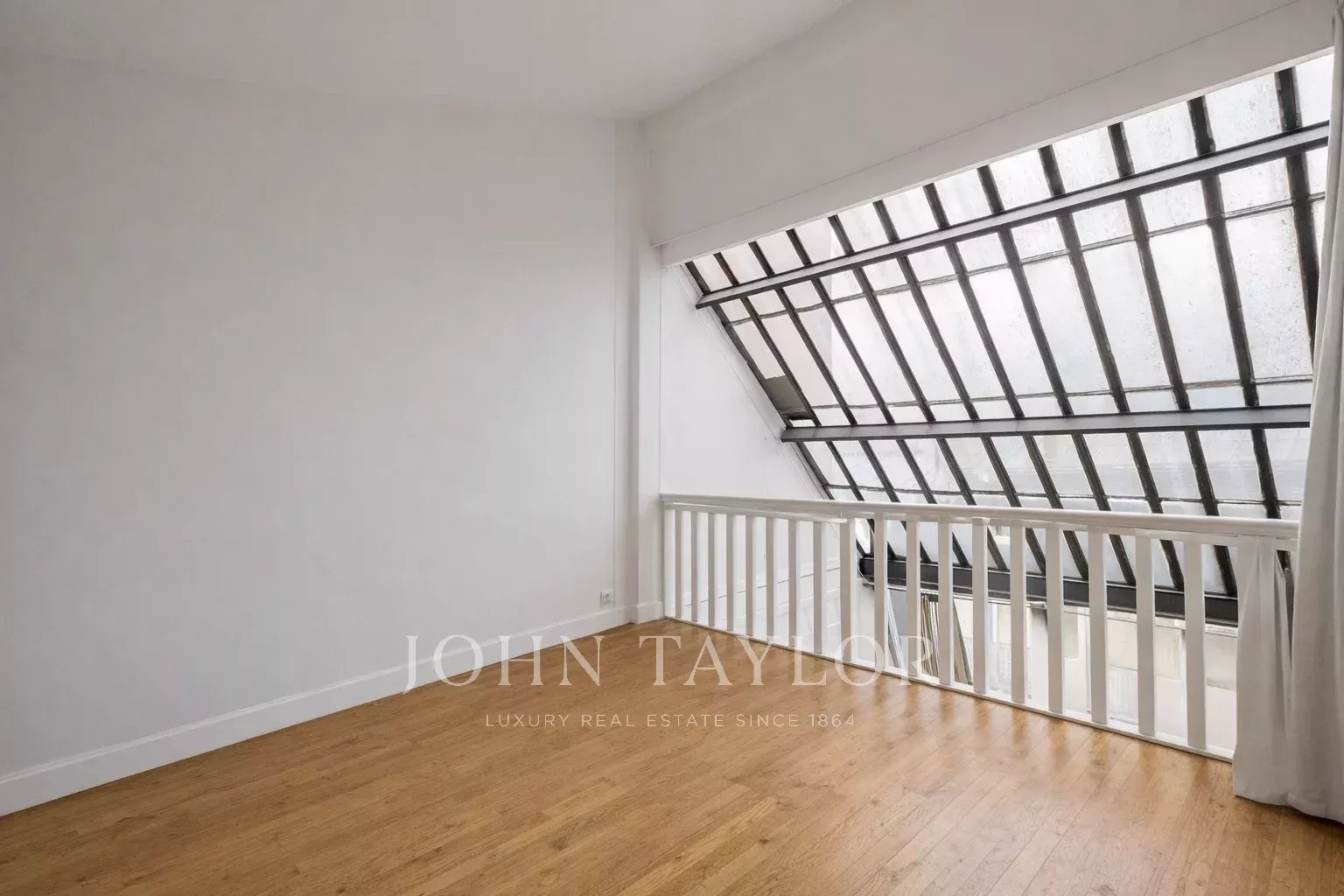 The apartment benefits from a through floor plan and remarkable ceiling height, bringing volume and brightness.