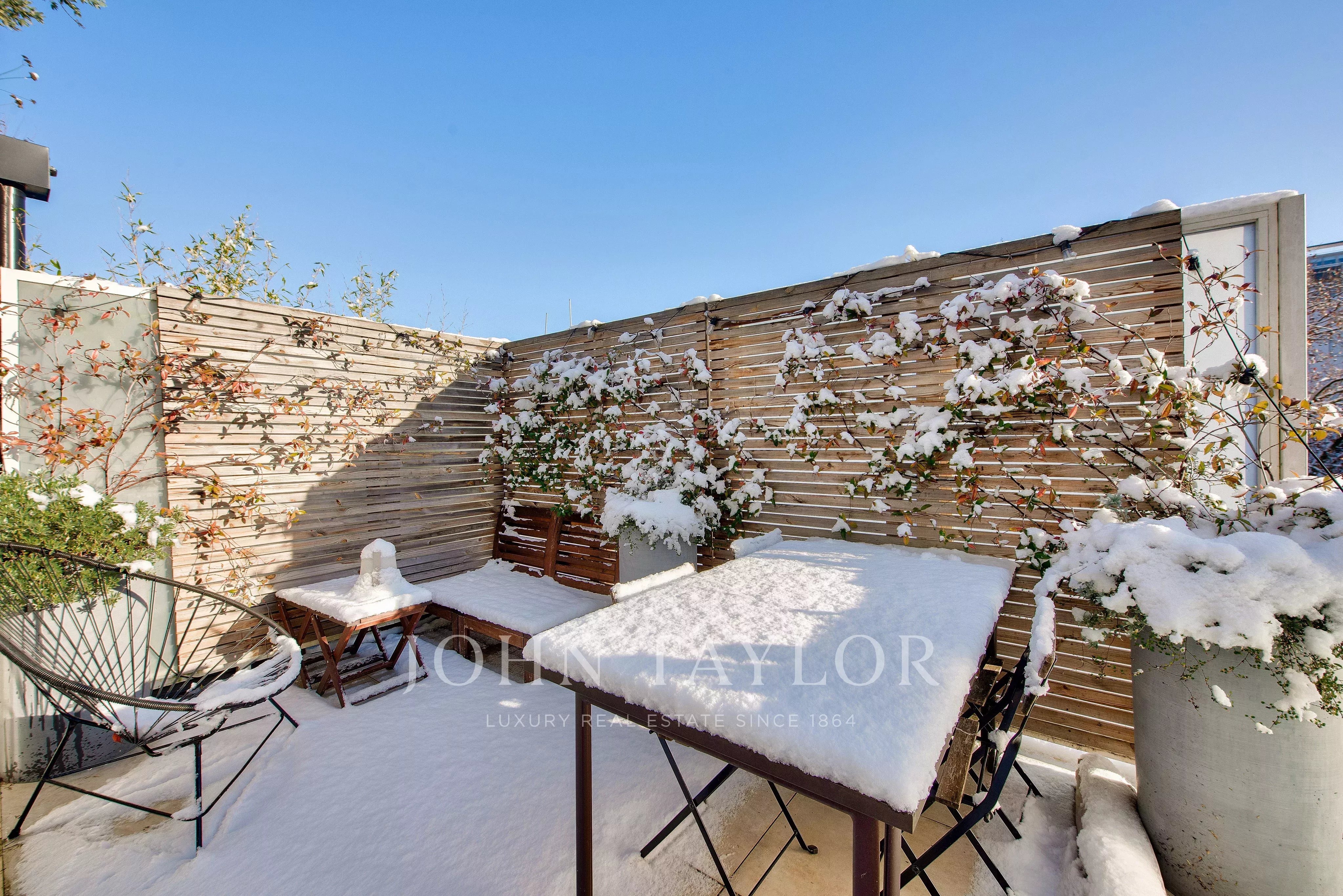 Just a few steps from the 18th arrondissement Town Hall and close to shops, on the 3rd floor with elevator of a modern building completed in 2020, we offer a 73.82 sqm (Carrez law) apartment with a terrace of over 16 sqm.