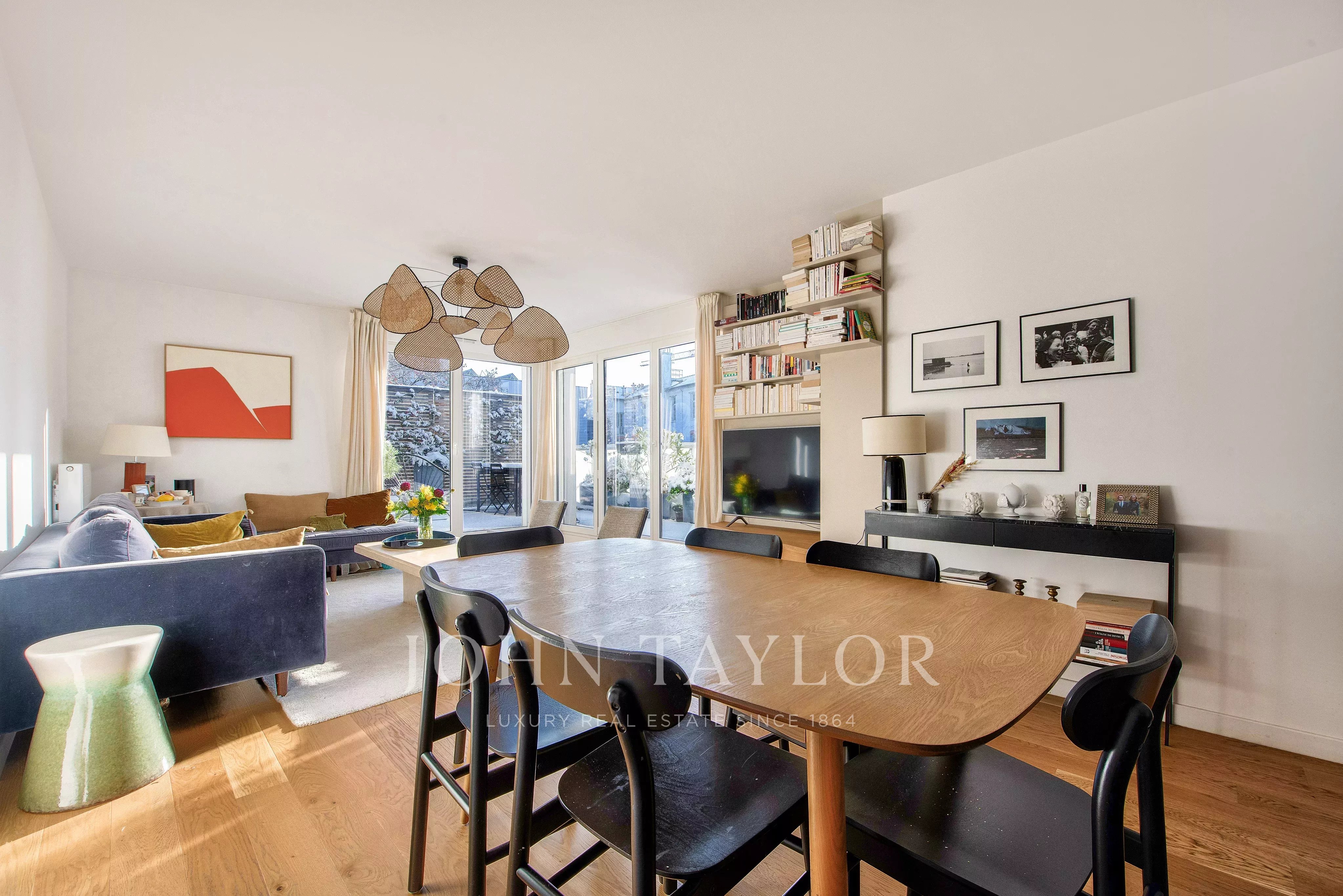 - Living room with open-plan kitchen opening onto a large, landscaped 15 sqm terrace