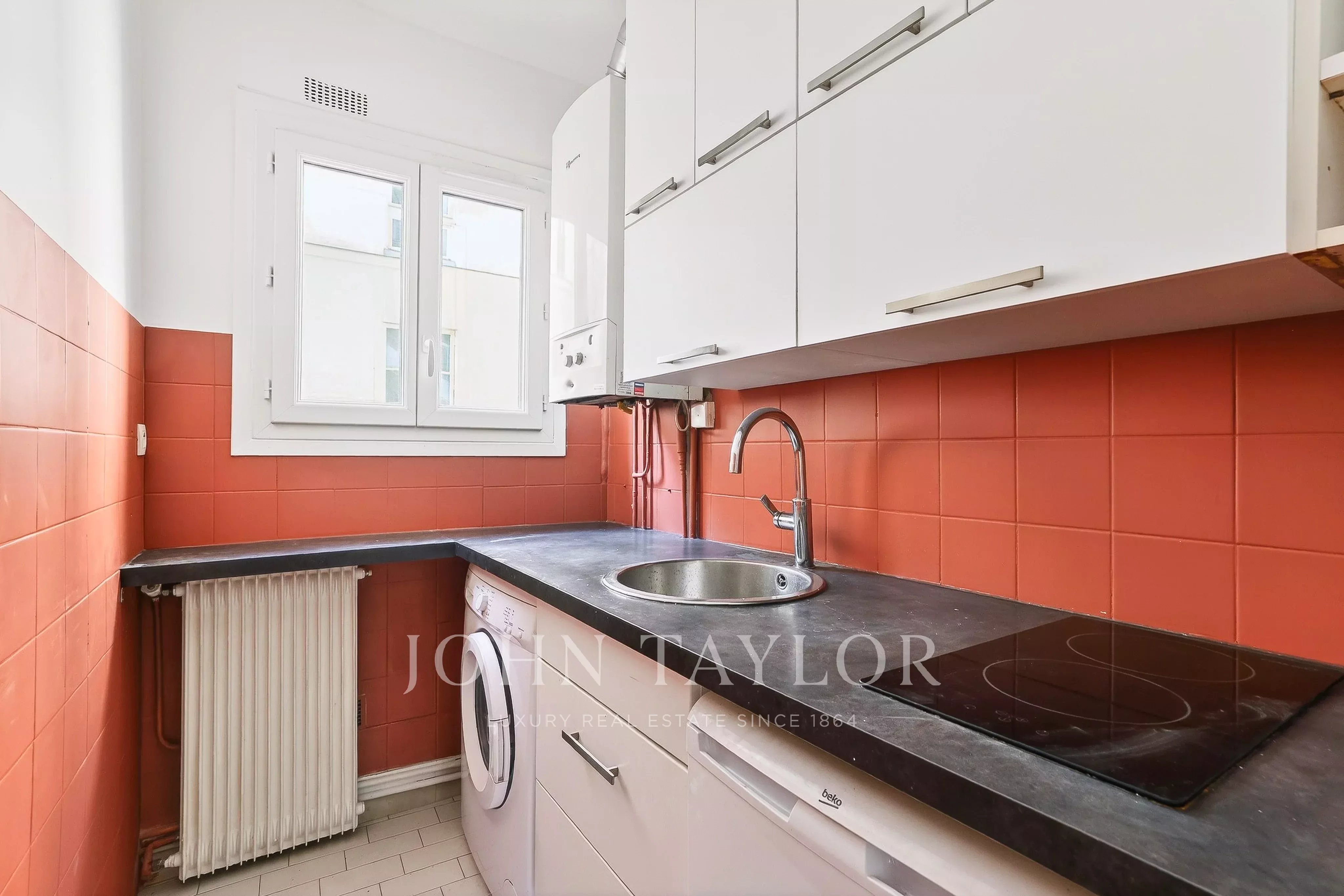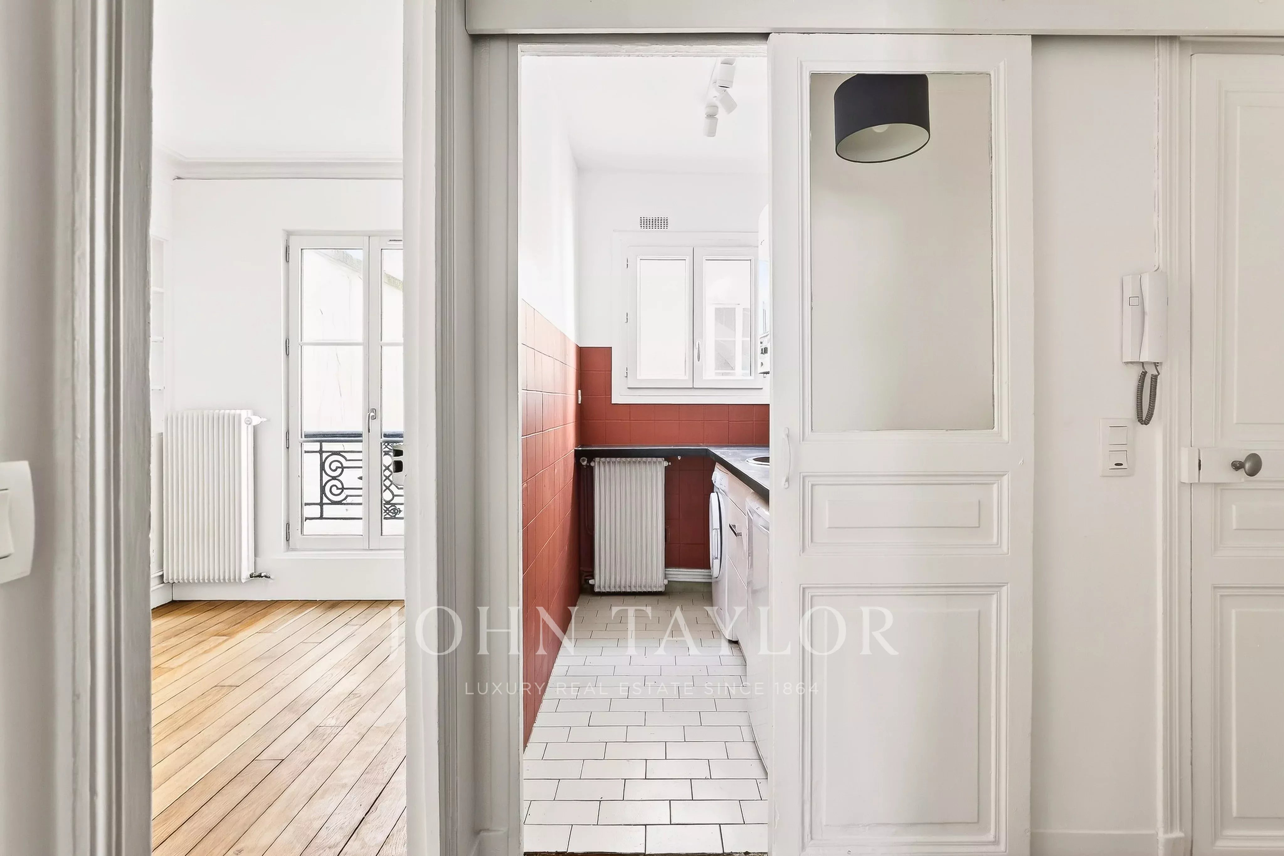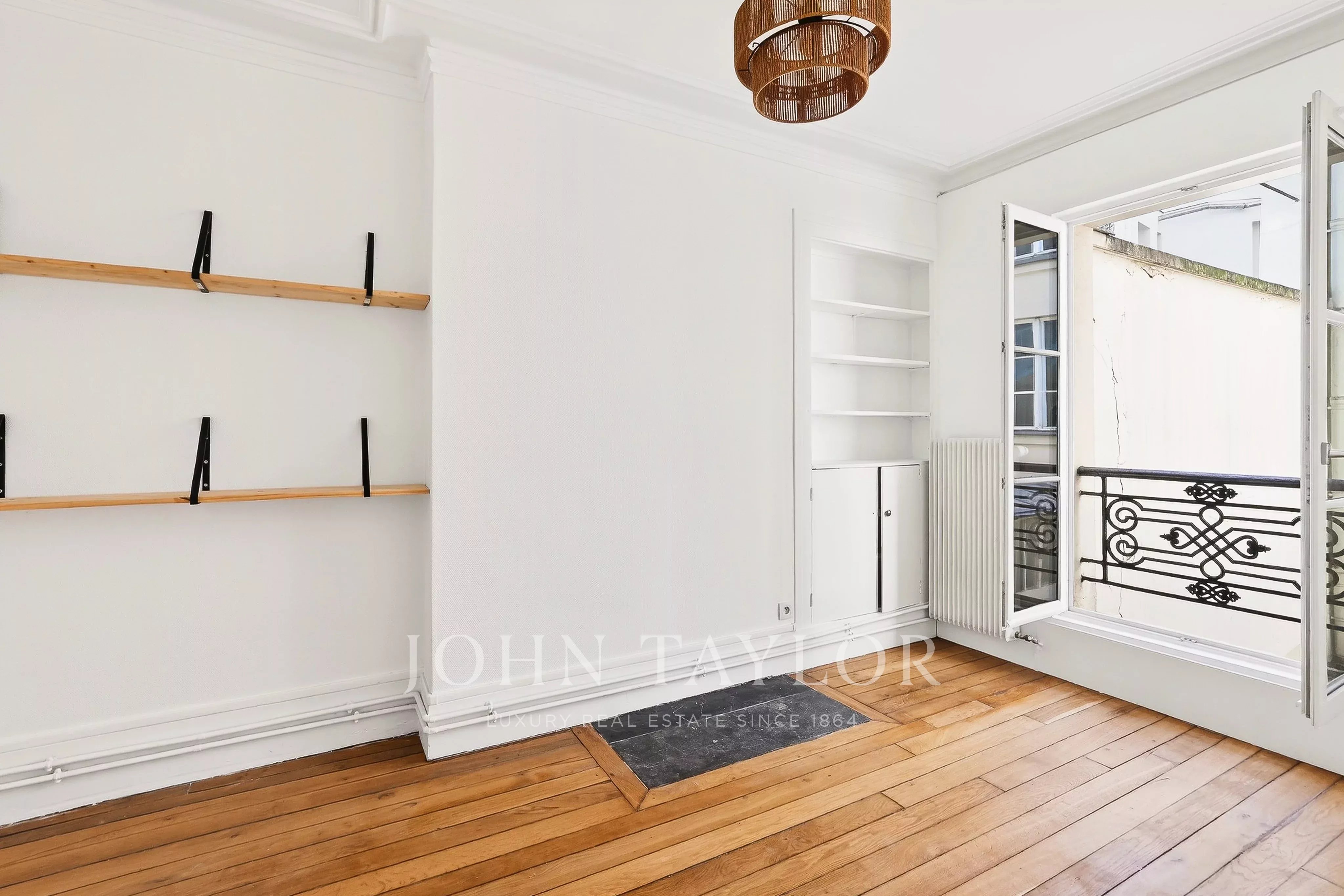 This 33.72 m² (Loi Carrez) one-bedroom apartment is in excellent condition throughout. A dual-aspect home ("traversant") filled with authentic character, it features original hardwood floors and classic moldings.