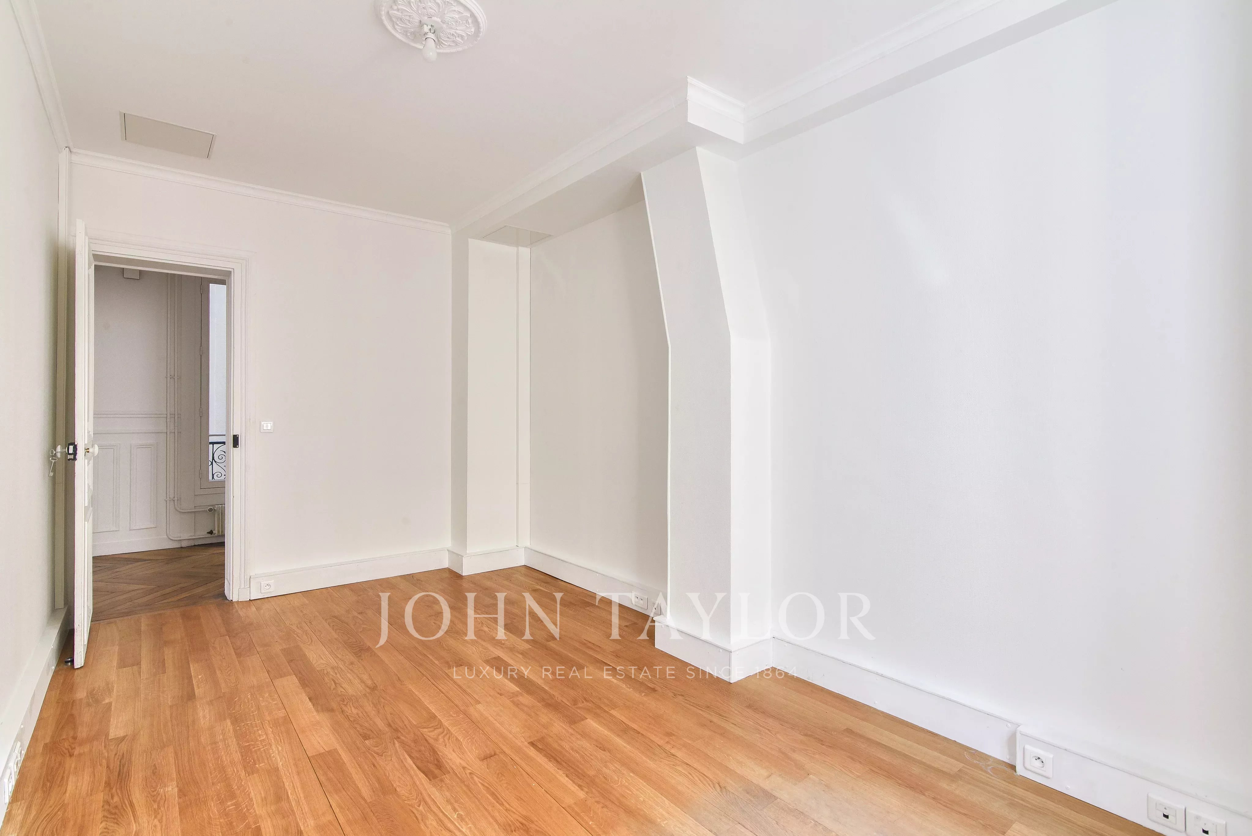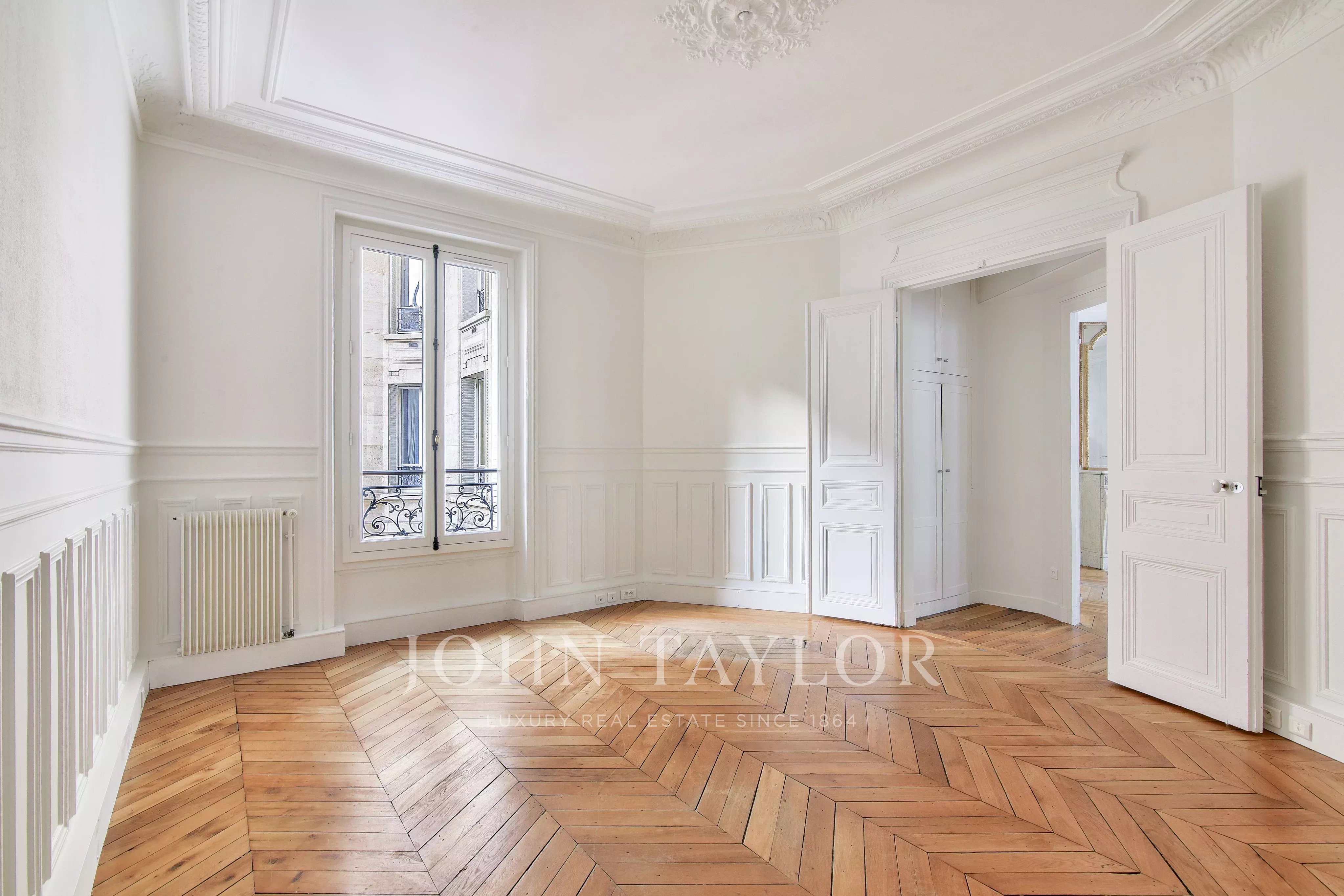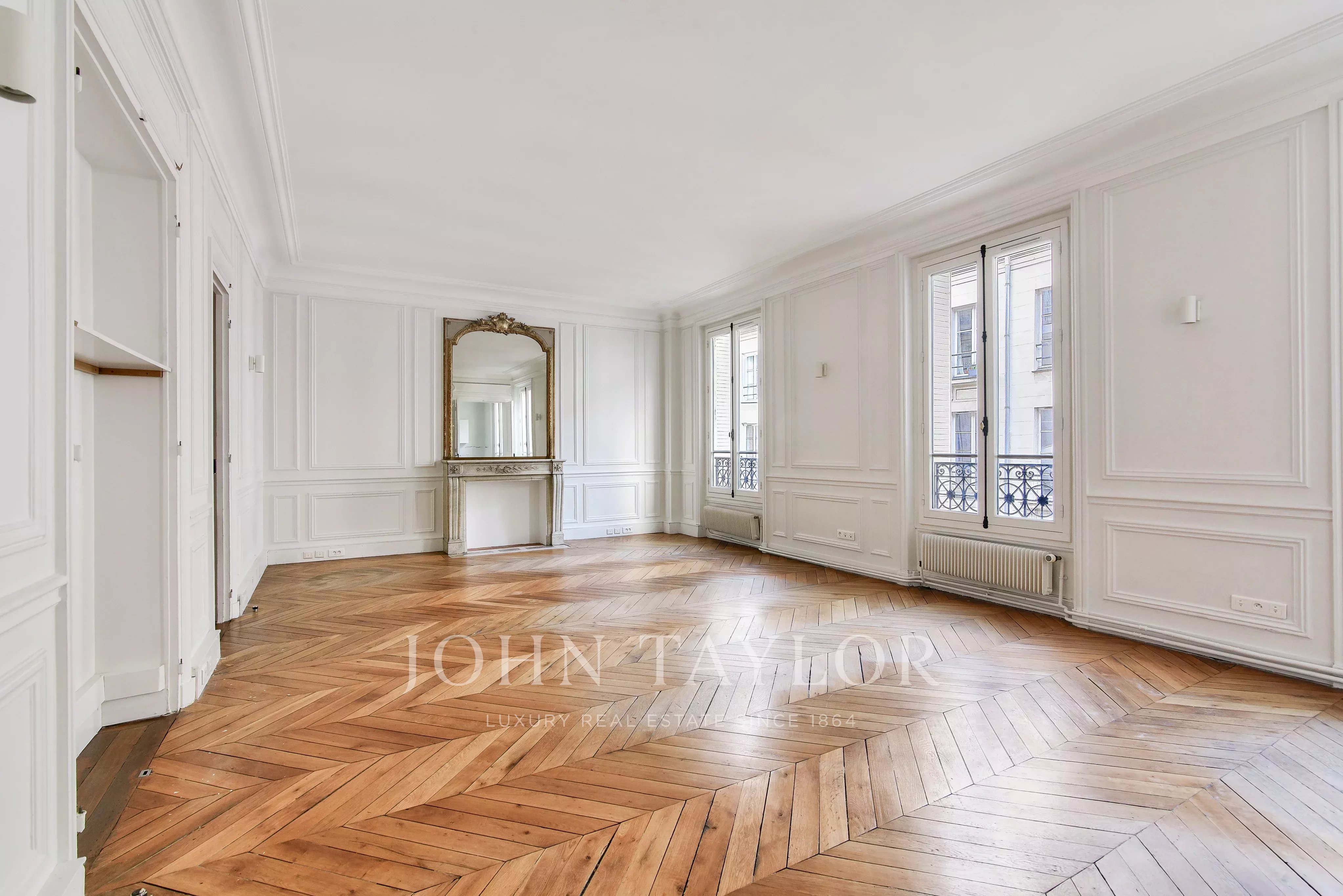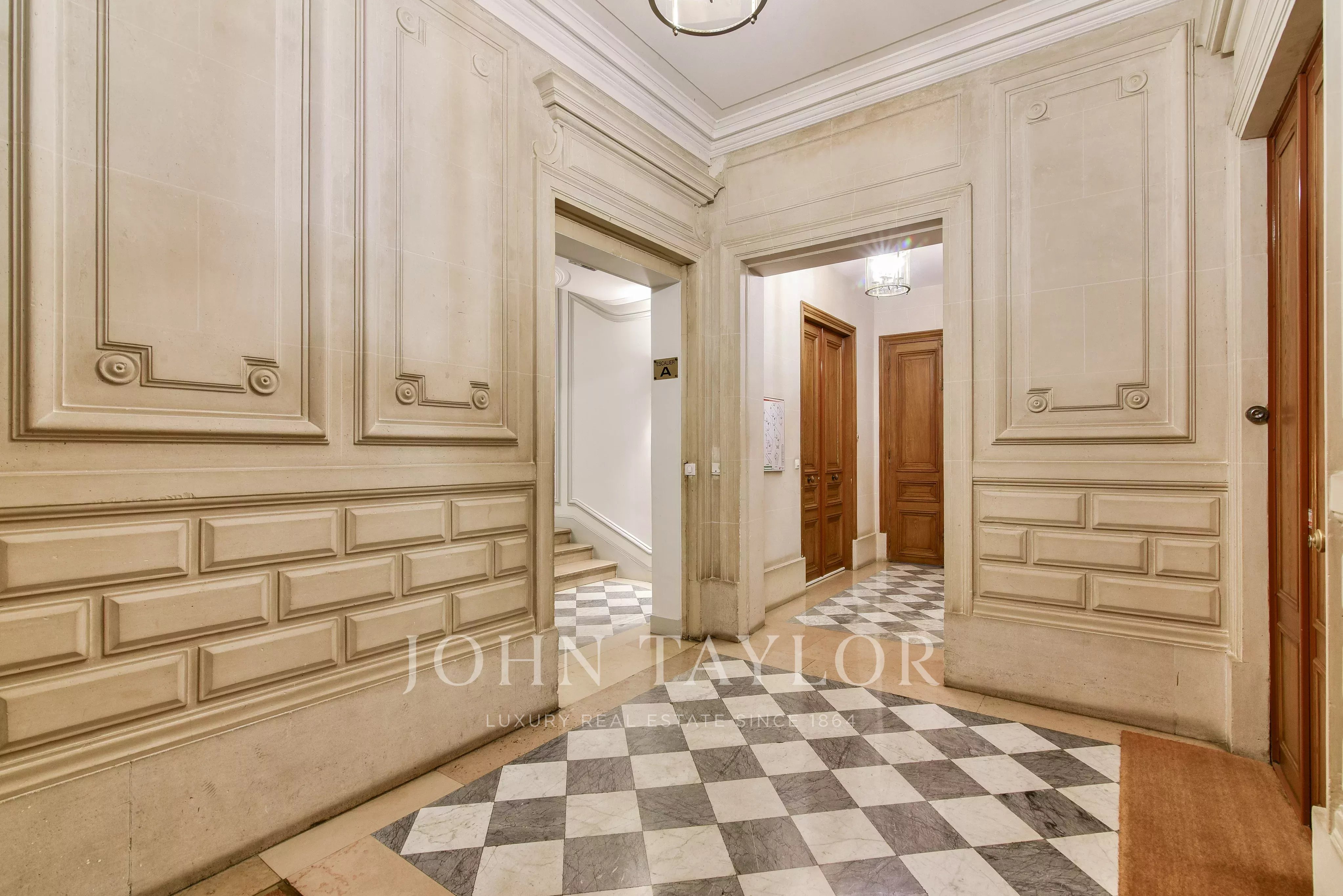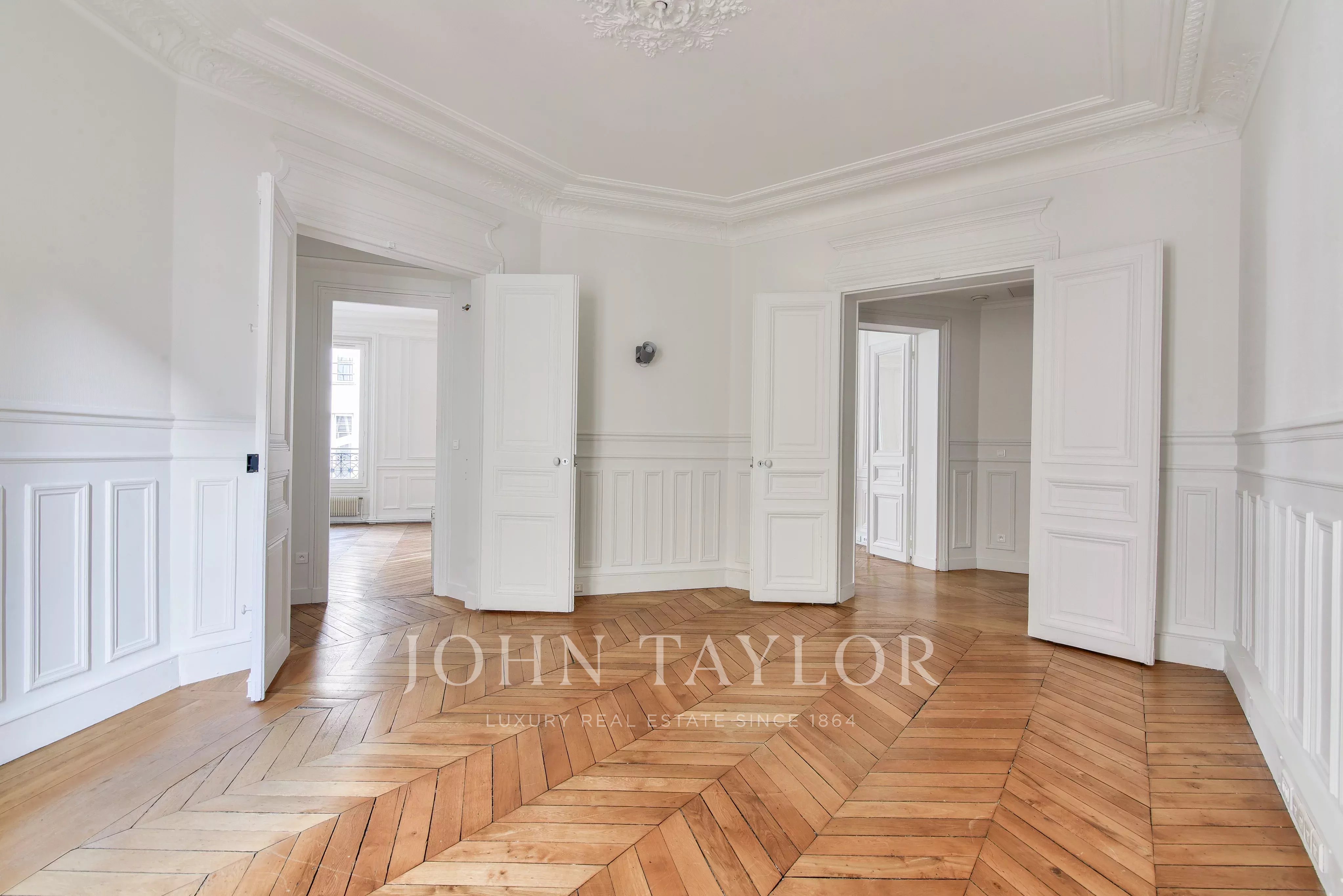Compact layout, preserved old-world charm (oak parquet flooring, moldings, marble fireplaces, trumeaux) and very spacious rooms with 3.16-meter-high ceilings.