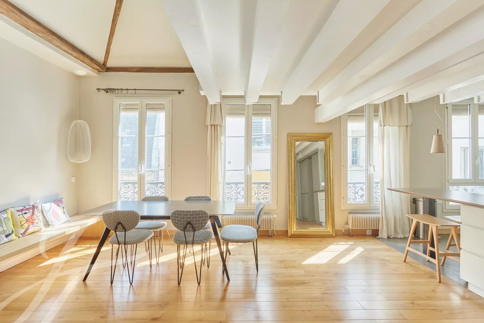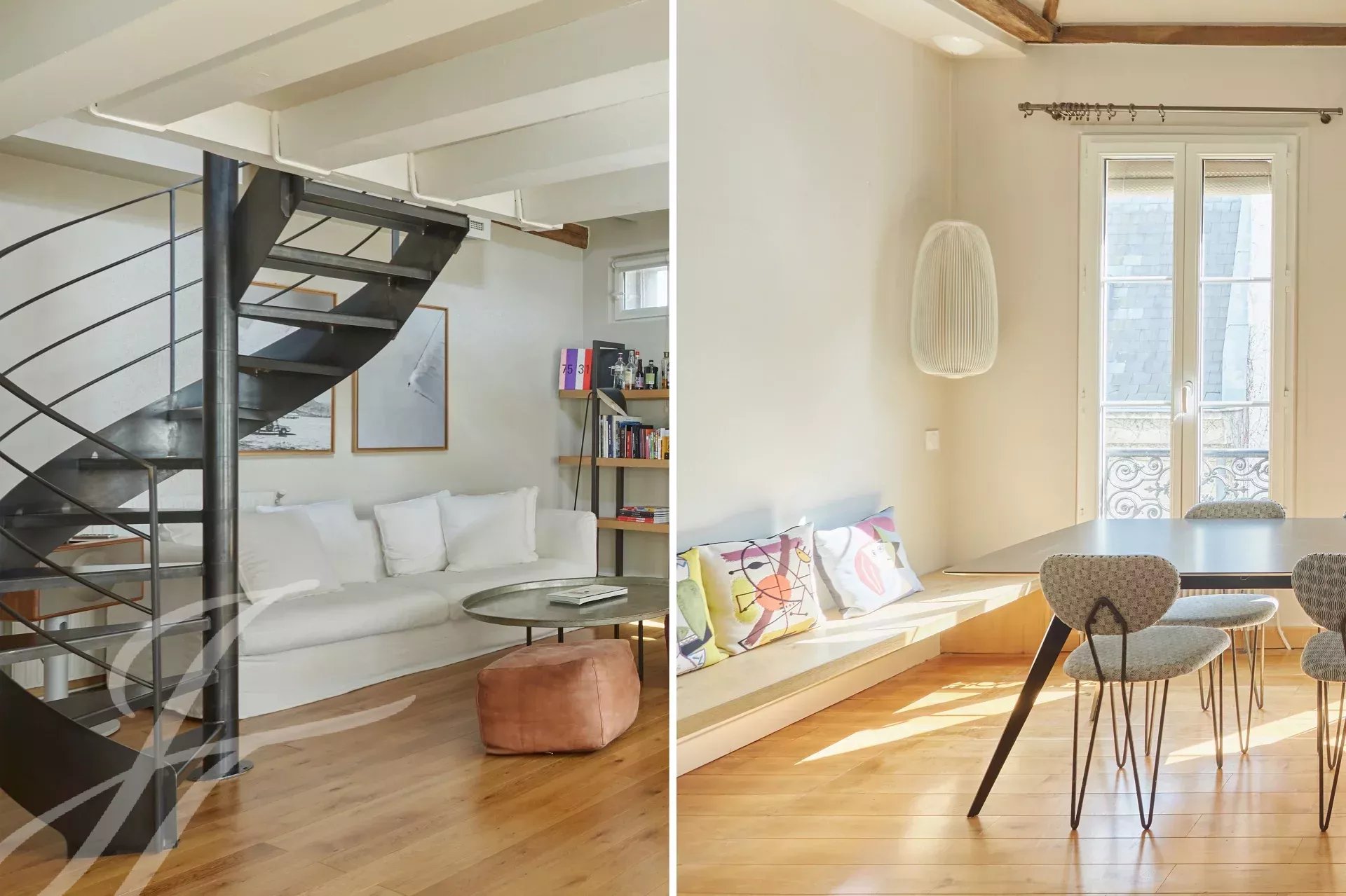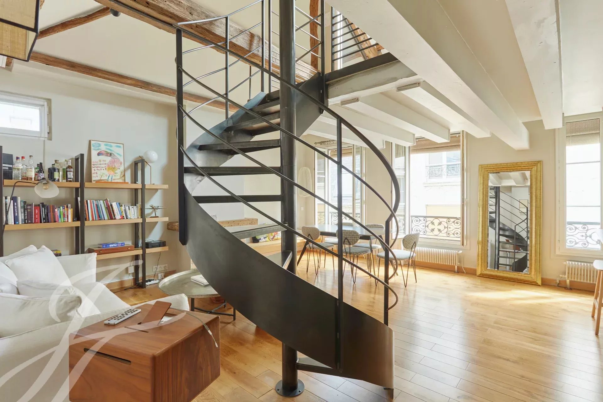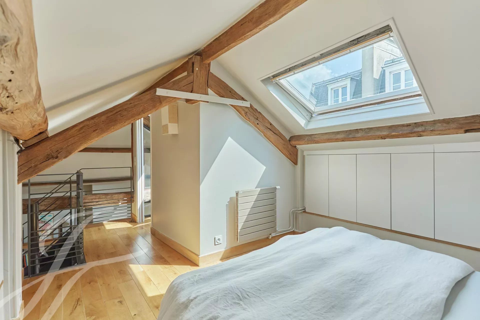 Just a stone's throw from the Musée Carnavalet and Place des Vosges, on the 4th and top floor, beautiful character apartment of 60.15 m² (49.32 m² carrez) arranged as a duplex.
