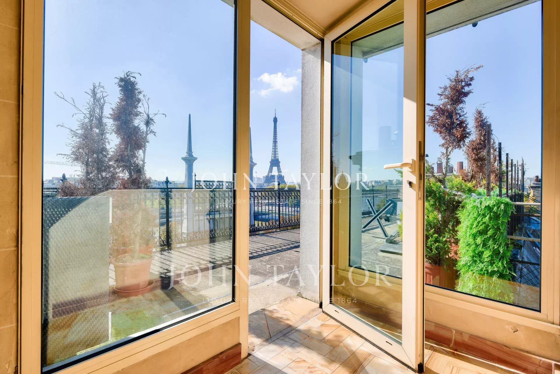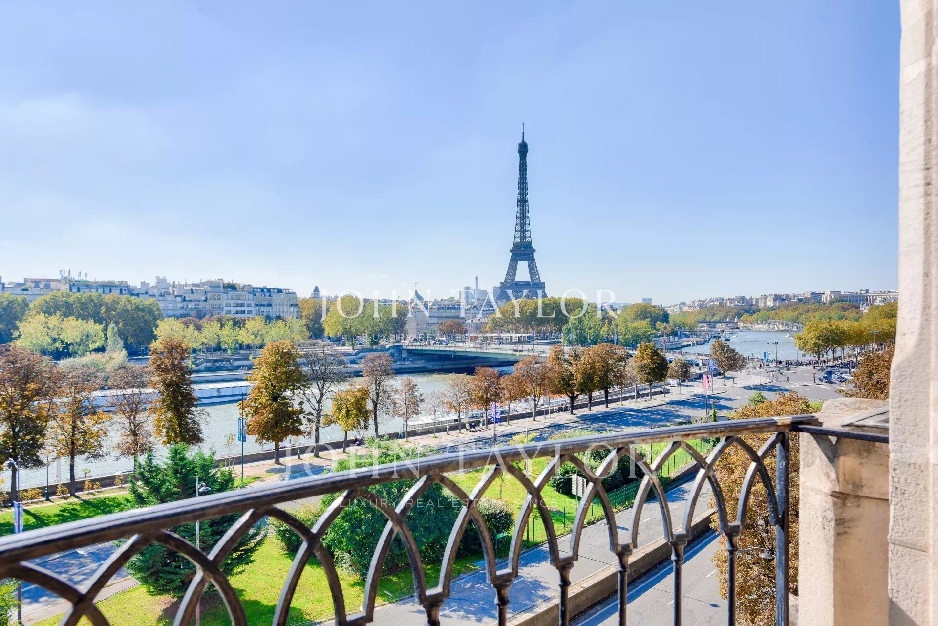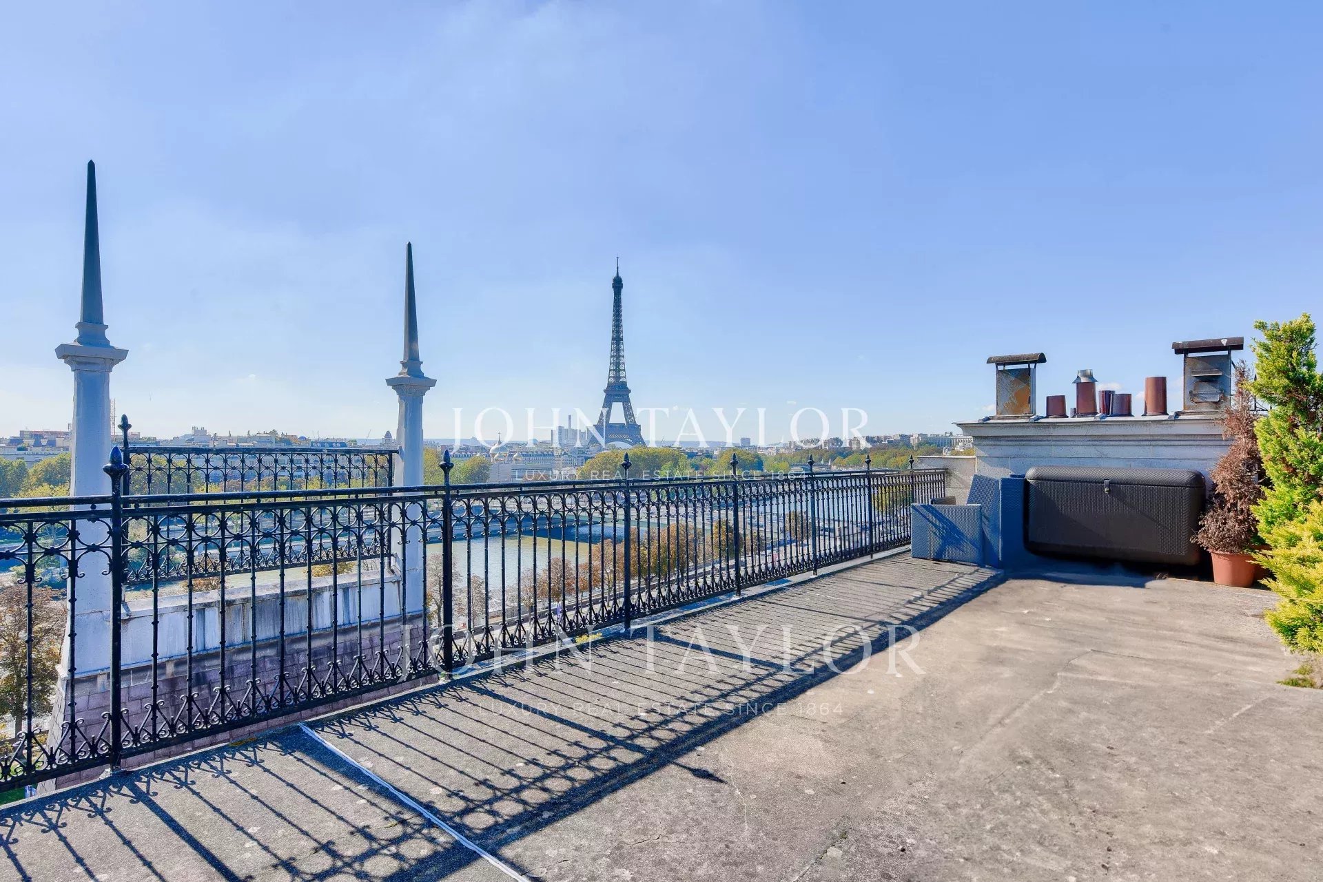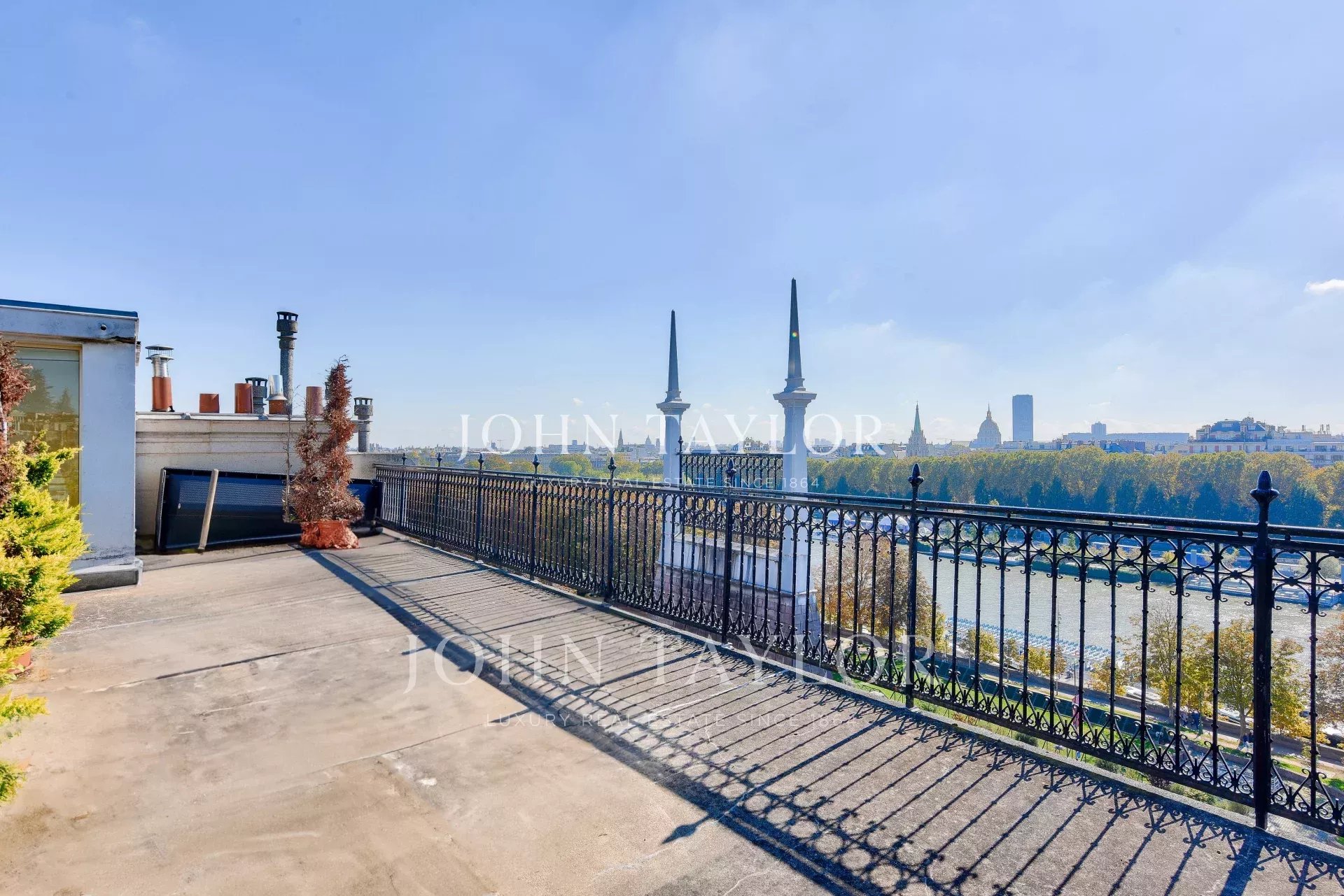 Amazing 189 m2 apartment (175 m2 loi Carrez) located on the top floors of an exceptional building and benefiting from a 60 m2 terrace offering fantastic views over the Seine and the Eiffel Tower with no overlooking.
