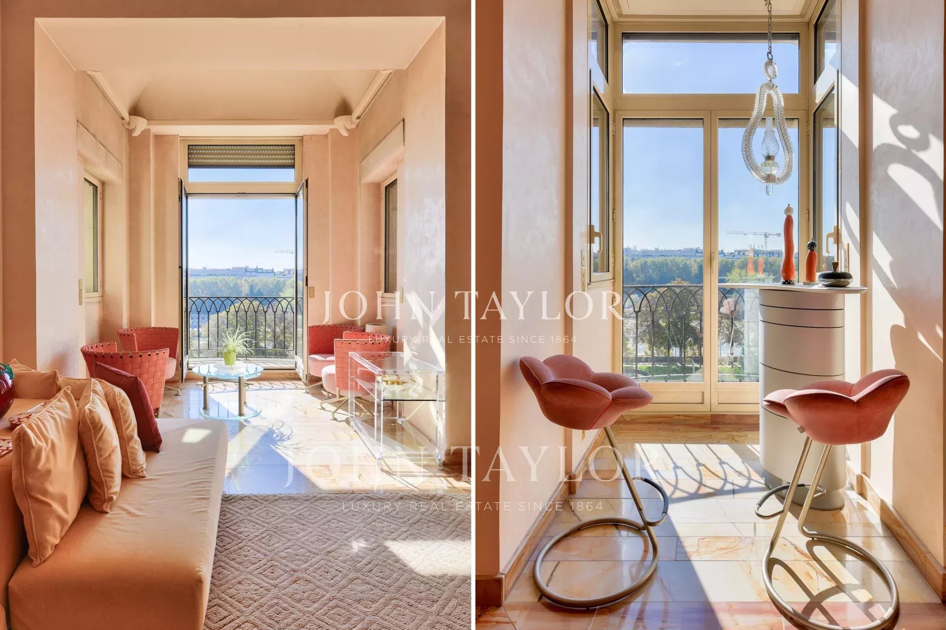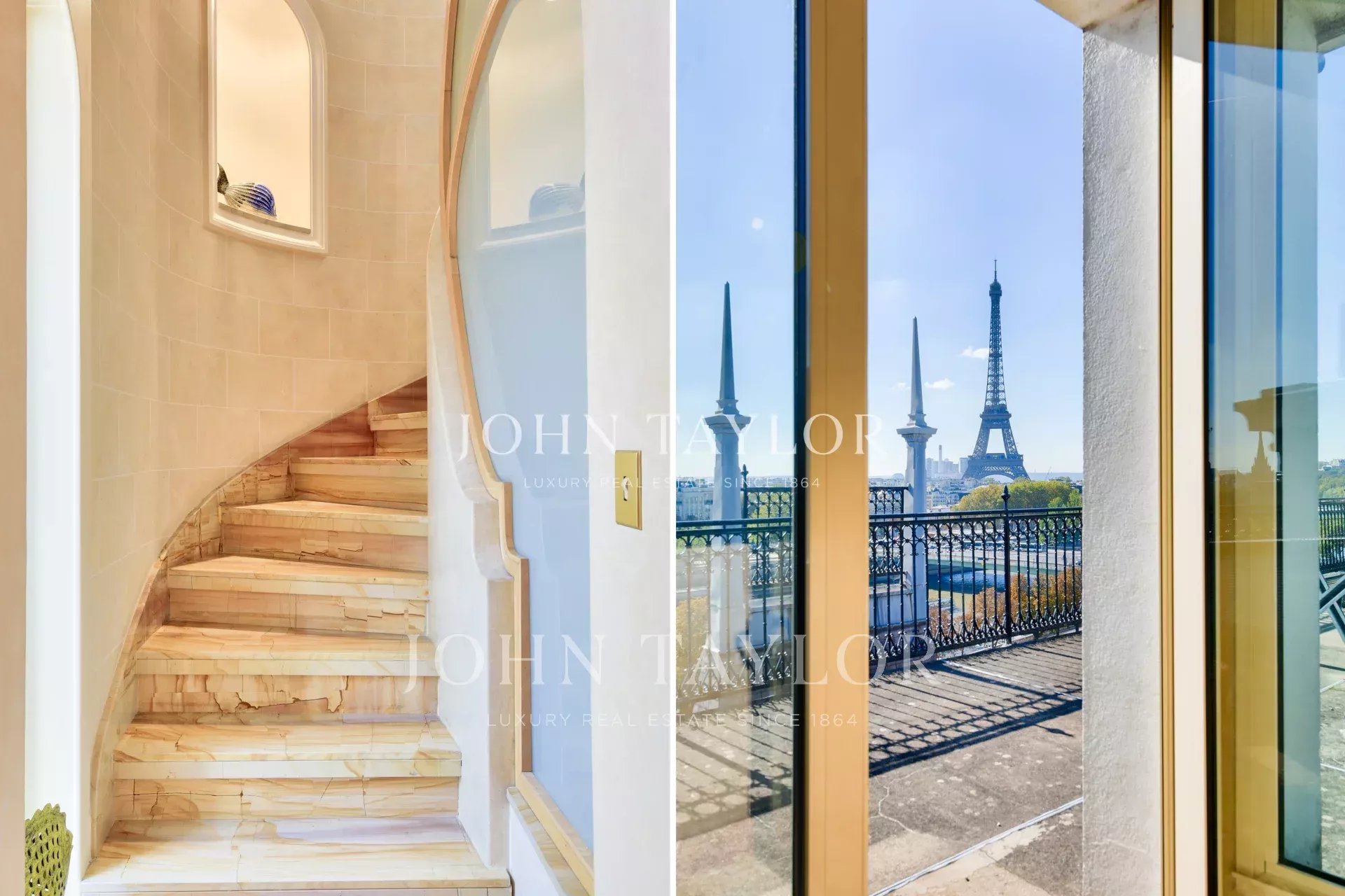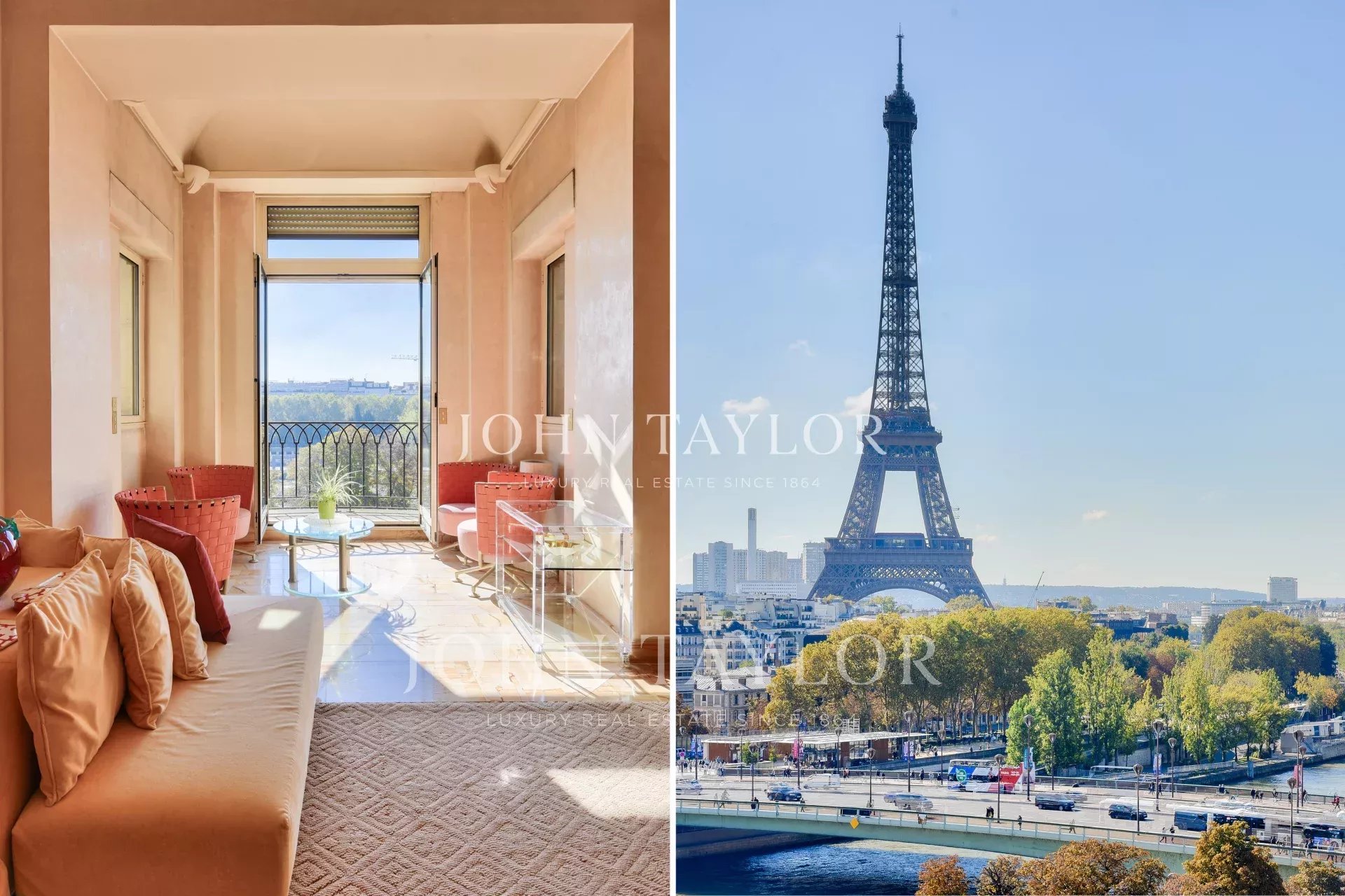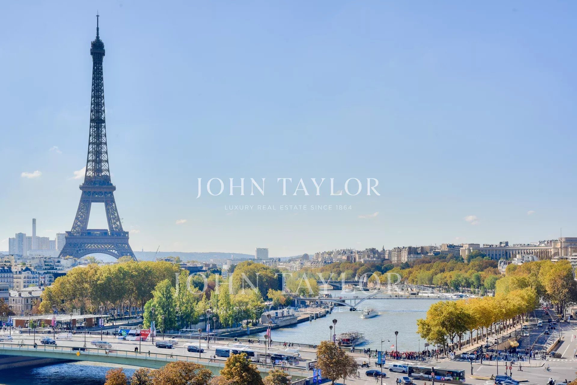 Amazing 189 m2 apartment (175 m2 loi Carrez) located on the top floors of an exceptional building and benefiting from a 60 m2 terrace offering fantastic views over the Seine and the Eiffel Tower with no overlooking.