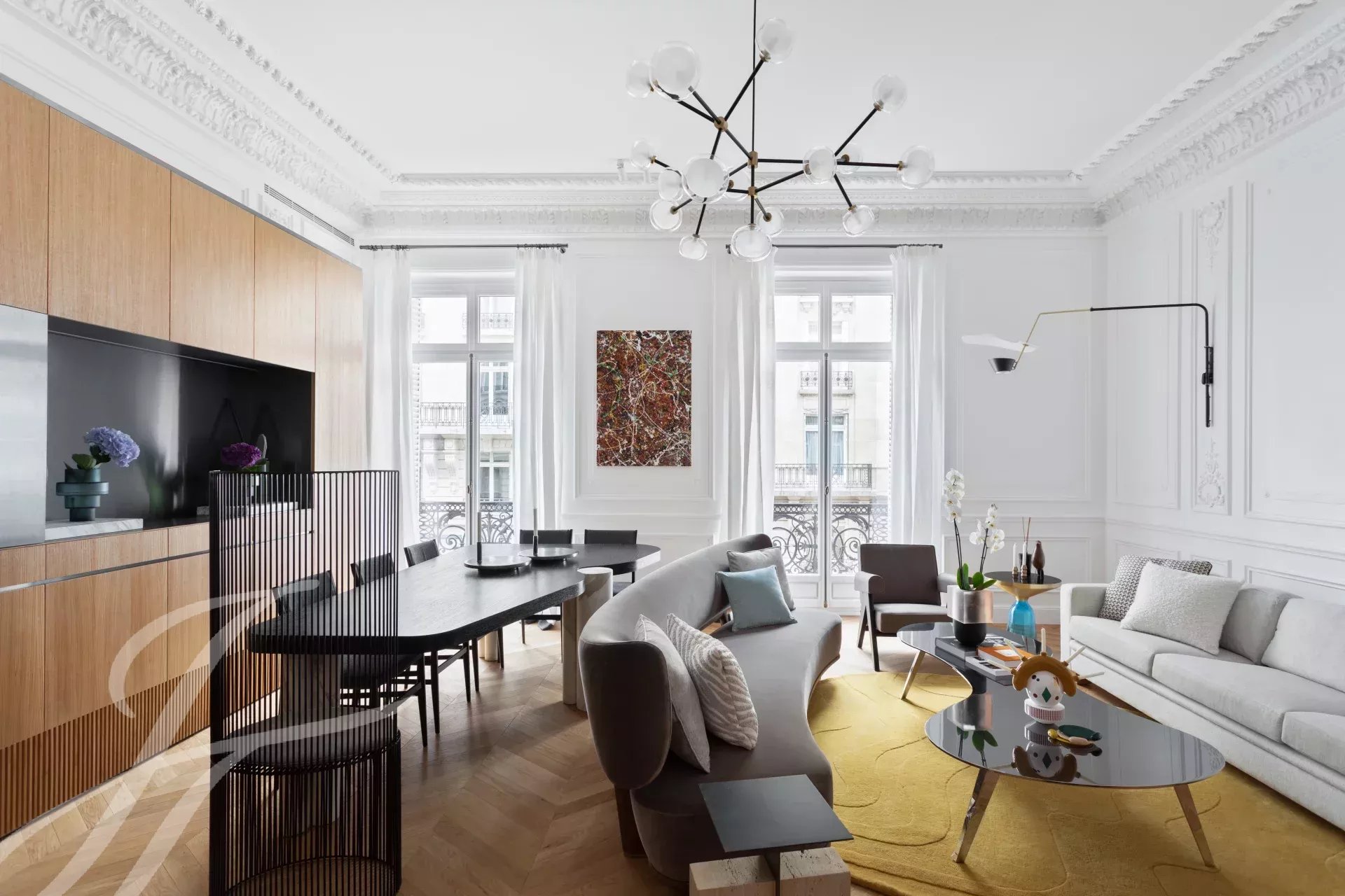 Sold fully furnished and decorated, it comprises: