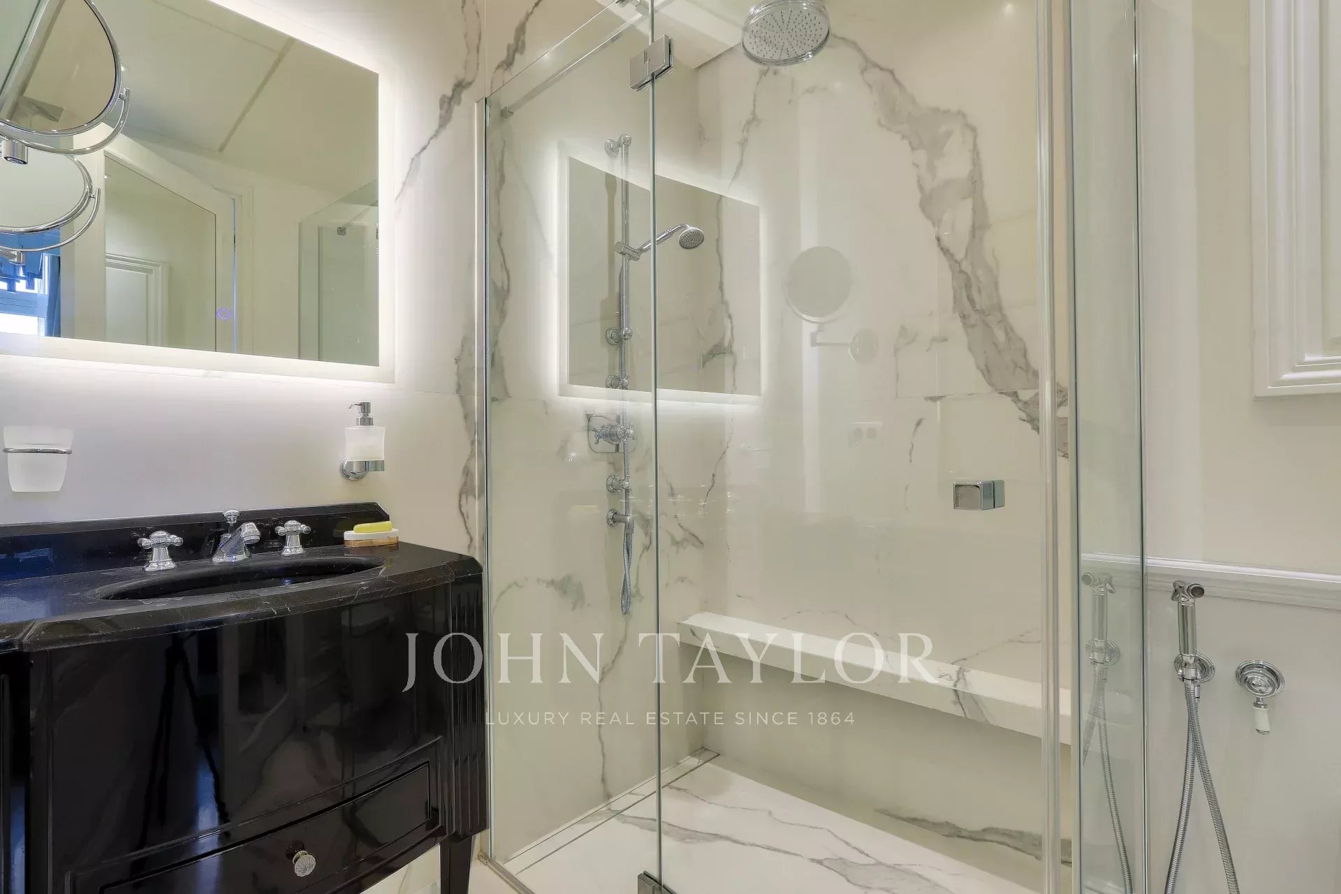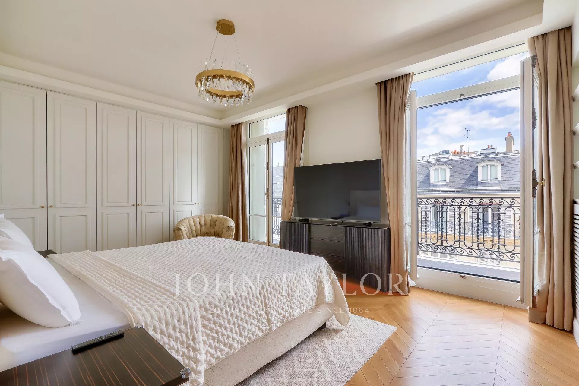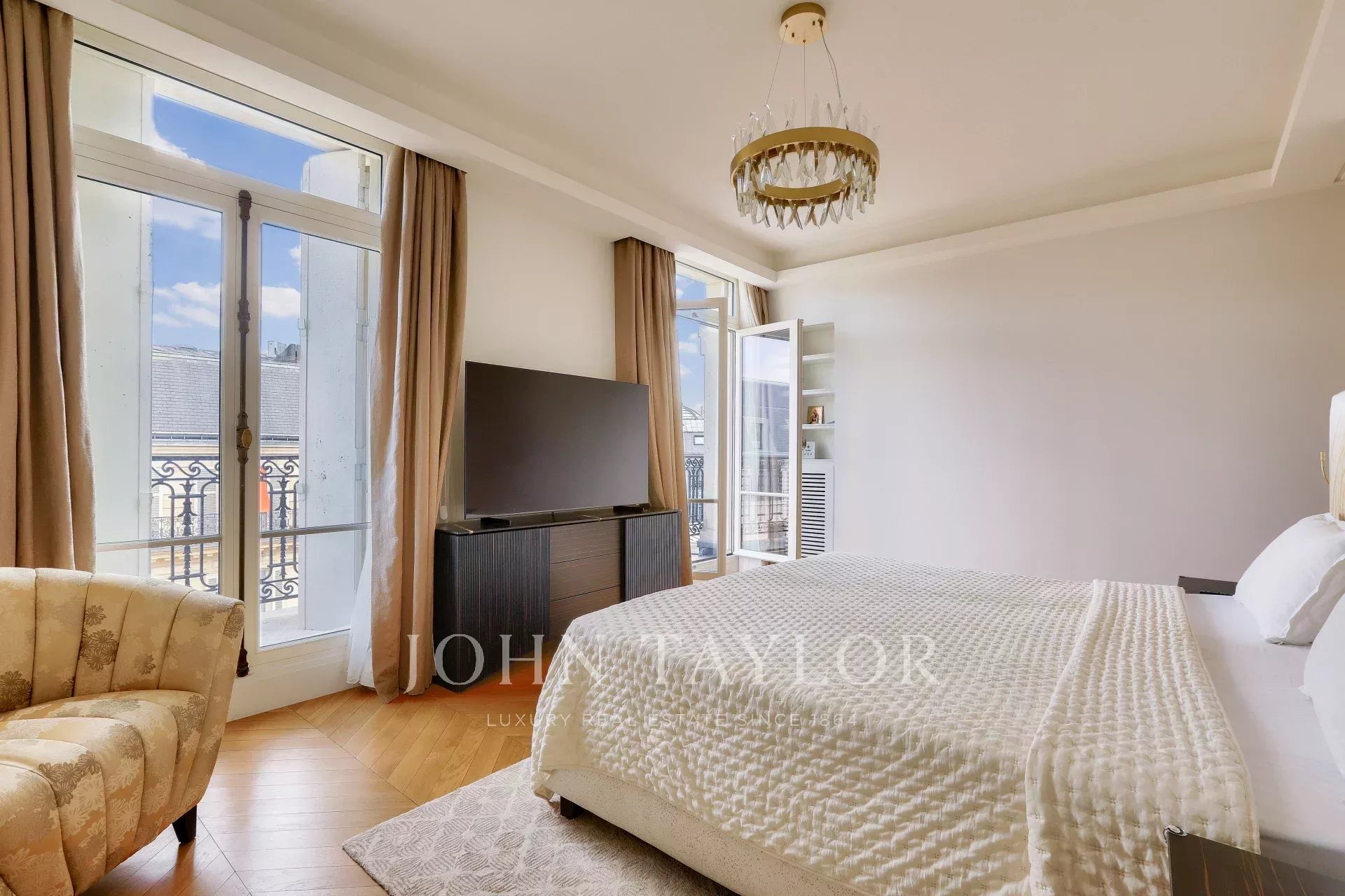 - facing rue François 1er, a beautiful master suite with large bathroom and spacious dressing room