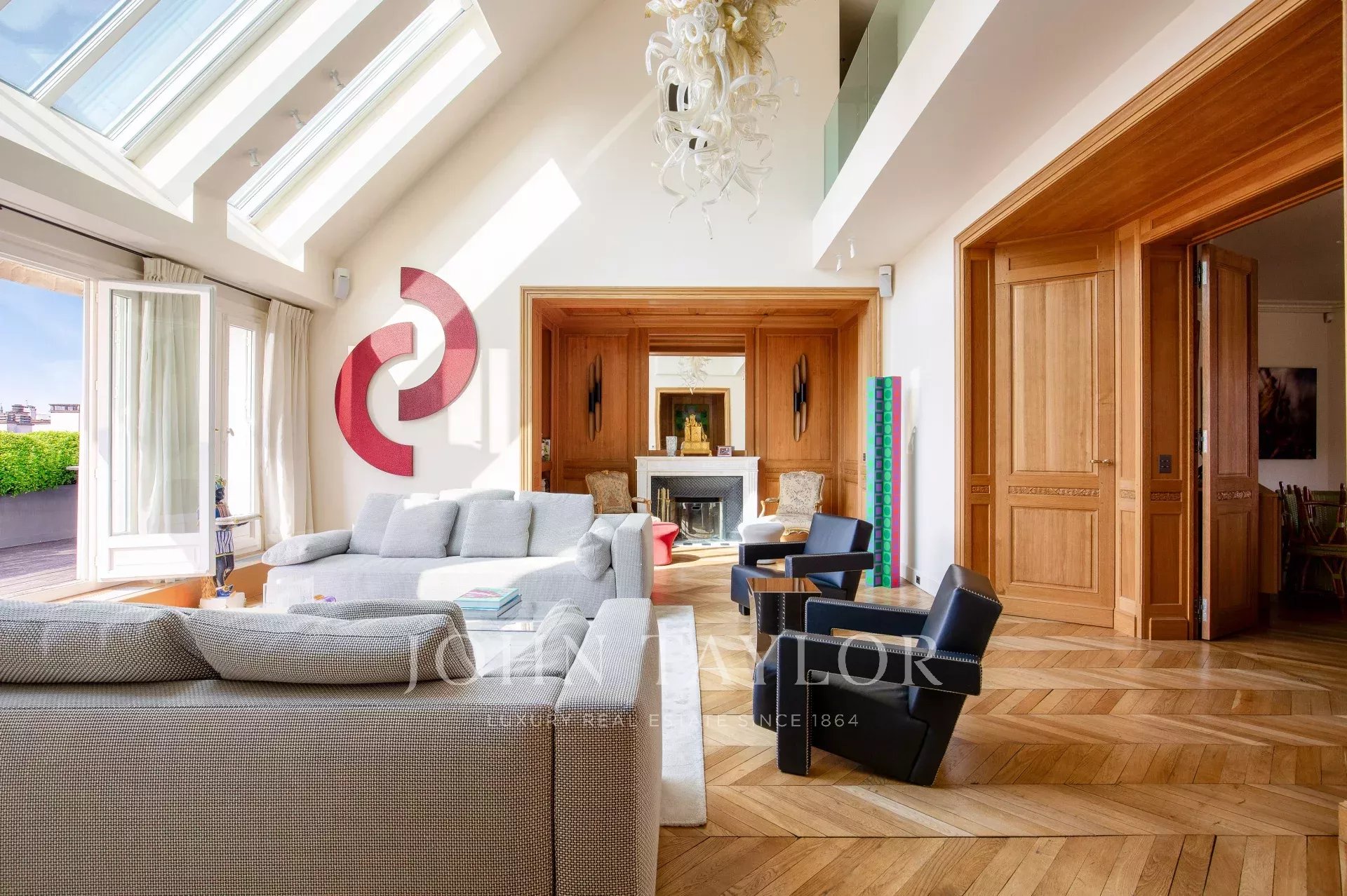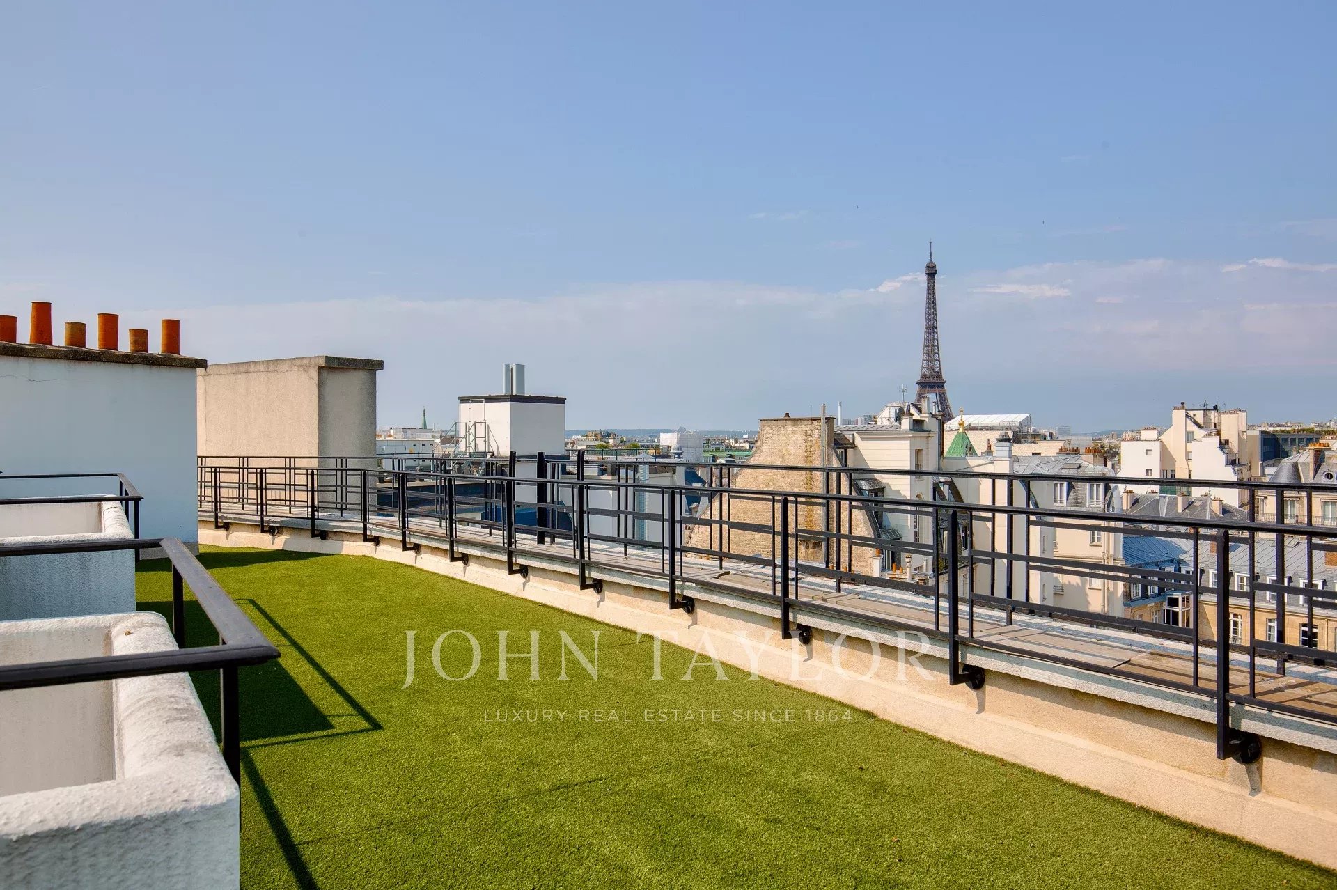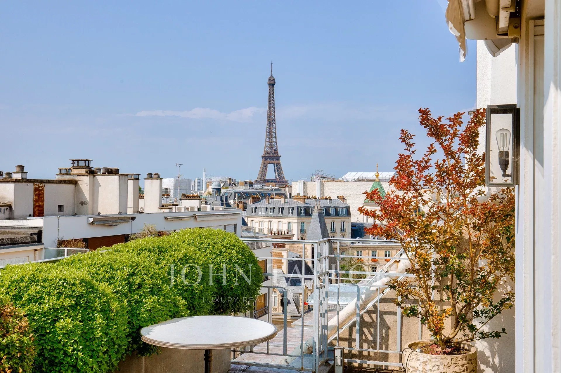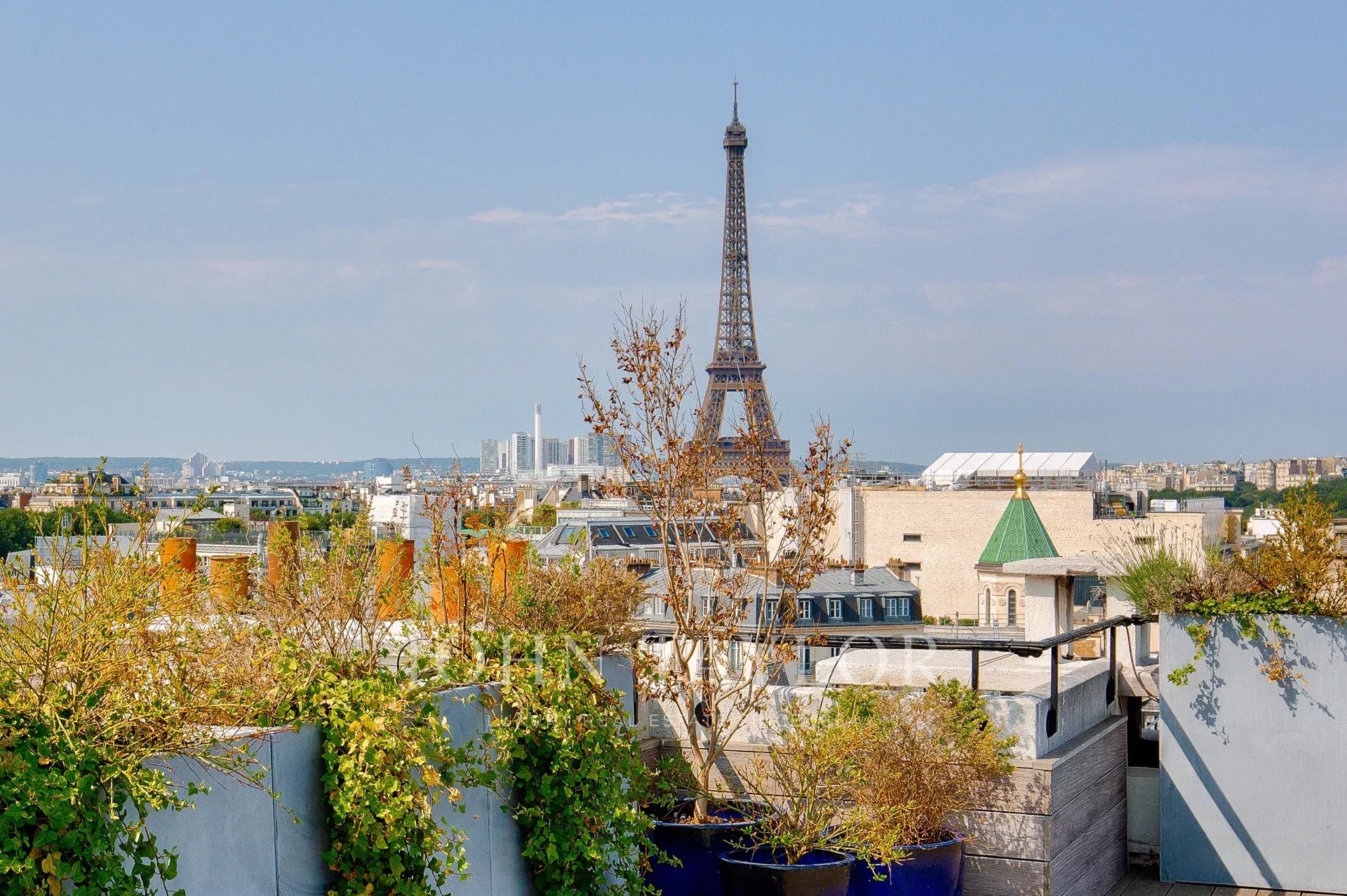 With a surface area of 225 m2, this air-conditioned apartment is in perfect condition and boasts several terraces offering exceptional views of Paris, the Eiffel Tower and the Grand Palais.