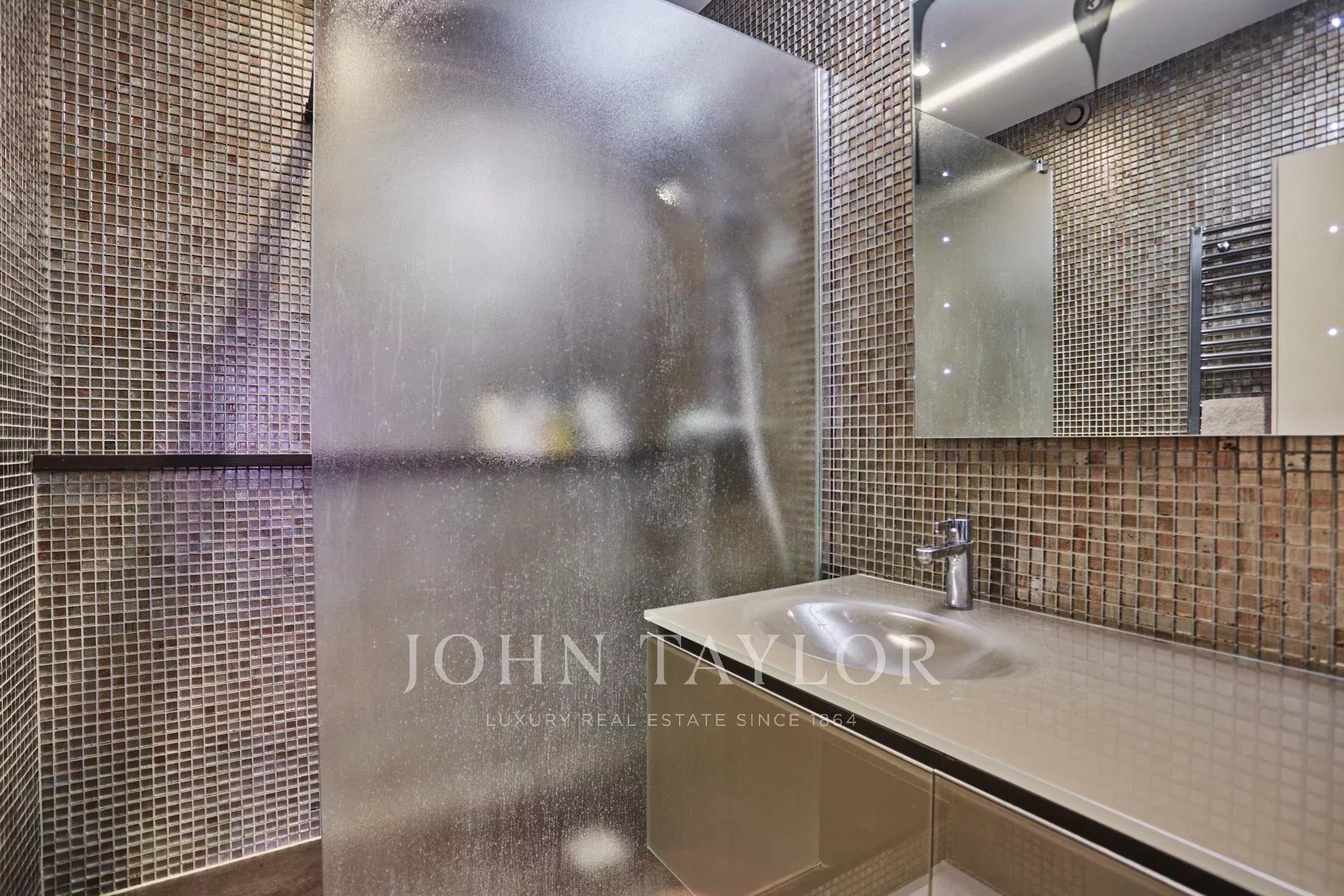 - A sleek shower room.
