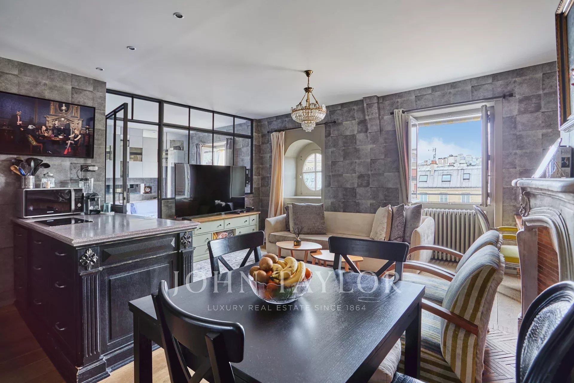 Just steps from the prestigious Golden Triangle, its palaces, and luxurious boutiques, discover this charming, fully renovated pied-à-terre, located on the 6th and top floor with elevator of an elegant post-Haussmannian building.