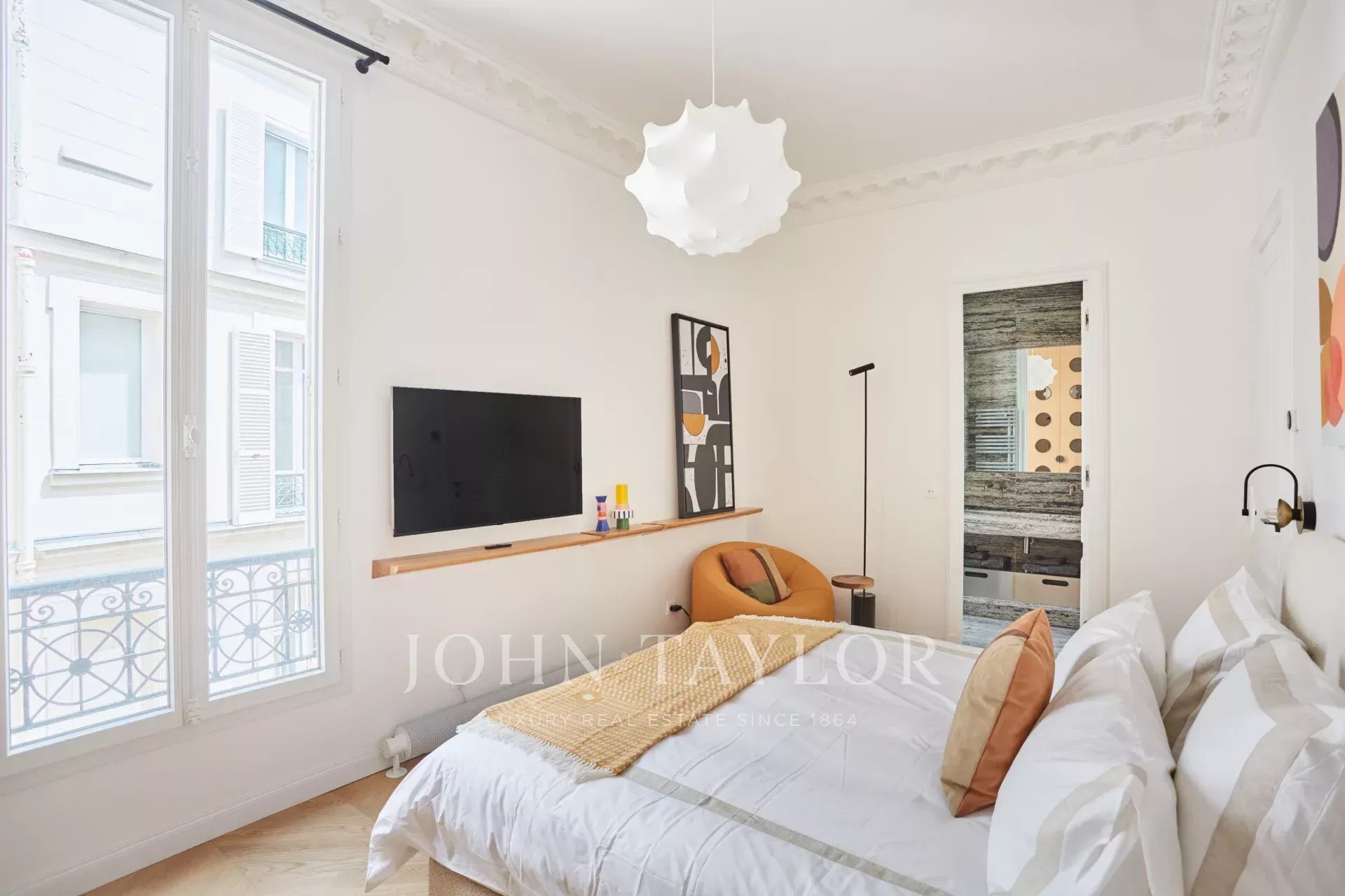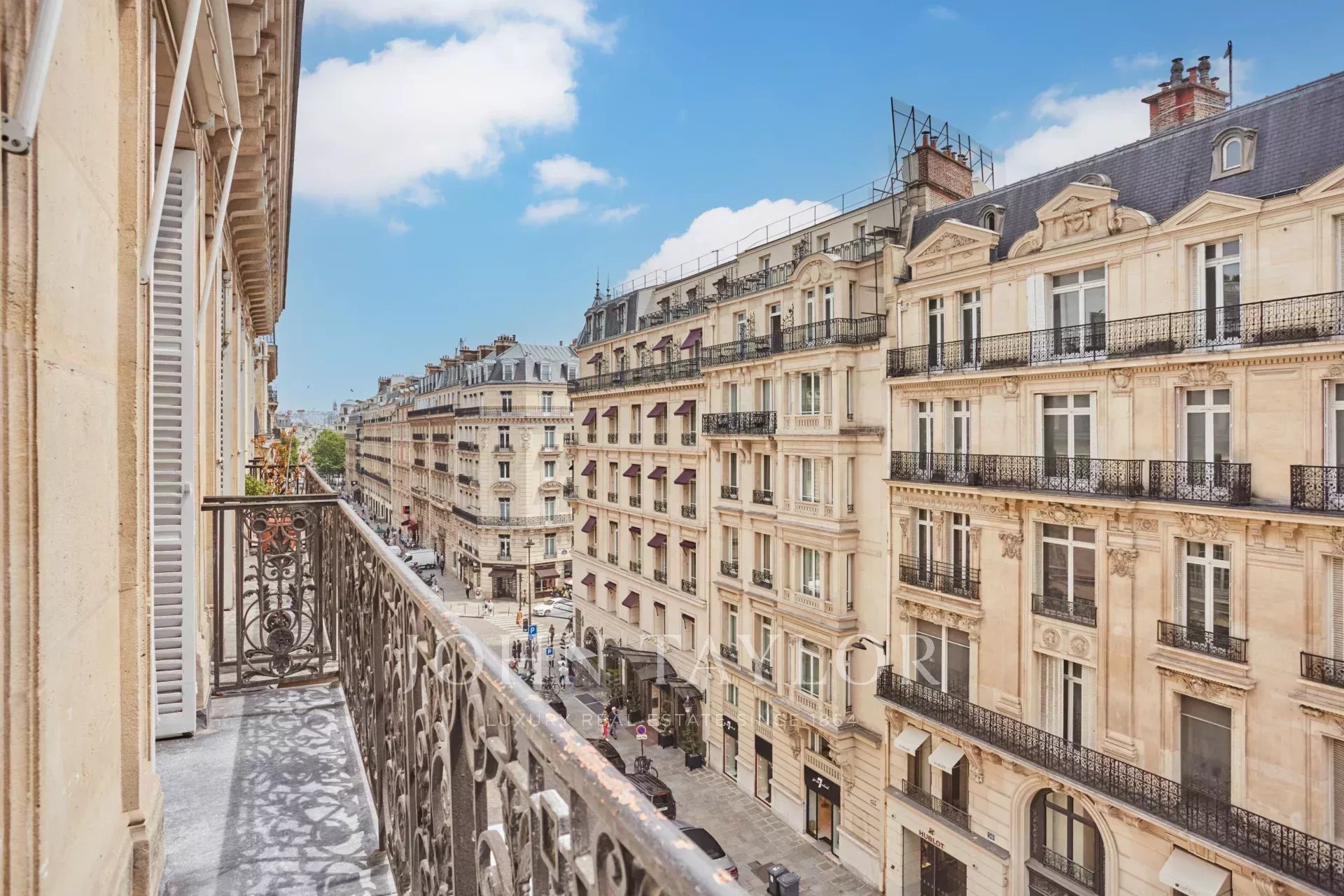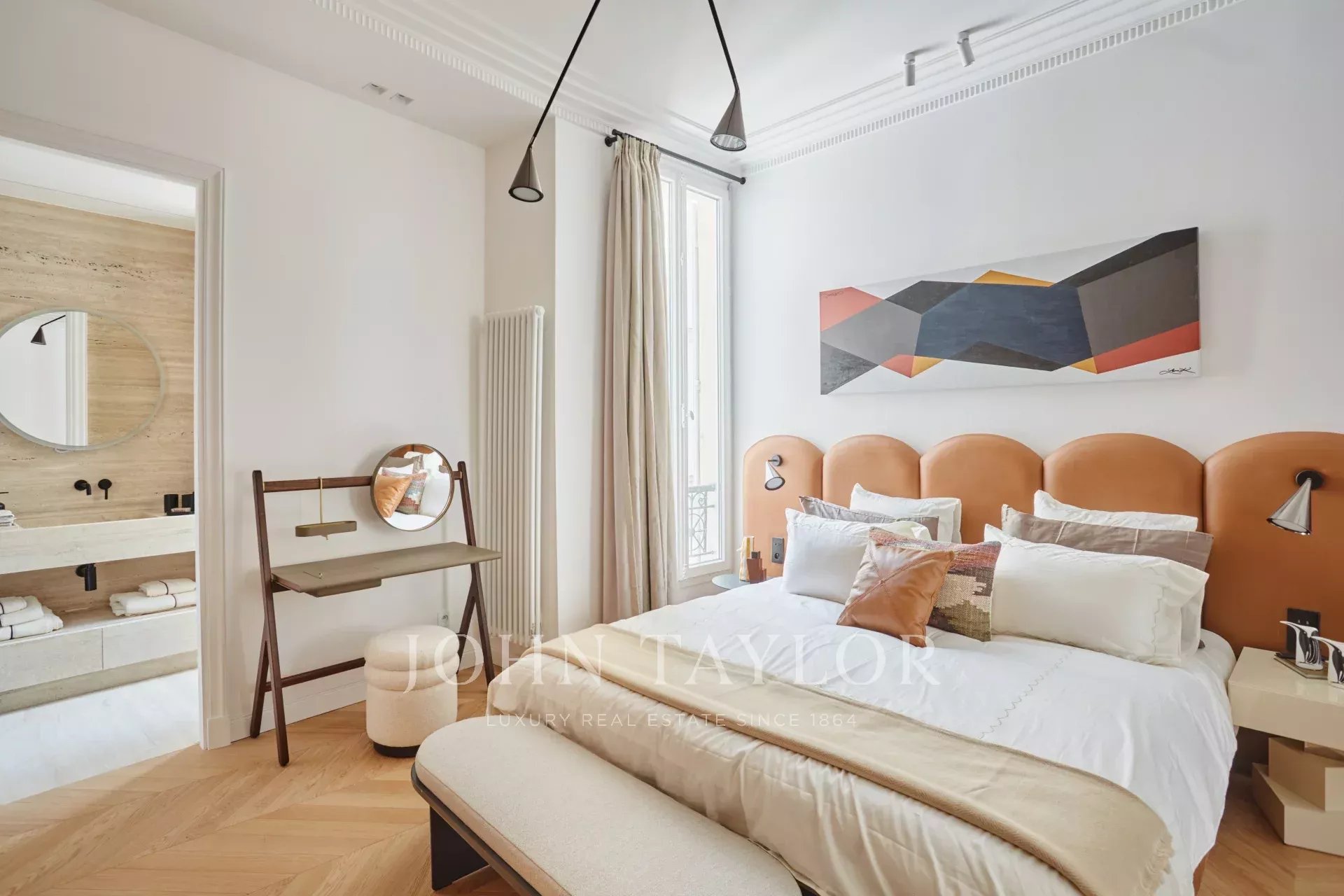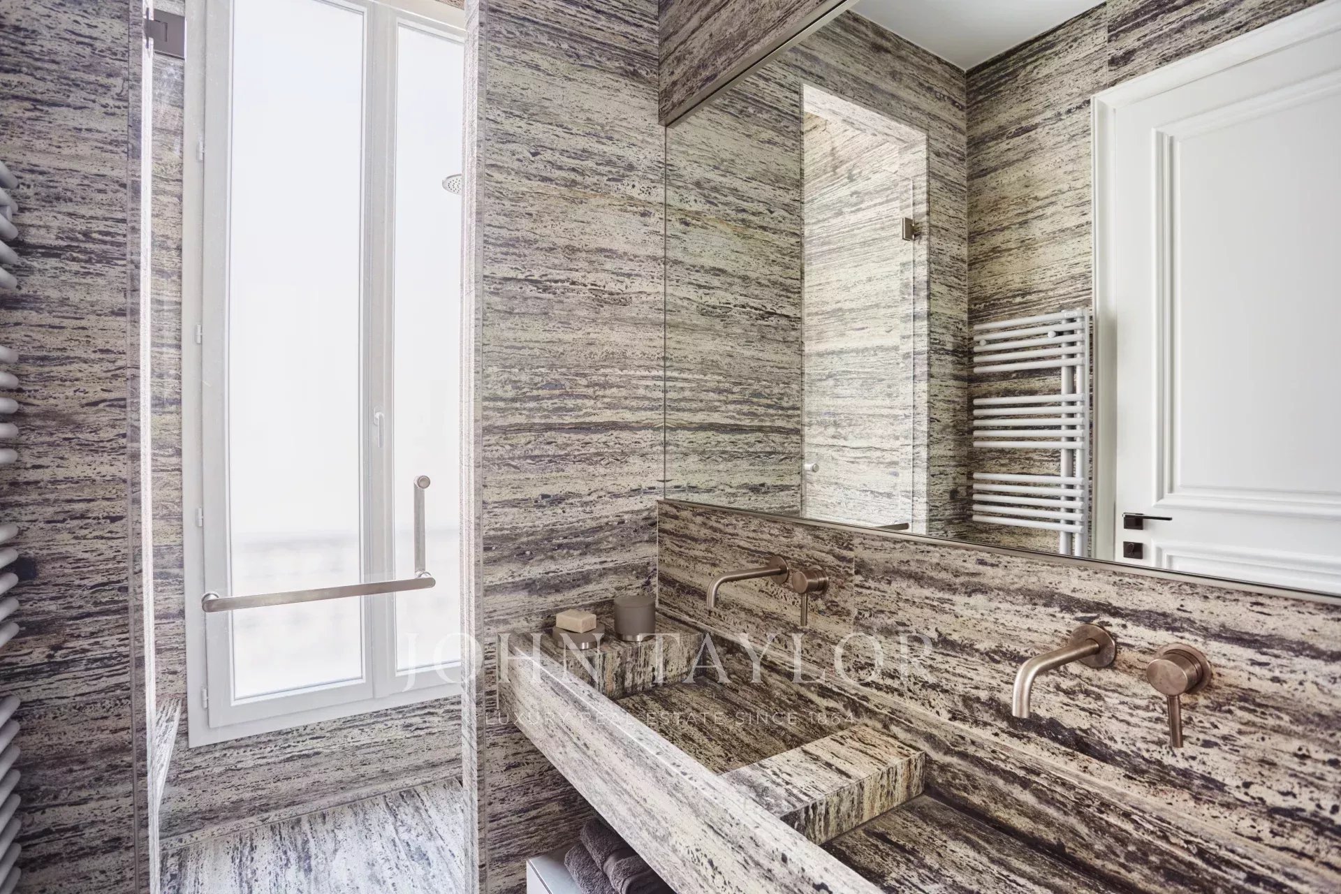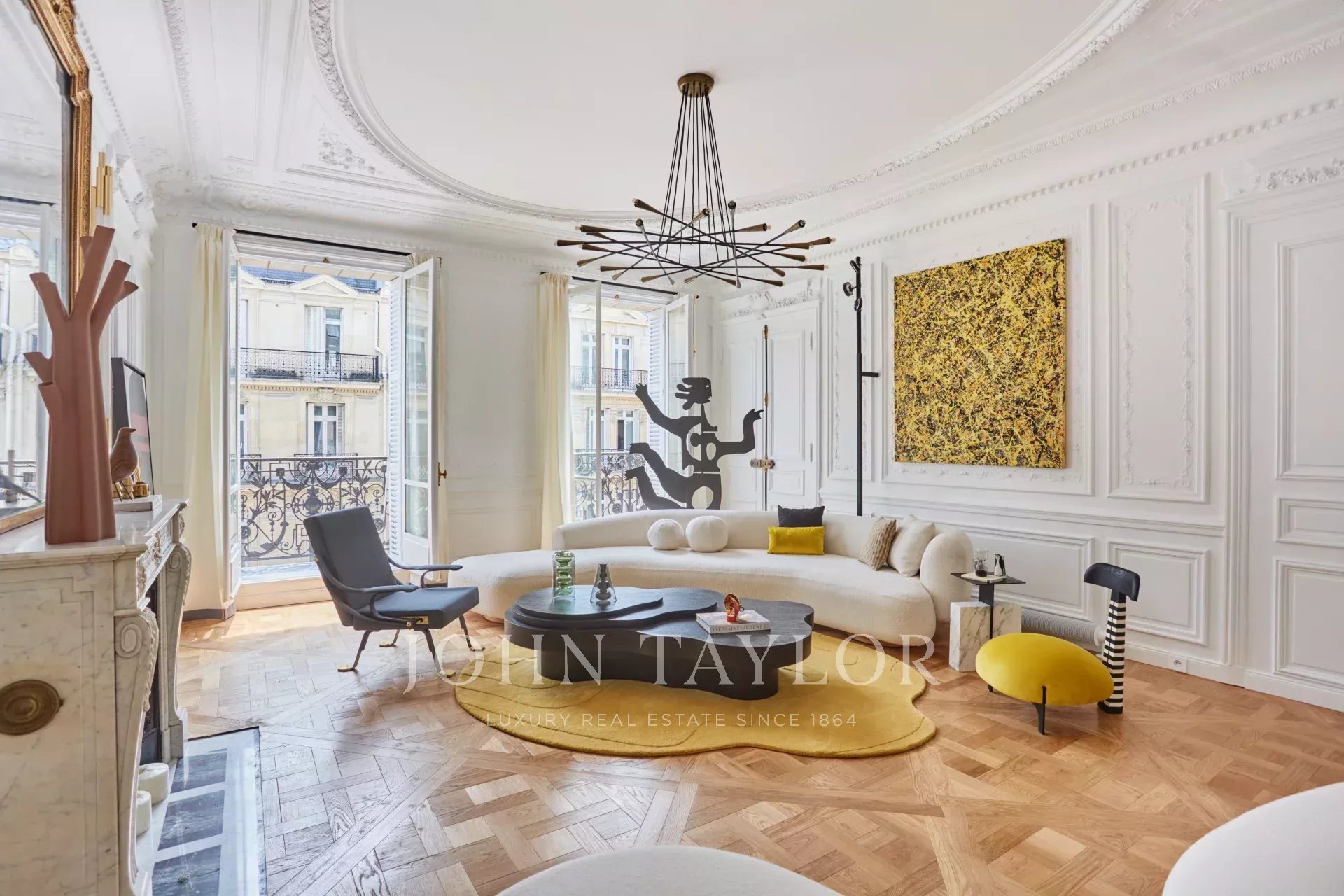 In the heart of the Golden Triangle, very close to Avenue George V, on the 4th floor of a beautiful freestone building, classic 160.47m² apartment just completely renovated. Sold fully furnished and equipped, ready to live in, it comprises: