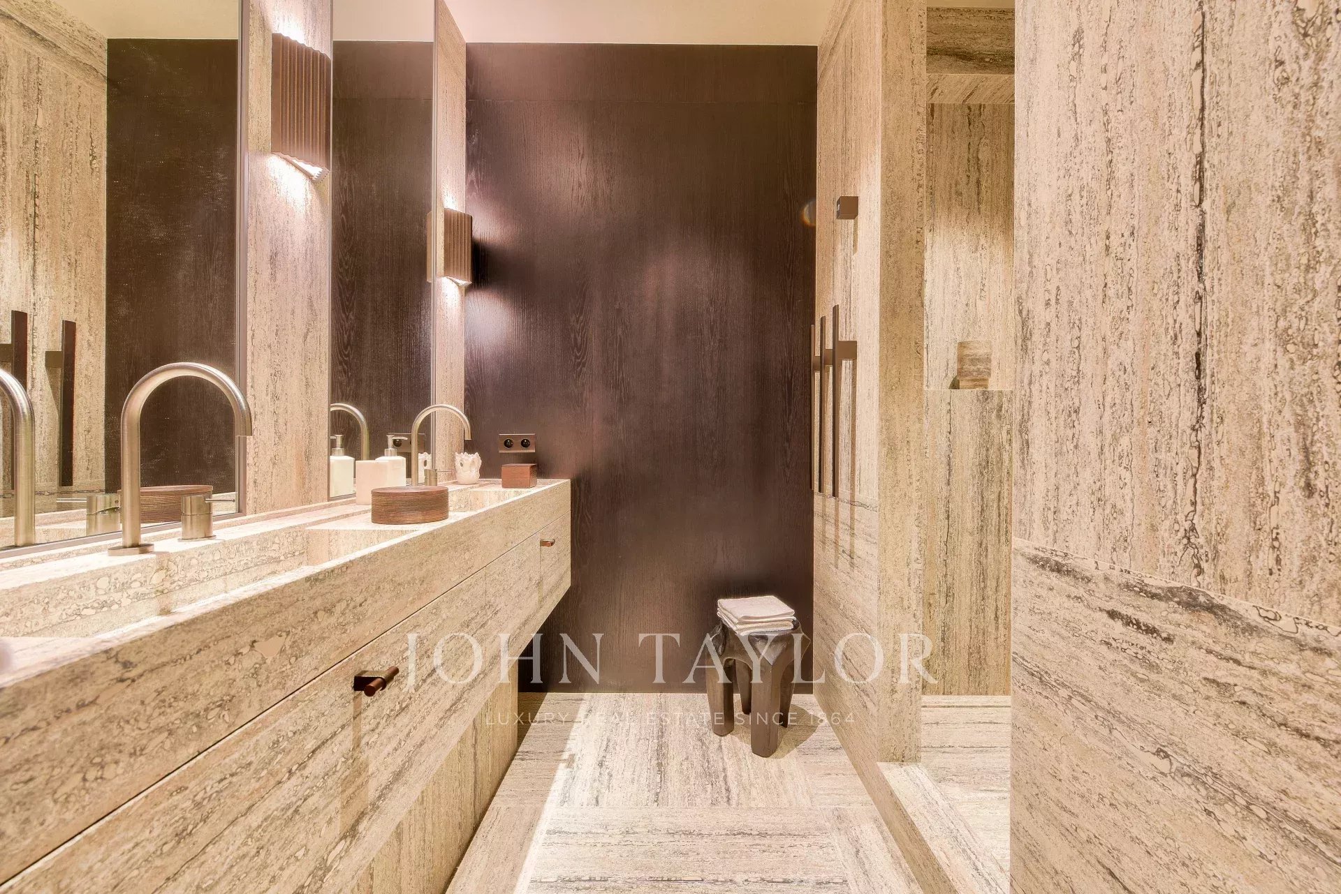- Three bedrooms, each with its own shower room in Iranian travertine and bespoke cabinetry crafted by highly skilled artisans,