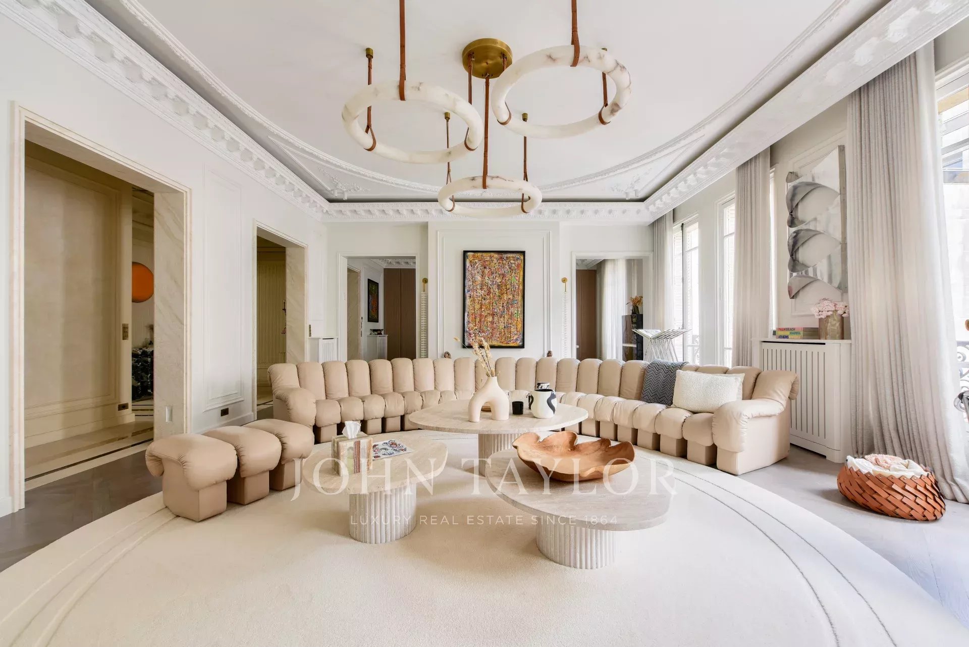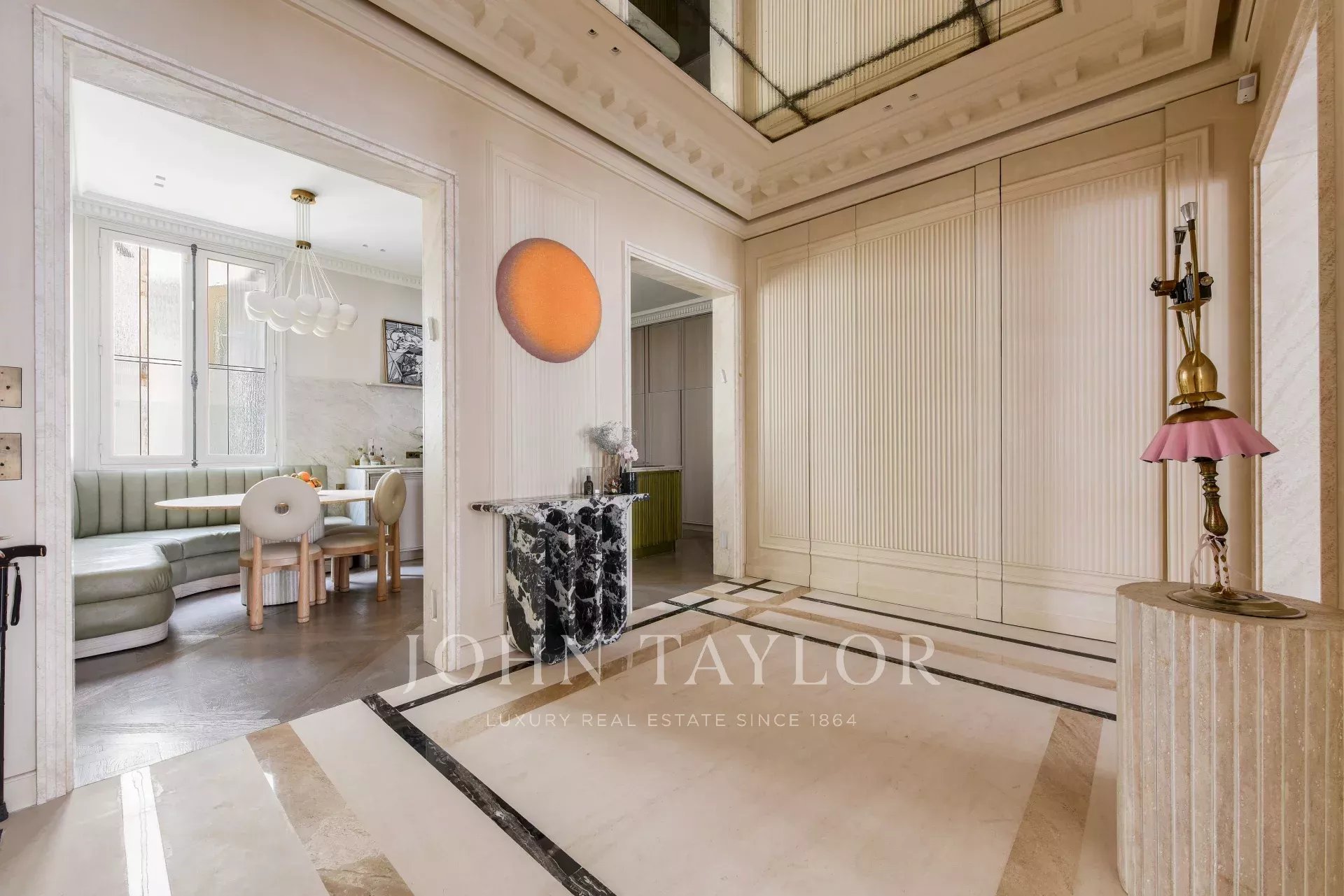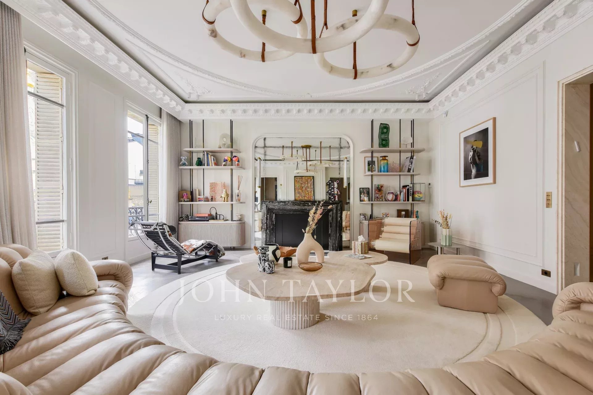 Close to Parc Monceau, on the top floor of an old building, this superb 210m² apartment has been completely renovated using noble materials and quality finishes.