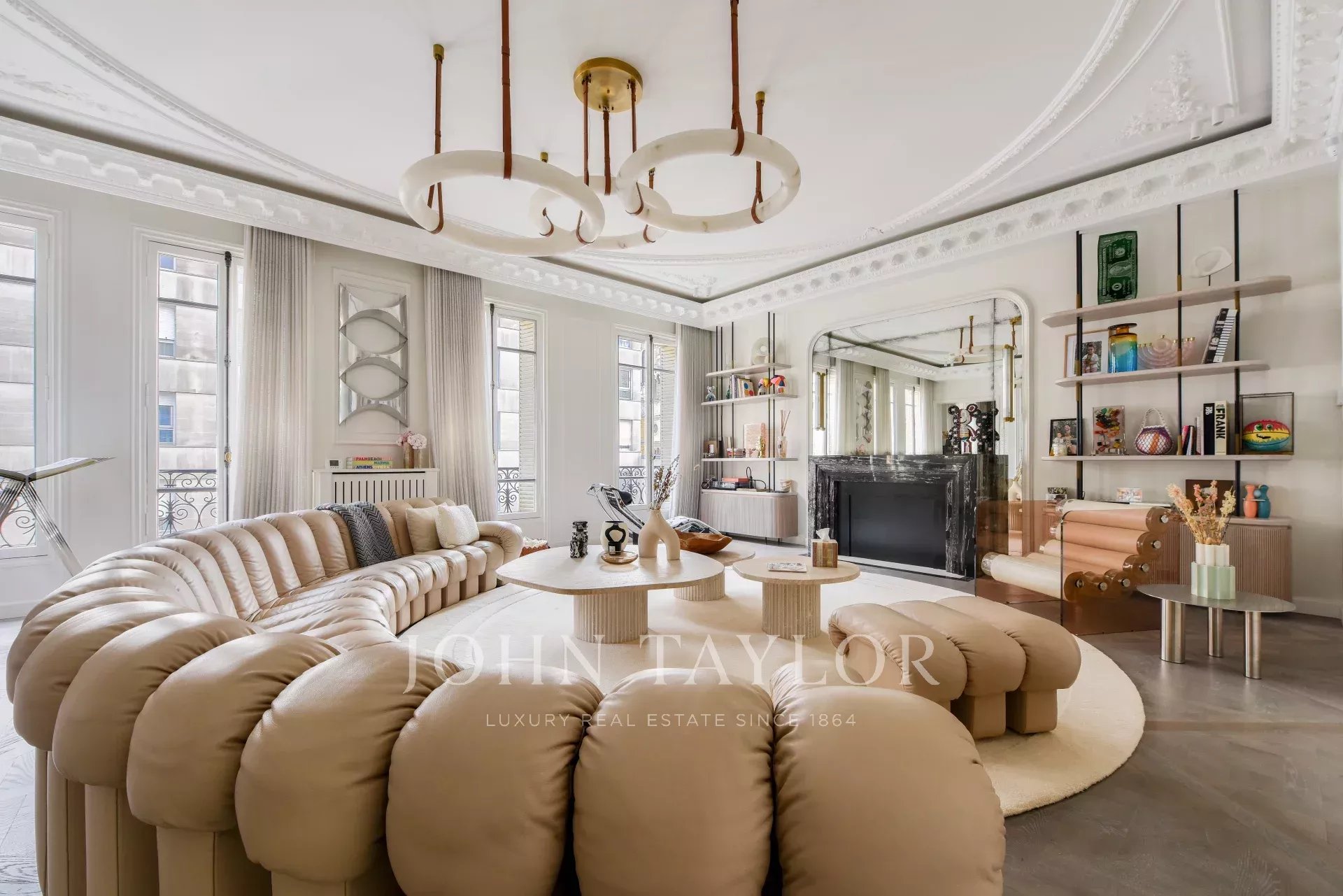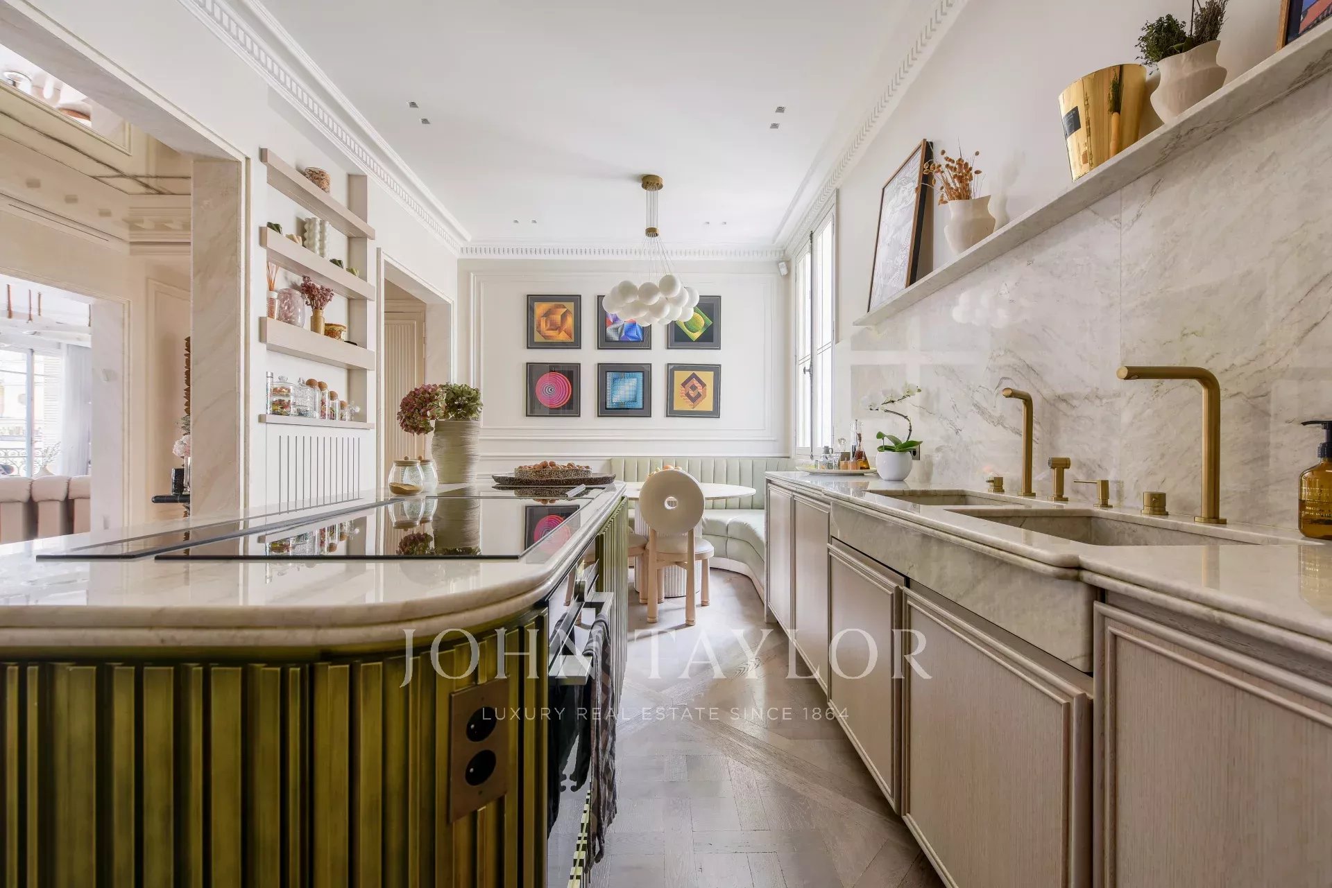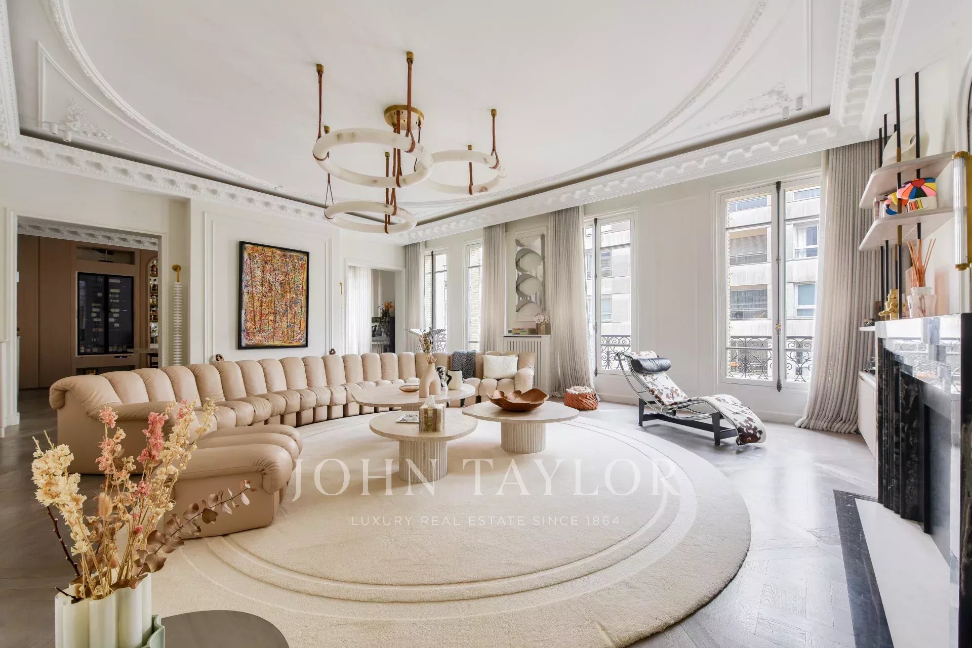 Close to Parc Monceau, on the top floor of an old building, this superb 210m² apartment has been completely renovated using noble materials and quality finishes.