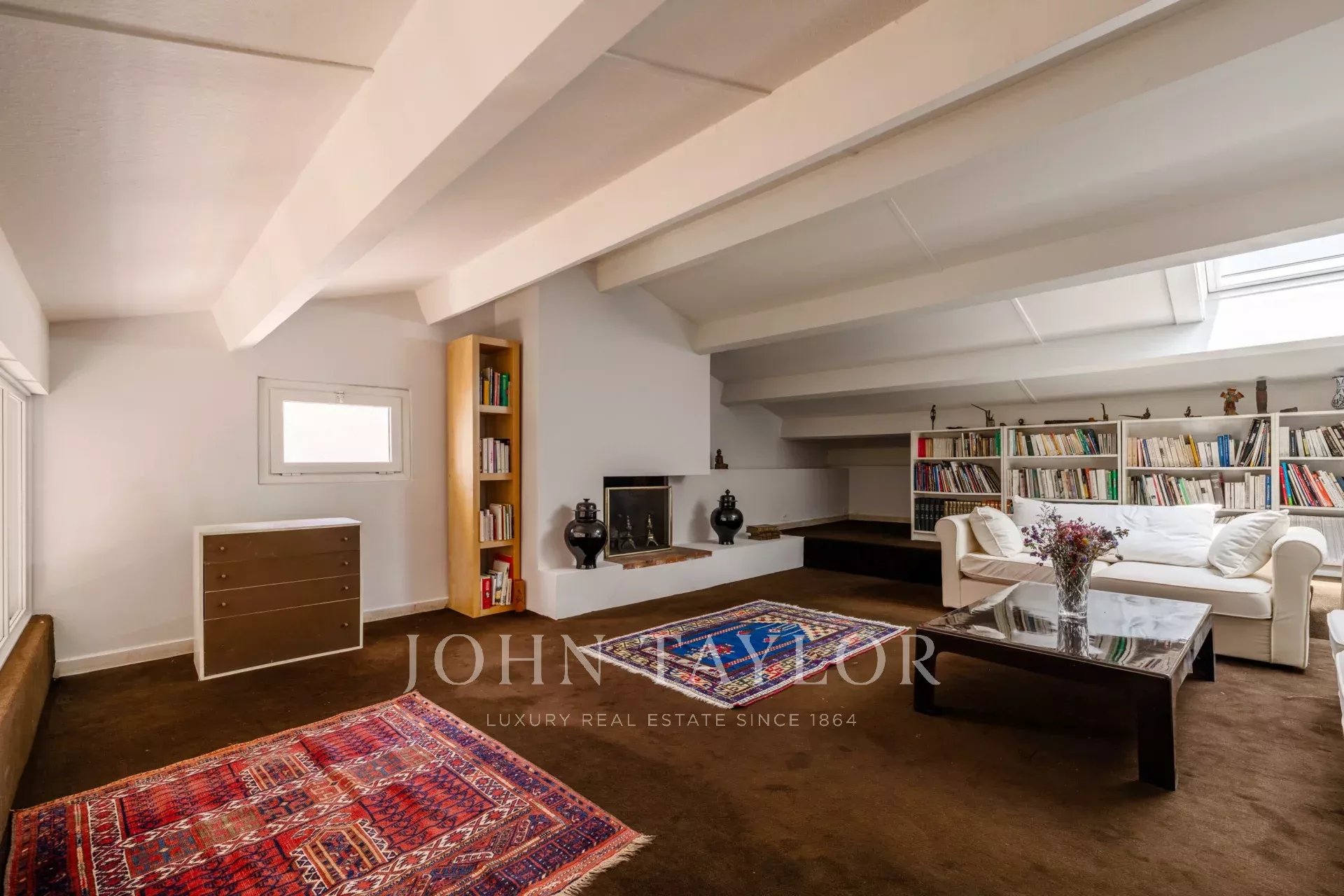 Directly accessible by elevator, this apartment offers 170 m² of living space, complemented by around 50 m² of converted attic space, making it ideal for a family or lovers of large spaces. From the entrance, a vast living room opens onto a spectacular 83.30 m² south-facing terrace, with no facing building, providing exceptional luminosity.