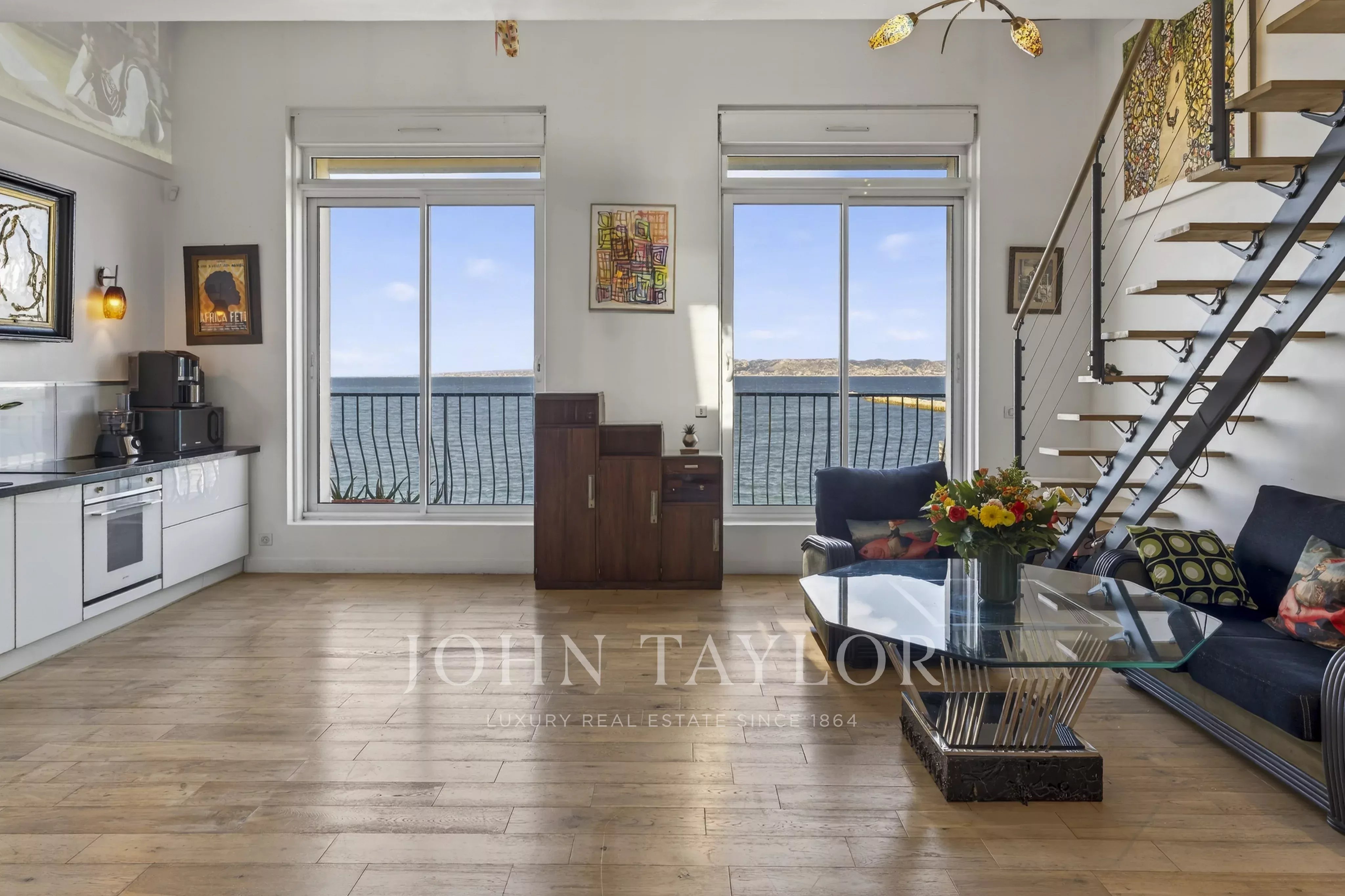 Located in the heart of the highly sought-after 7th arrondissement of Marseille, on the Corniche Kennedy and in a prime seafront position, this loft-style duplex offers 135 sqm of total floor area (112 sqm under Carrez law) and a rare living environment with panoramic views extending to the Frioul Islands.