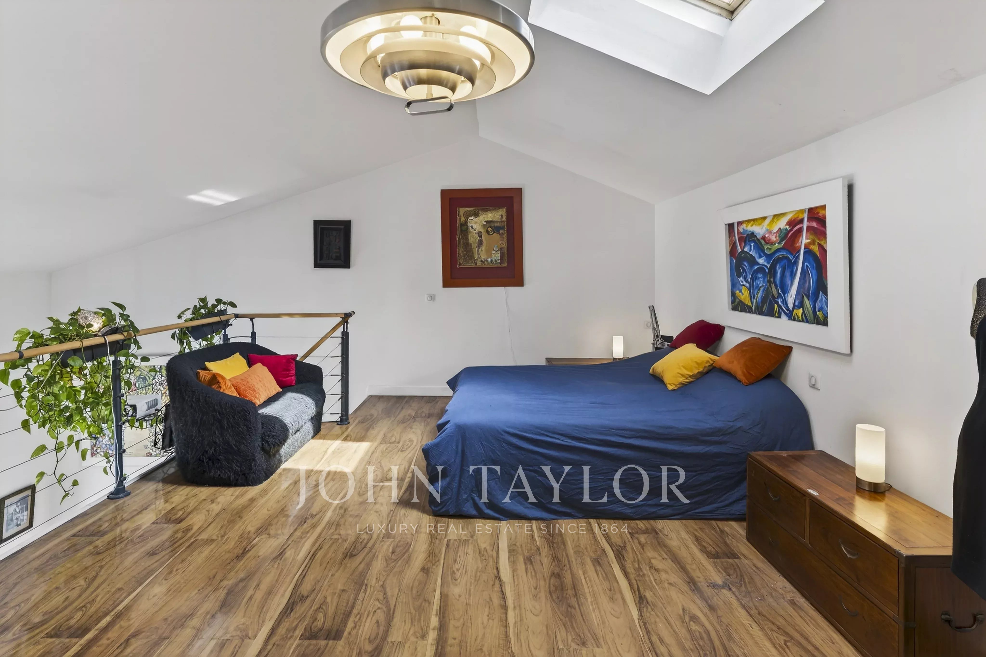 Upstairs, the mezzanine provides a large area that can be arranged as a second bedroom with dressing room, an office or an additional living space. Extending from this, an additional volume of approximately 30 sqm, currently used as a workshop, offers numerous layout possibilities, including the creation of an independent bedroom with bathroom, as well as a sea-view terrace, for which planning permission has already been granted.