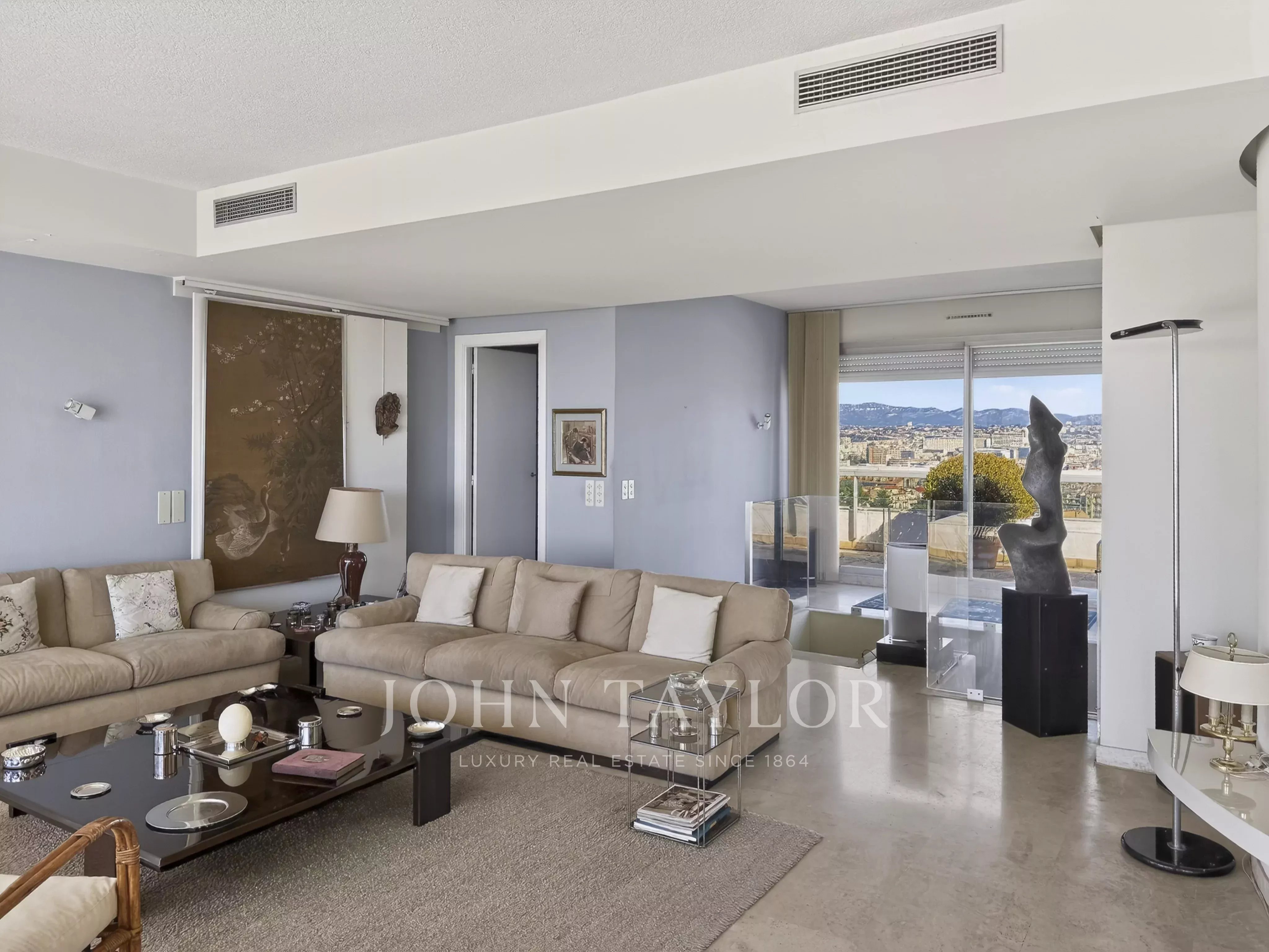 Located on the top floor of a sought-after, secure residential building, this 215 sqm apartment is a rare opportunity for those who appreciate generous volumes and breathtaking views over the Mediterranean Sea.