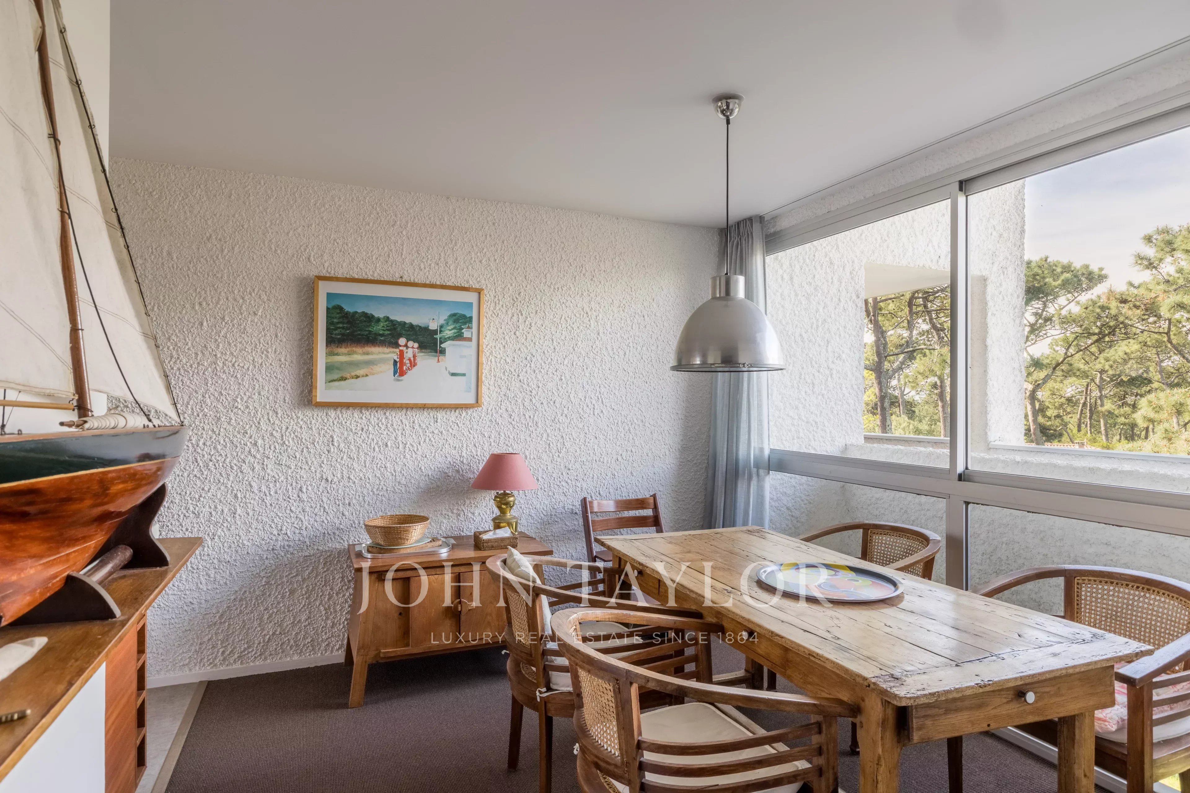 This exceptional apartment is a rare and precious testimony to 1975 seaside architecture. Nestled within a high-end residence with a caretaker, a swimming pool, and tennis courts, this place appeals to connoisseurs seeking an authenticity that has become unobtainable on the Cap Ferret peninsula.