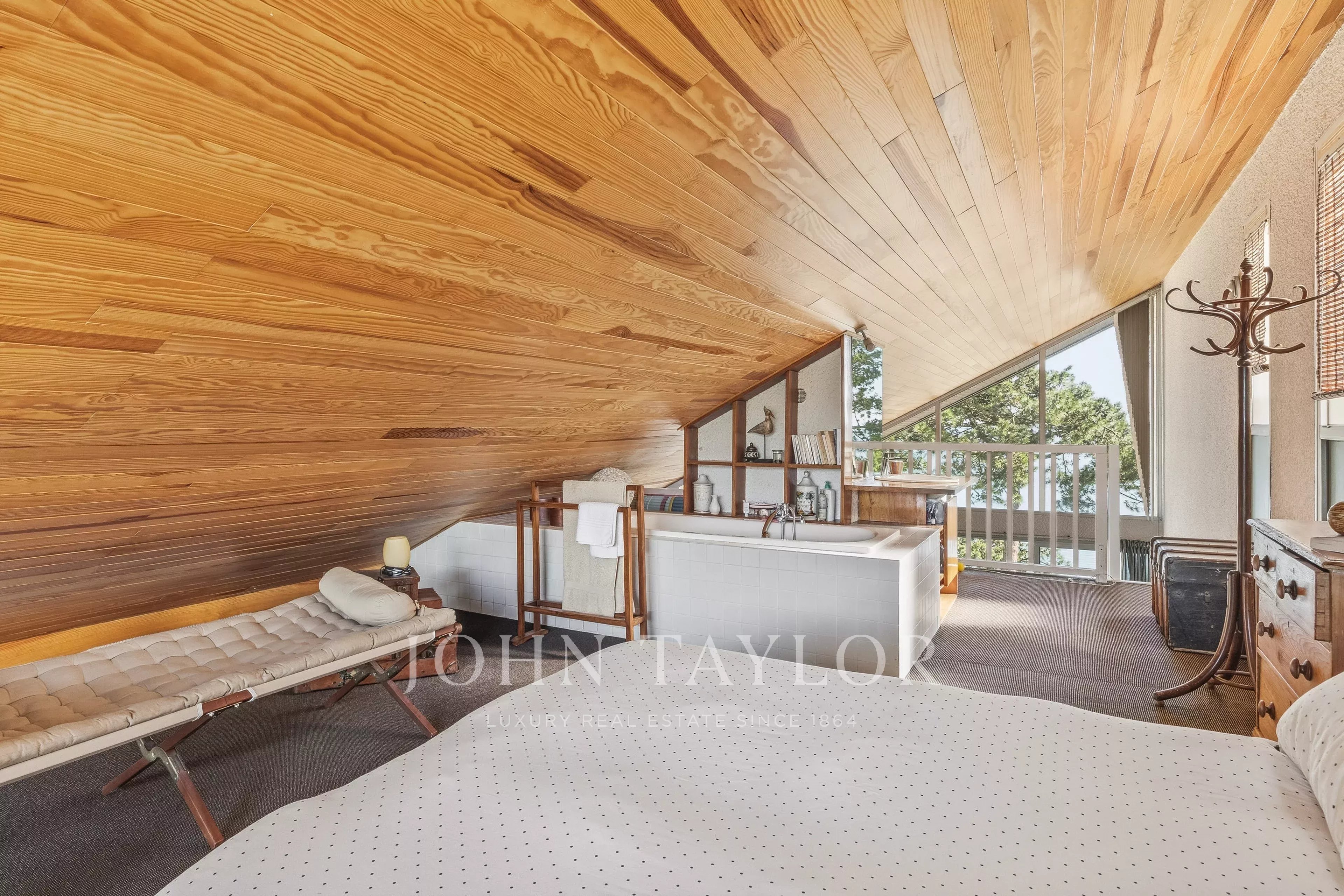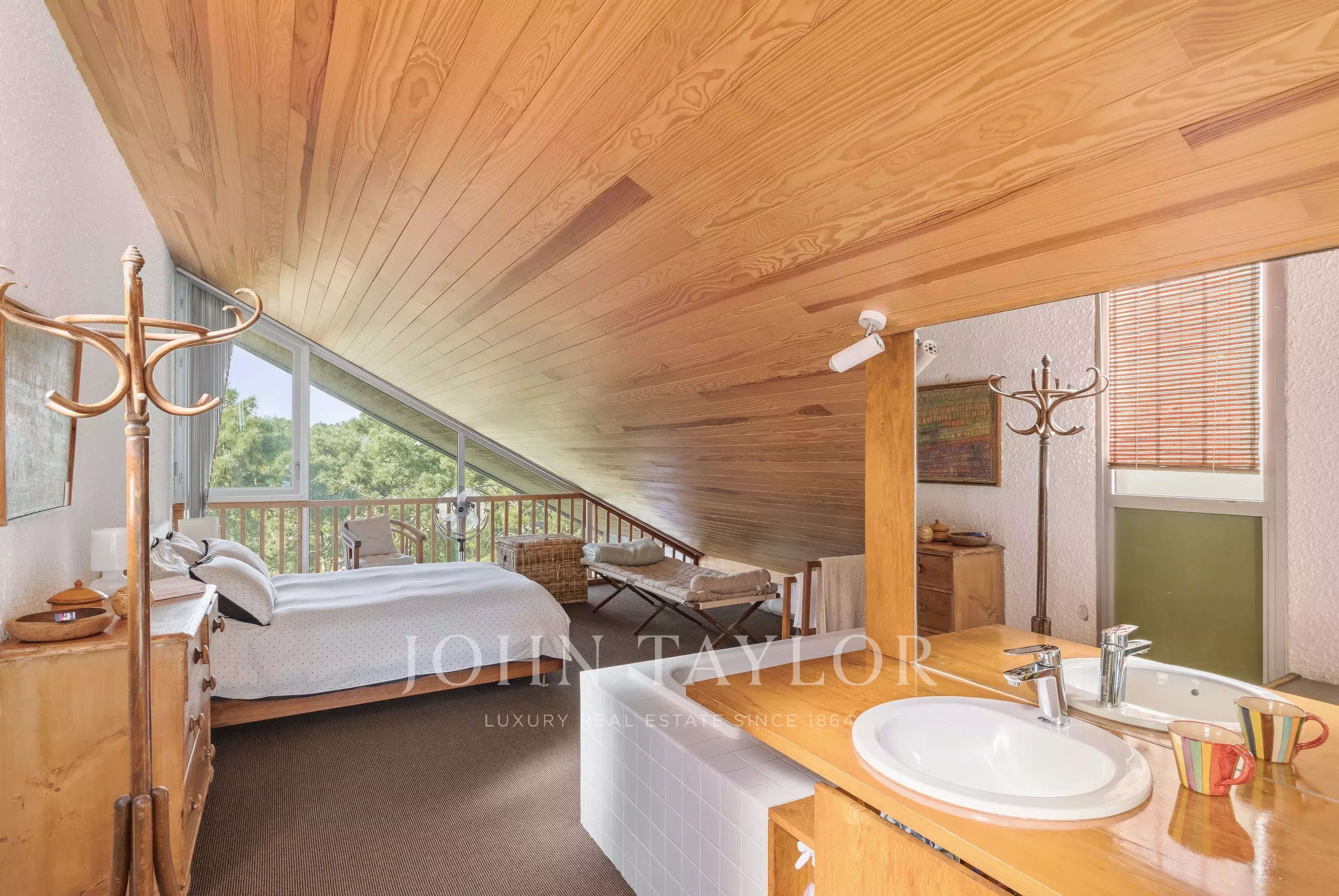The interior layout features four major rooms, including a master suite with a mezzanine bathroom, a true architectural signature of the residence. Two additional bedrooms and a shower room complete this ideally proportioned set.