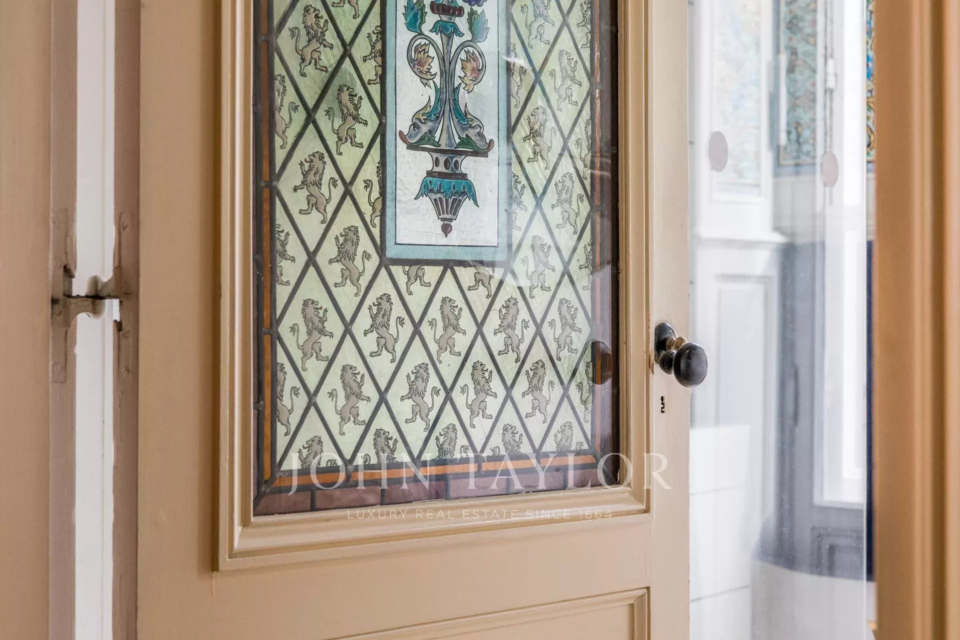 Its wrap-around balcony offers a superb view of the Garonne, while the interior, bathed in light, reveals an exceptional heritage: woodwork, moldings, original parquet floors, ceiling heights of 4.80 m, as well as remarkable details such as earthenware by Jules Vieillard and stained glass by Amédée de Caranza. All accessible by elevator.