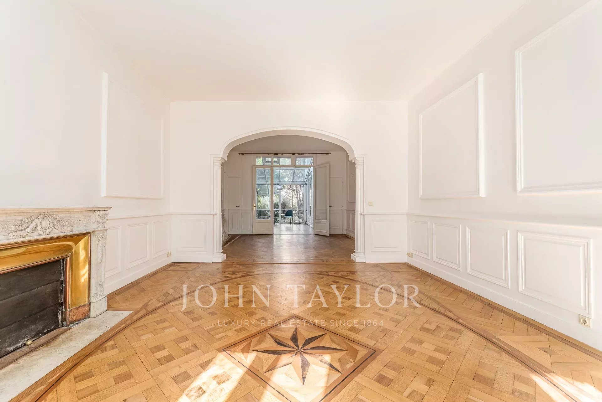 On the first floor, you'll discover a spacious living area: a vast lounge with fireplace, refined parquet flooring, moldings and a glass roof giving access to a private 100 m² garden, a true haven of peace in the city center. The kitchen and master suite complete this level.