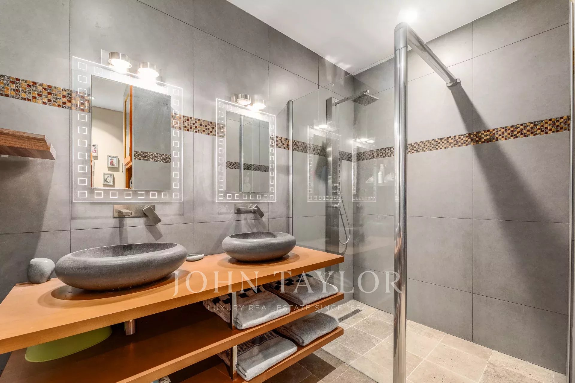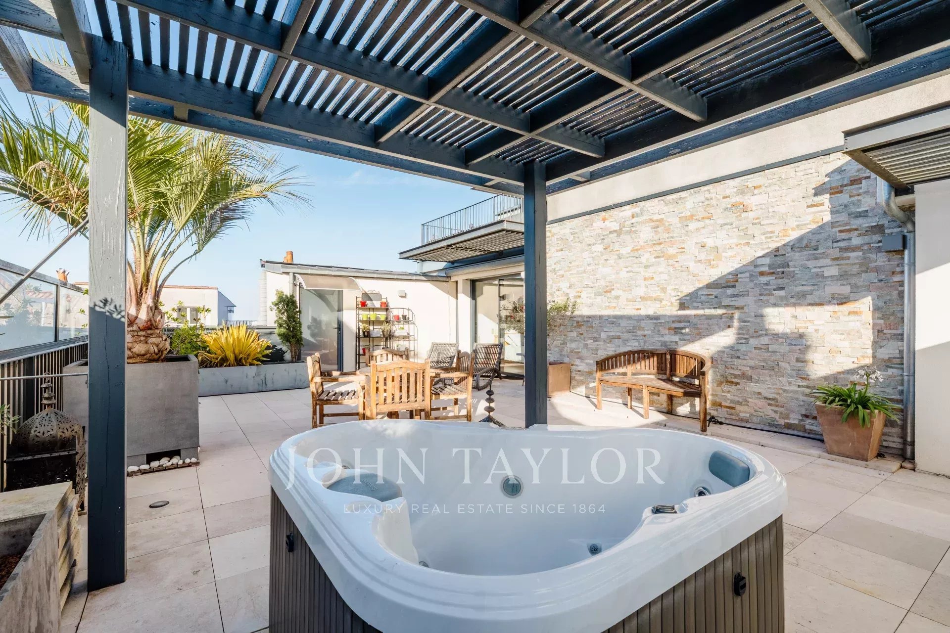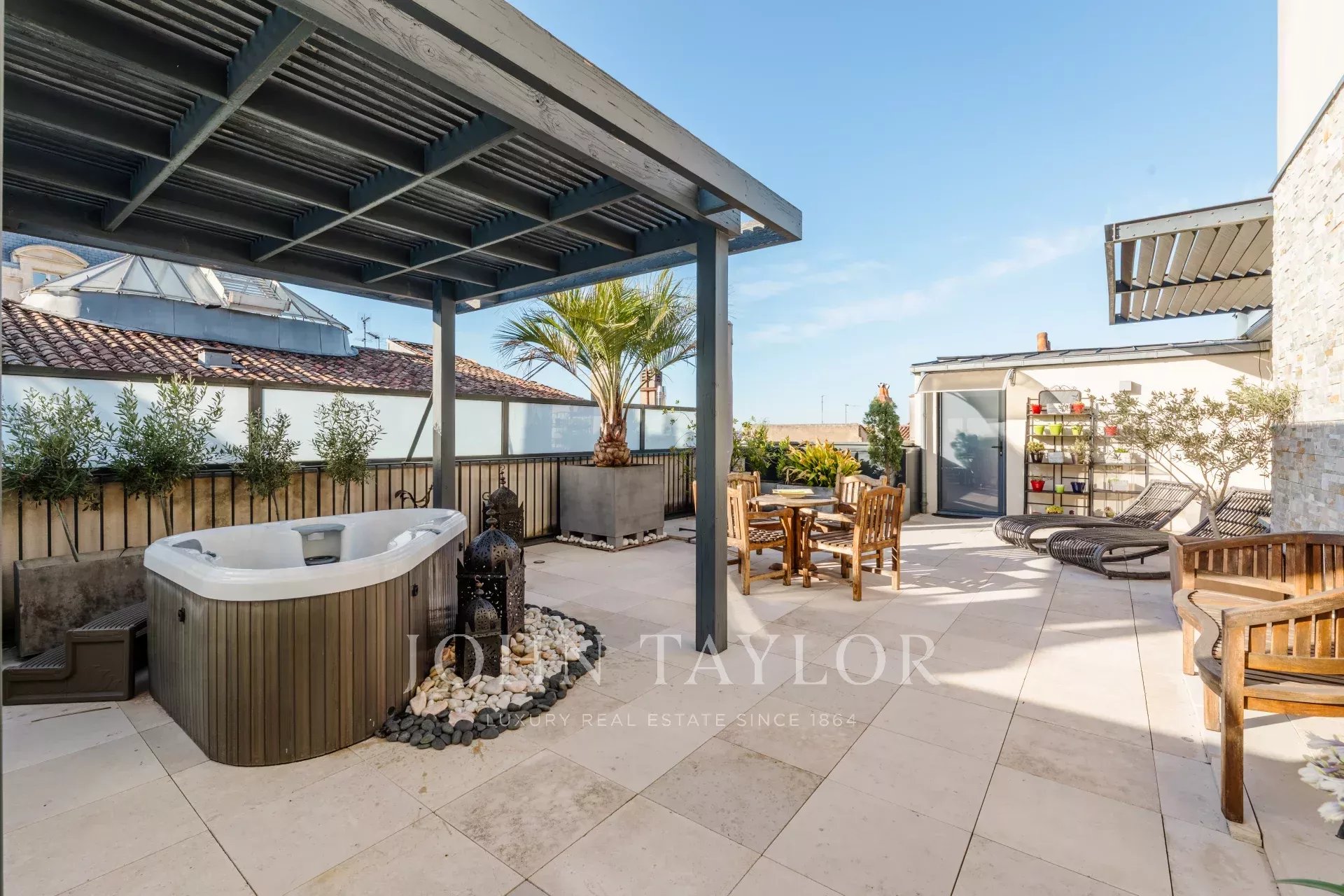 In the Golden Triangle, exceptional 190 m² apartment on the third floor of a beautiful stone building whose common areas have recently been renovated using top-of-the-range materials. The building has an elevator leading directly to the parking lot. The apartment benefits from two large private terraces in a quiet location and two secure parking spaces.