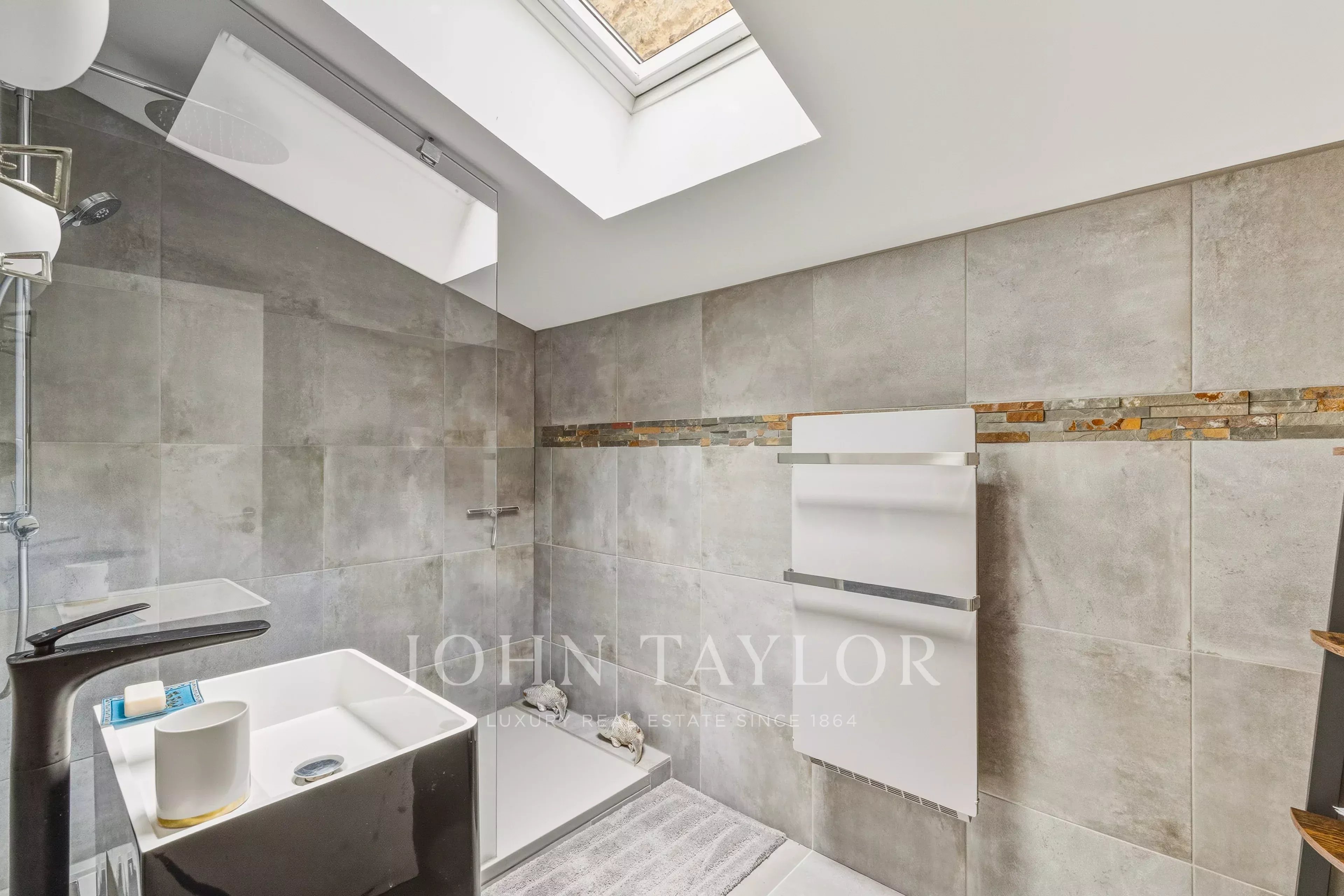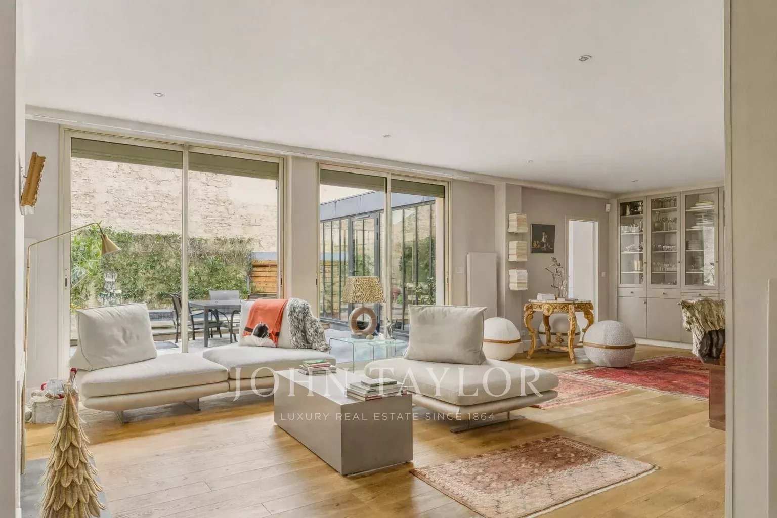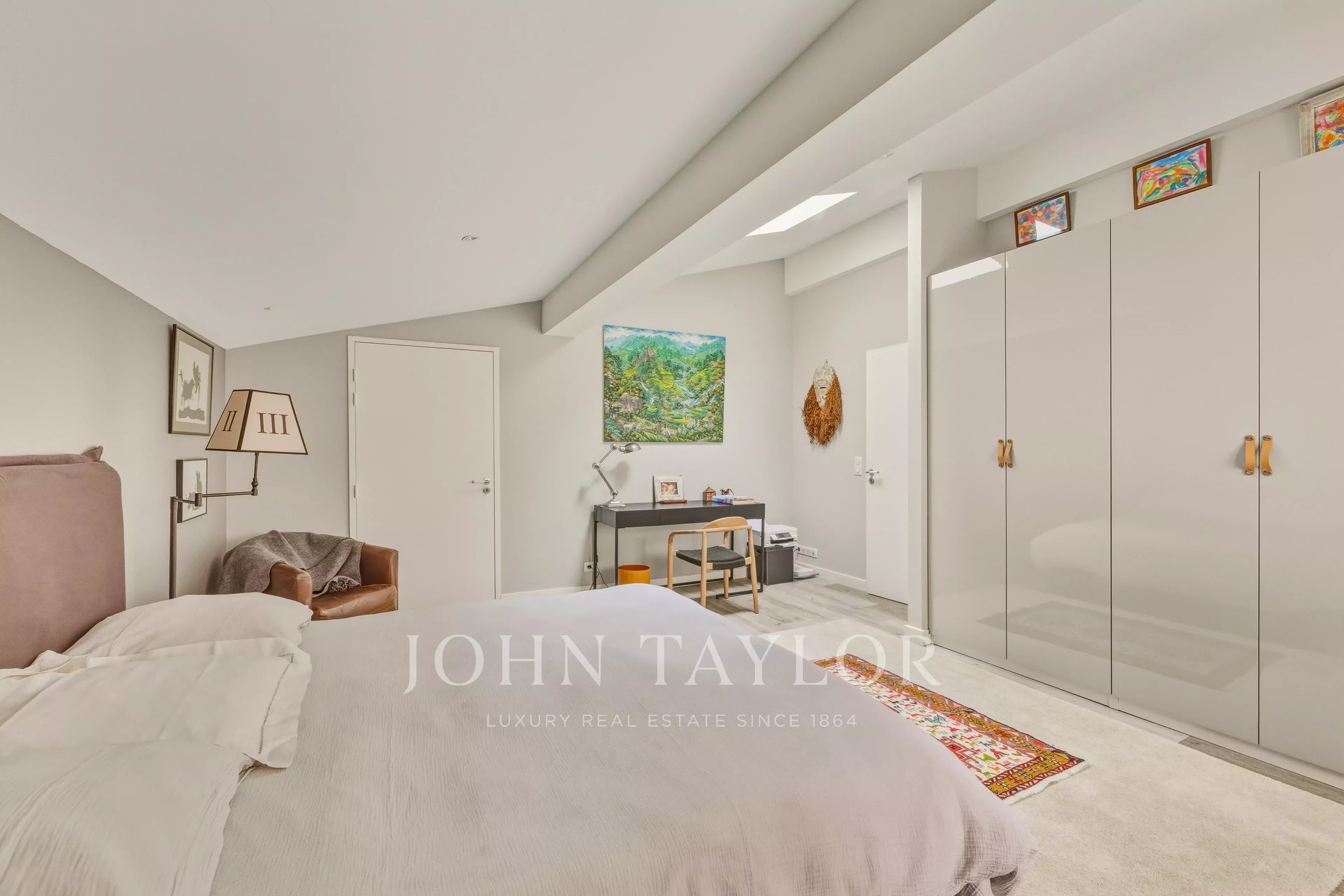 A beautiful 220 m² duplex that feels like a fully renovated house, with a private elevator to each level and a large 70 m² garden with swimming pool. A discreet, quiet address in a building with elegant, perfectly maintained common areas.