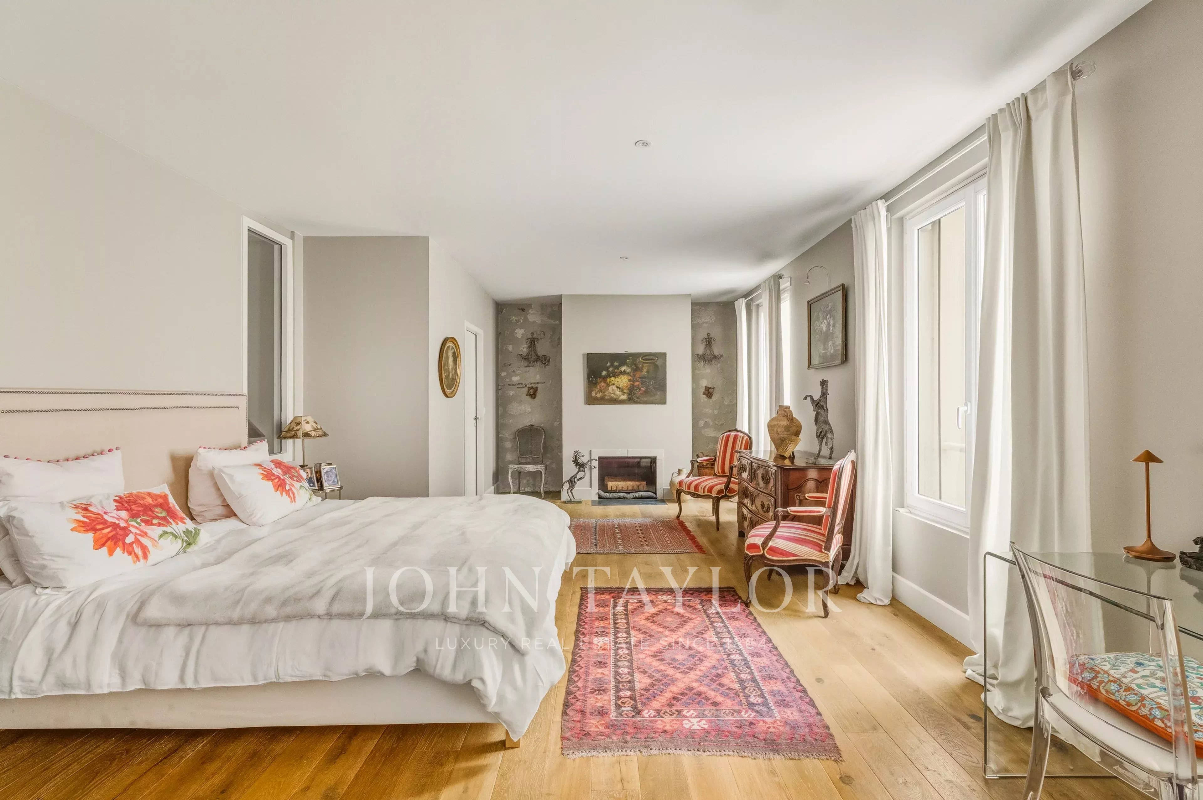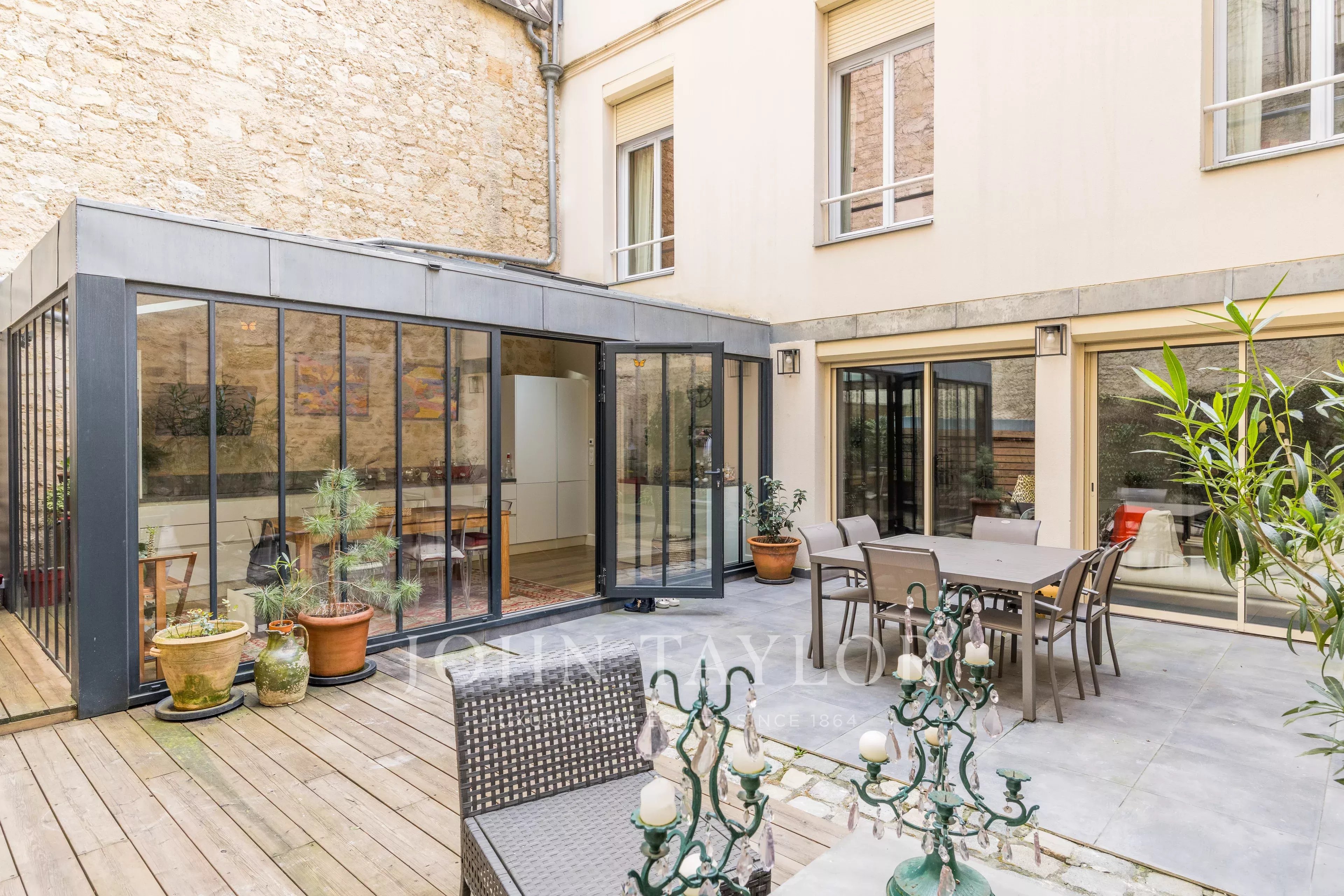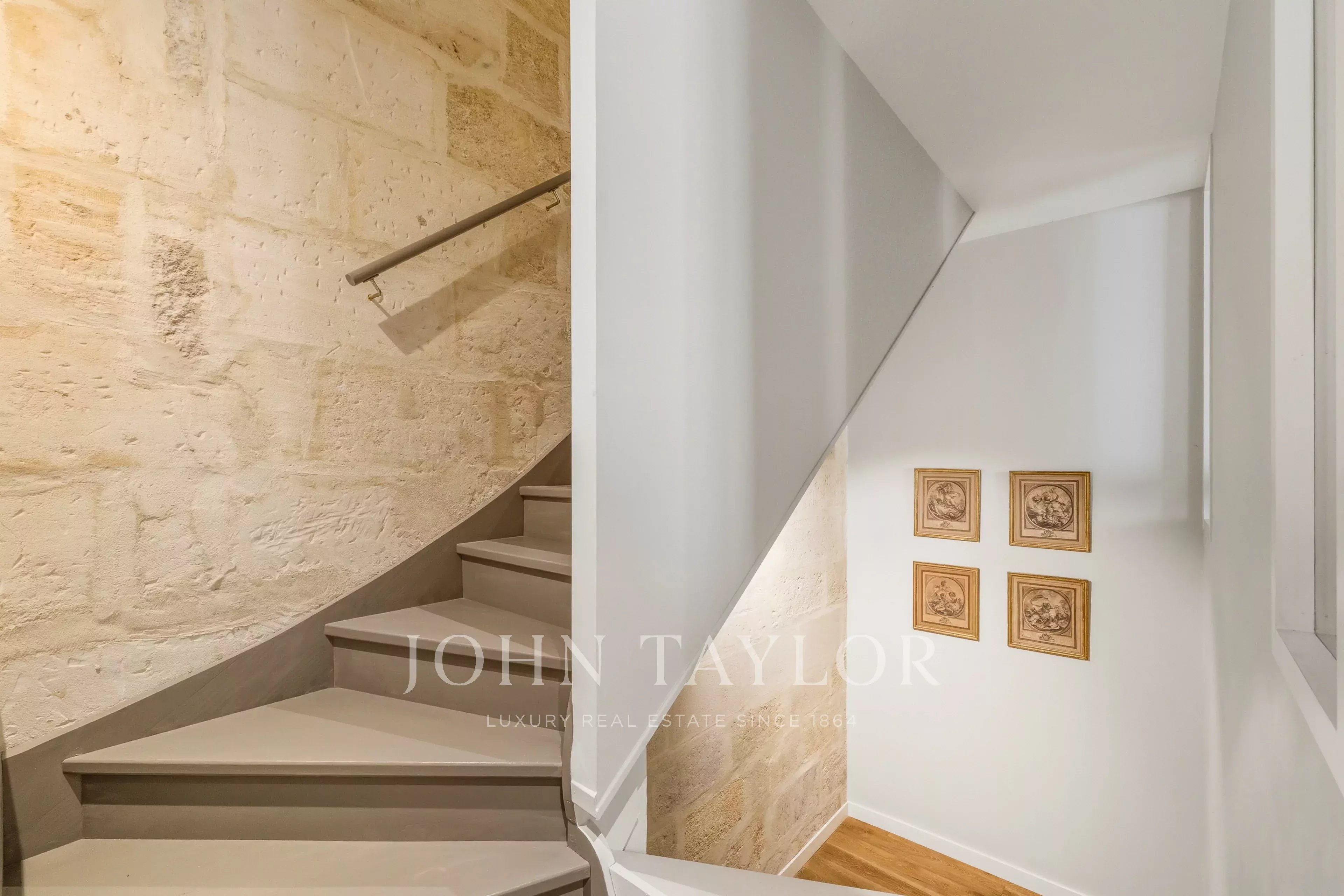 A beautiful 220 m² duplex that feels like a fully renovated house, with a private elevator to each level and a large 70 m² garden with swimming pool. A discreet, quiet address in a building with elegant, perfectly maintained common areas.