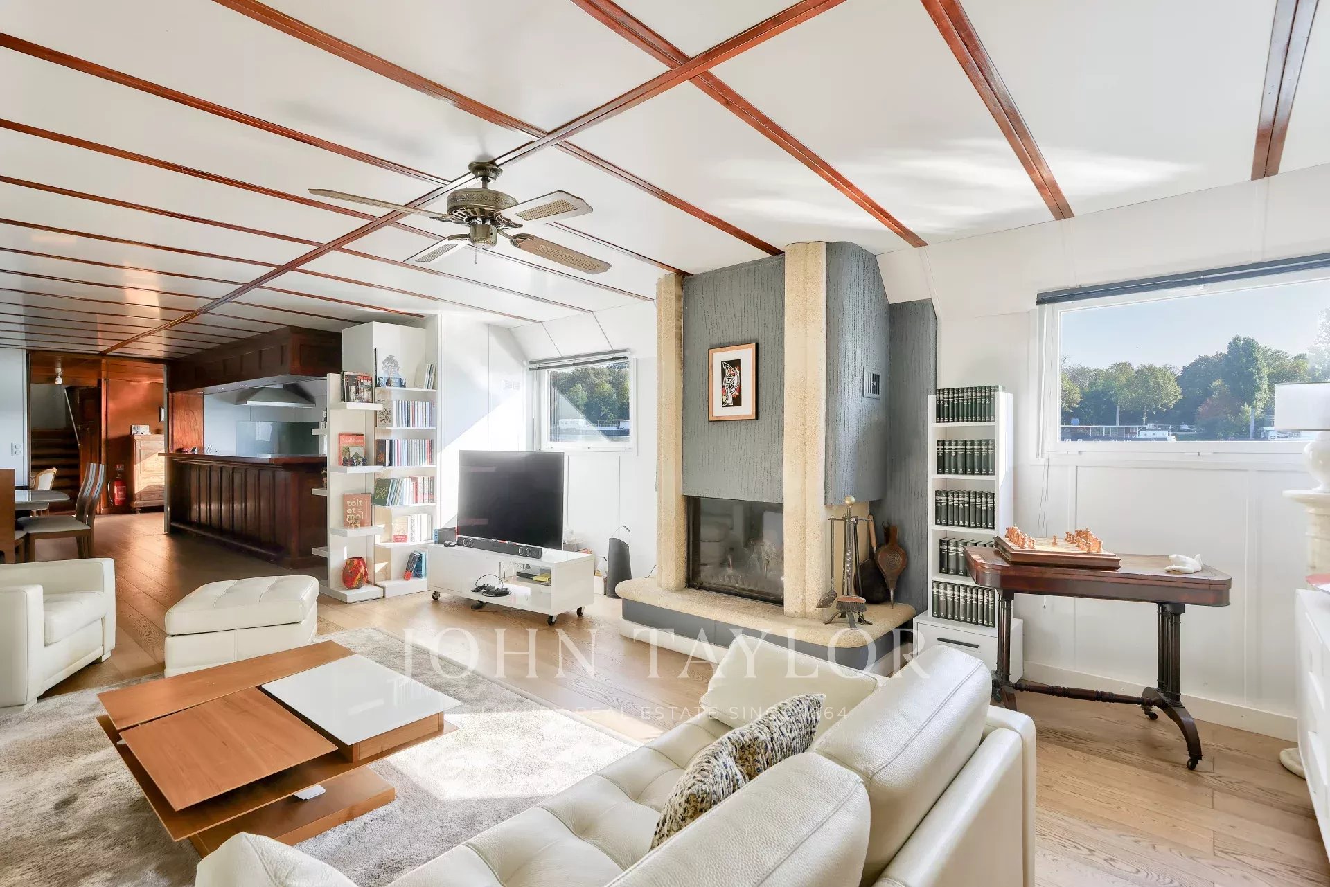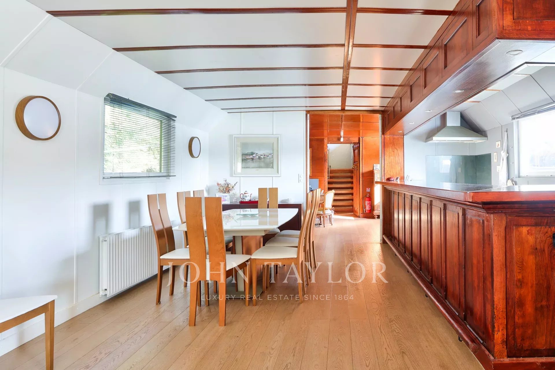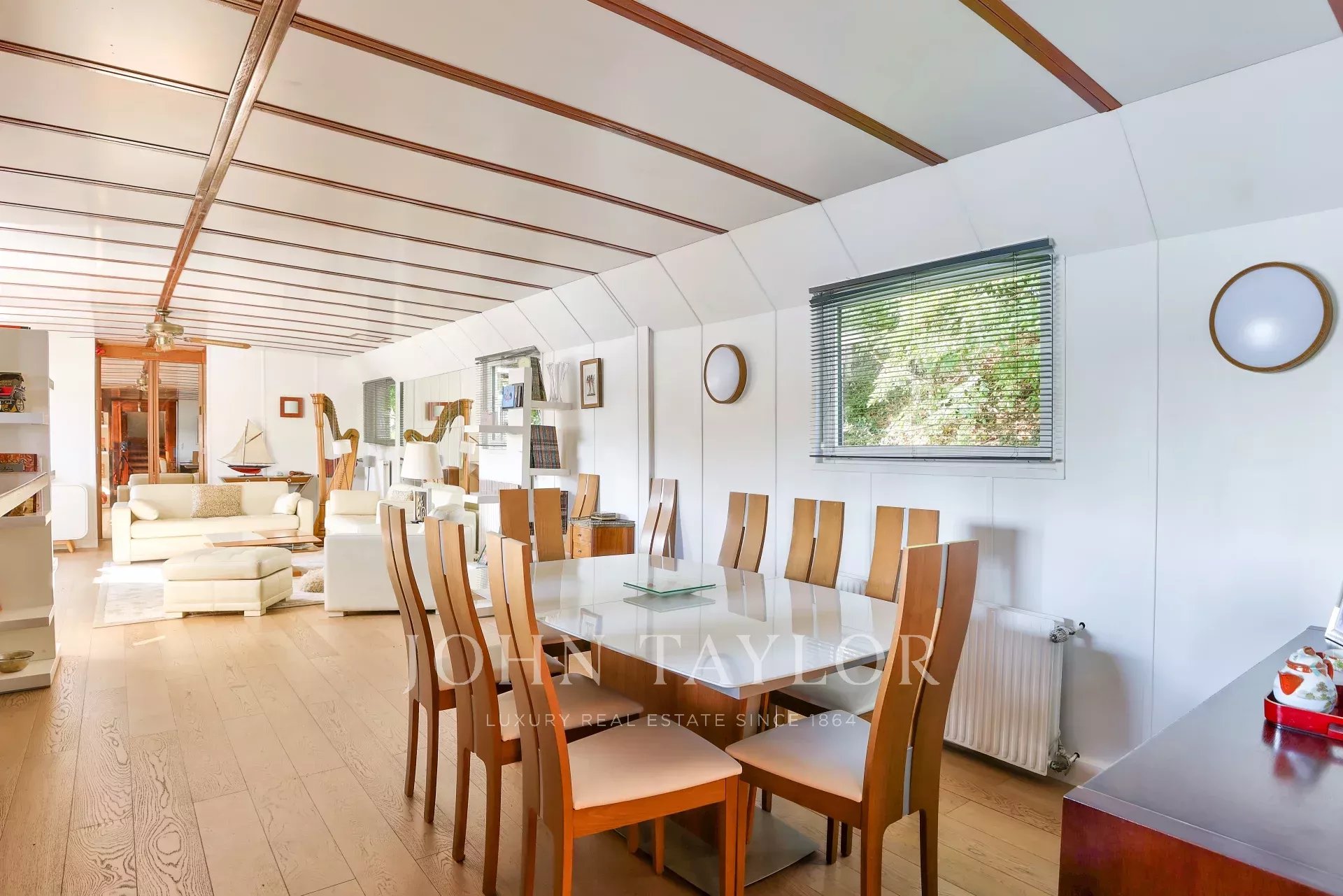 The barge offers a rare combination of space, comfort and originality. Several parking spaces are available nearby, and there are no notary fees for this type of property.
