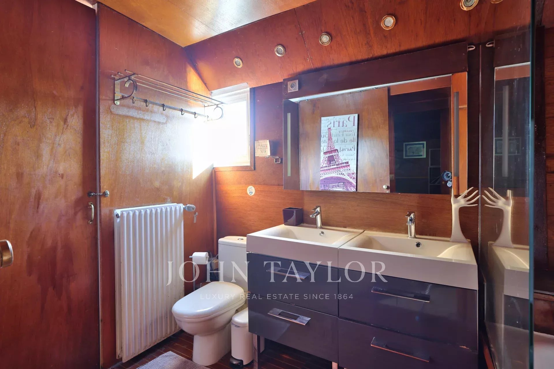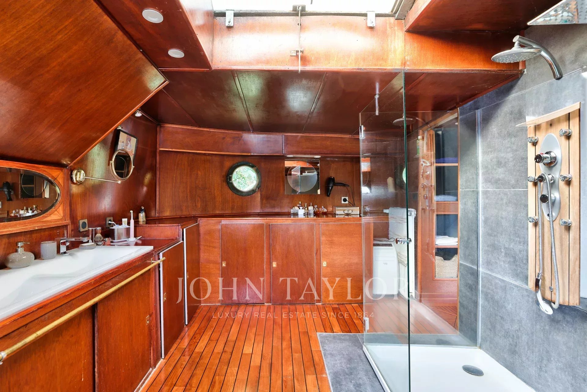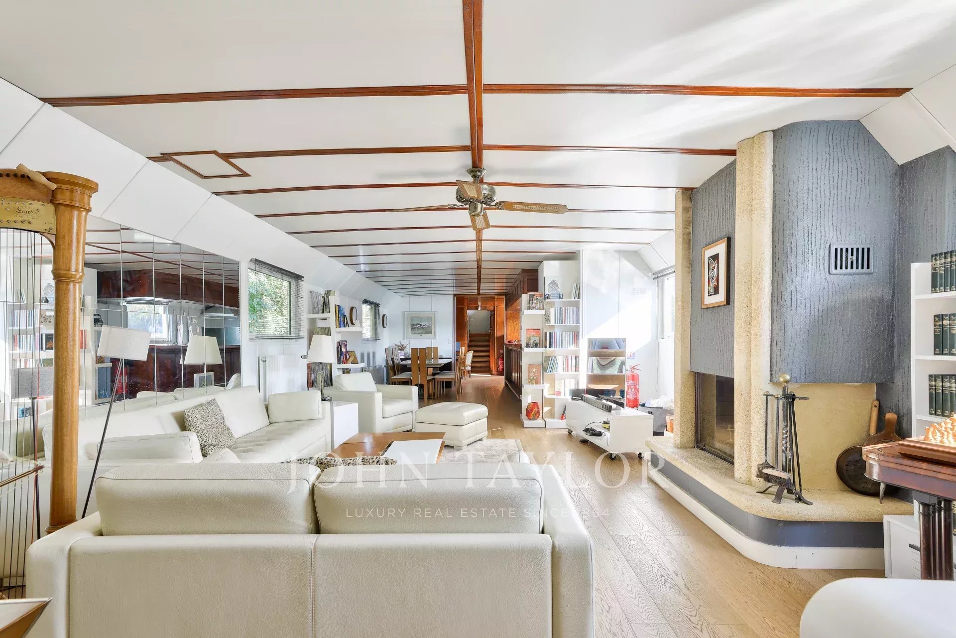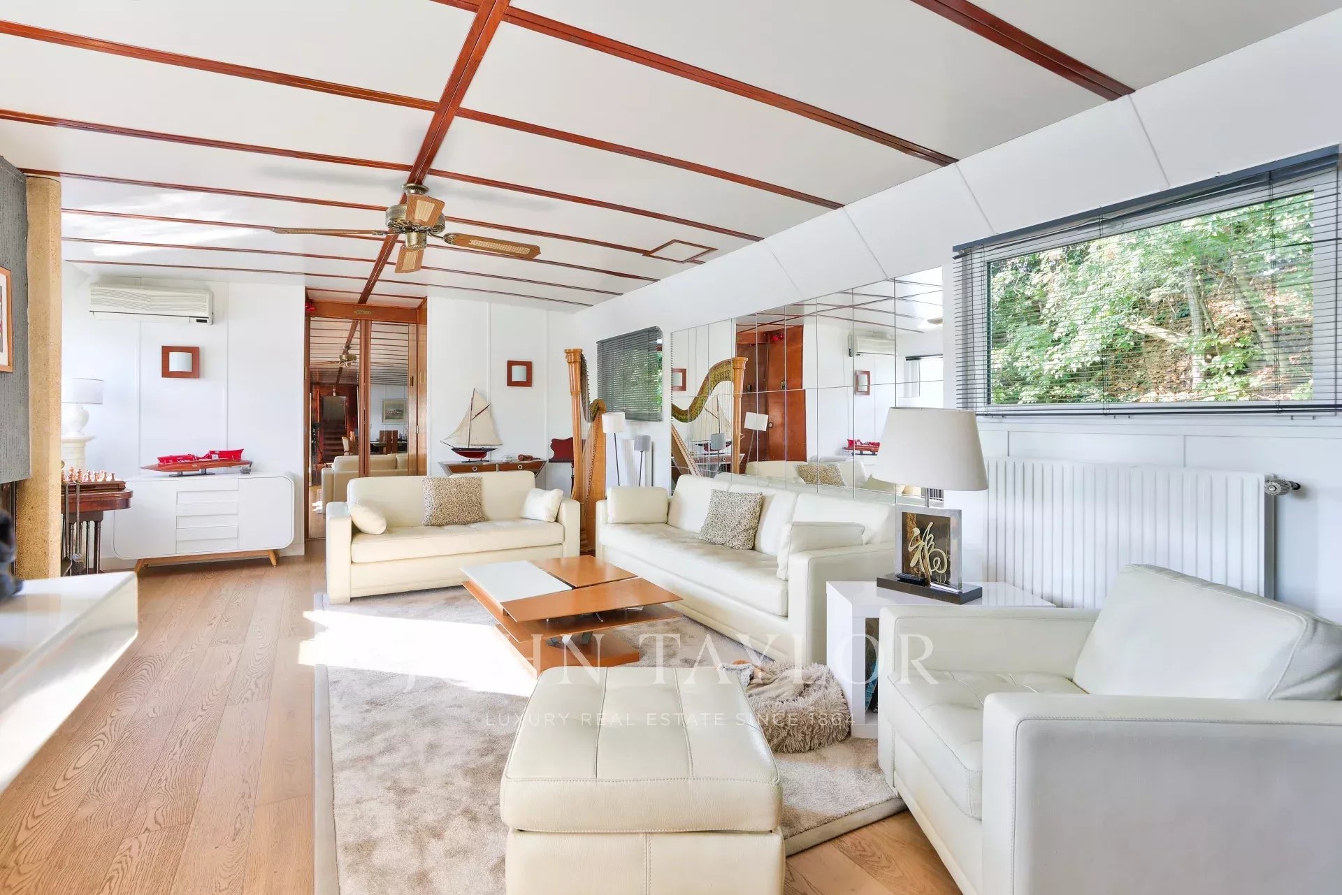 The barge offers a rare combination of space, comfort and originality. Several parking spaces are available nearby, and there are no notary fees for this type of property.