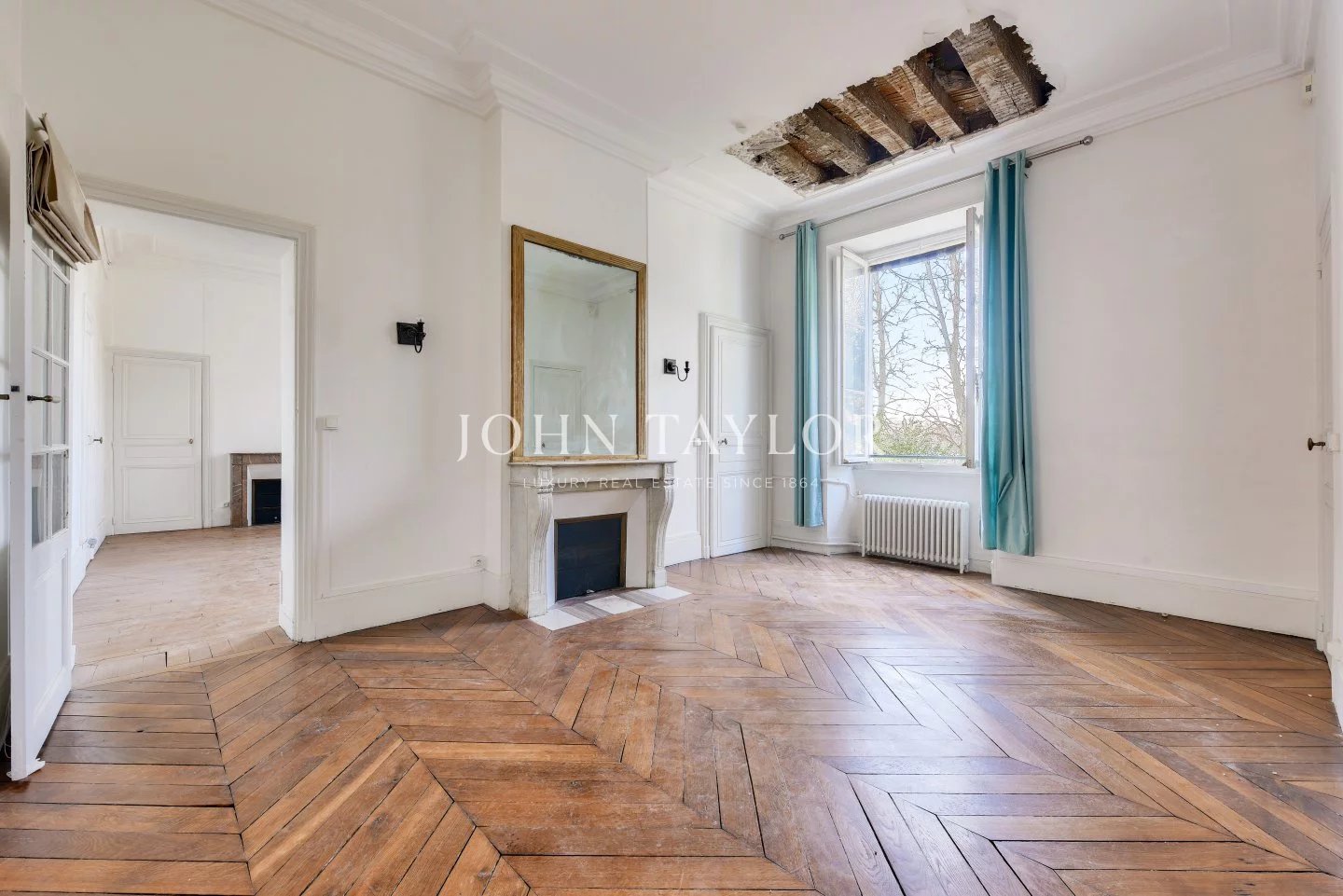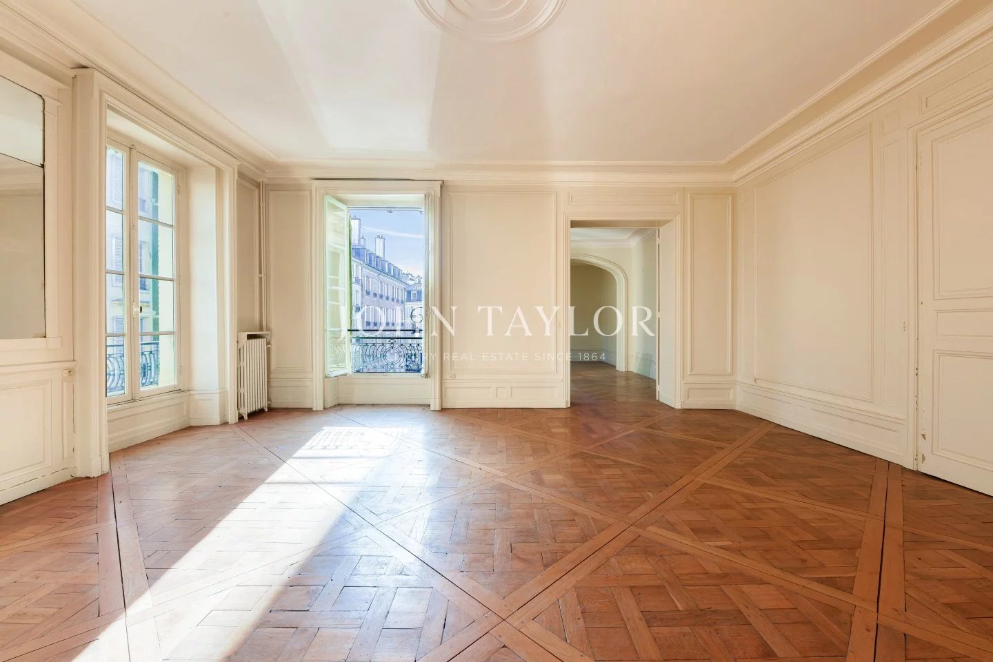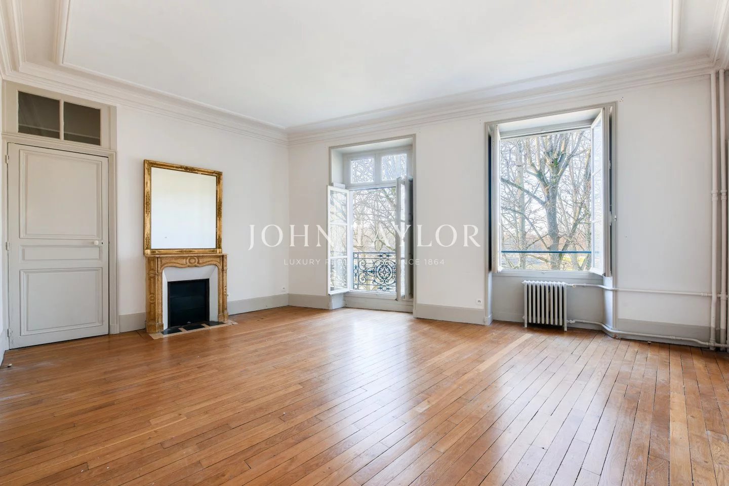 The apartments benefit from high ceilings, uninterrupted light thanks to east-west exposure, and Hausman-style features (solid parquet flooring, moldings, fireplaces).