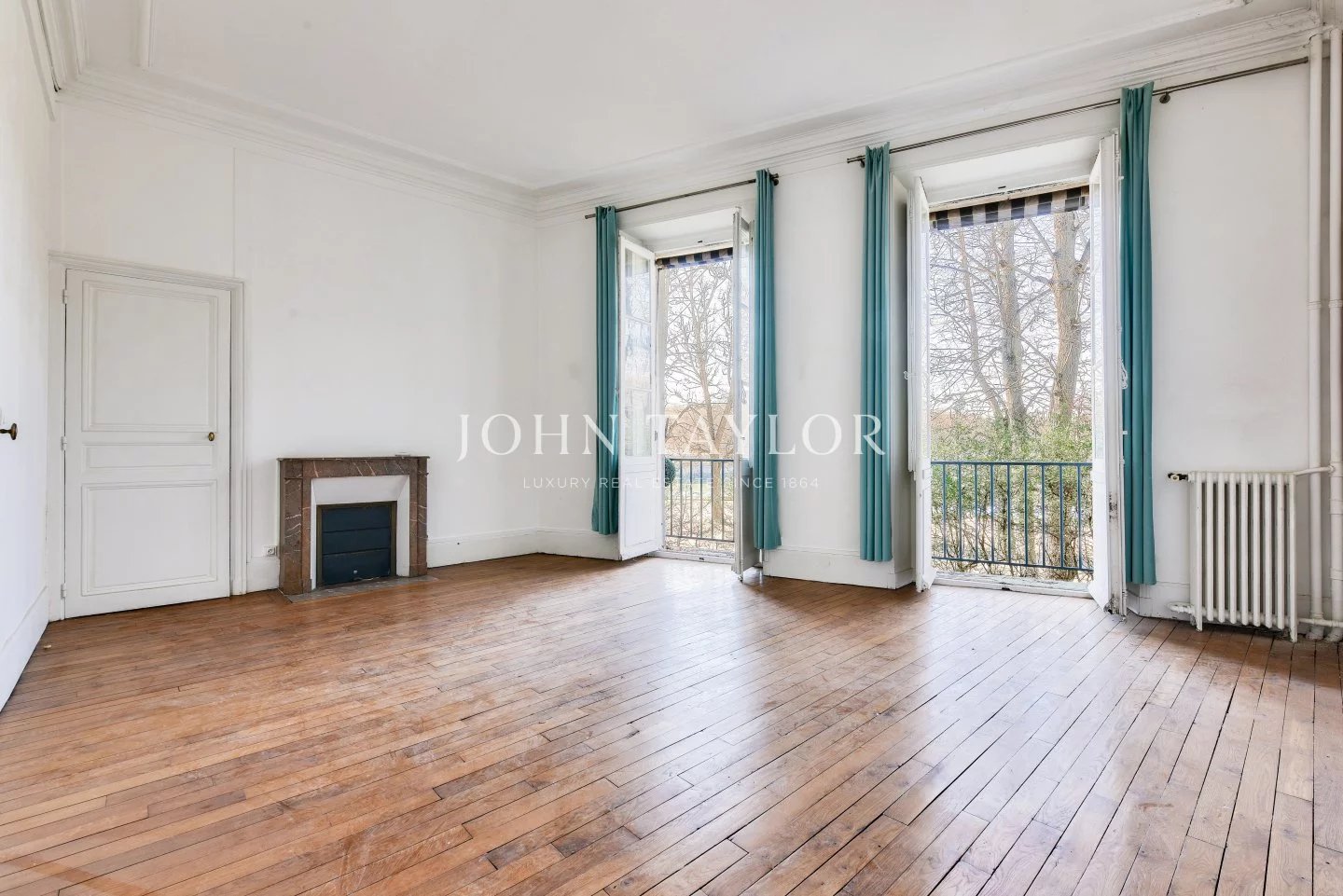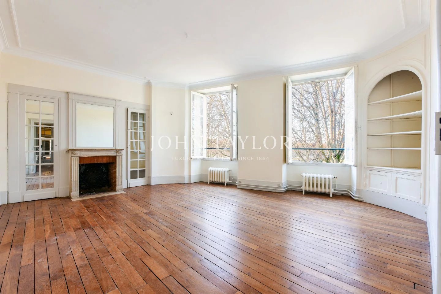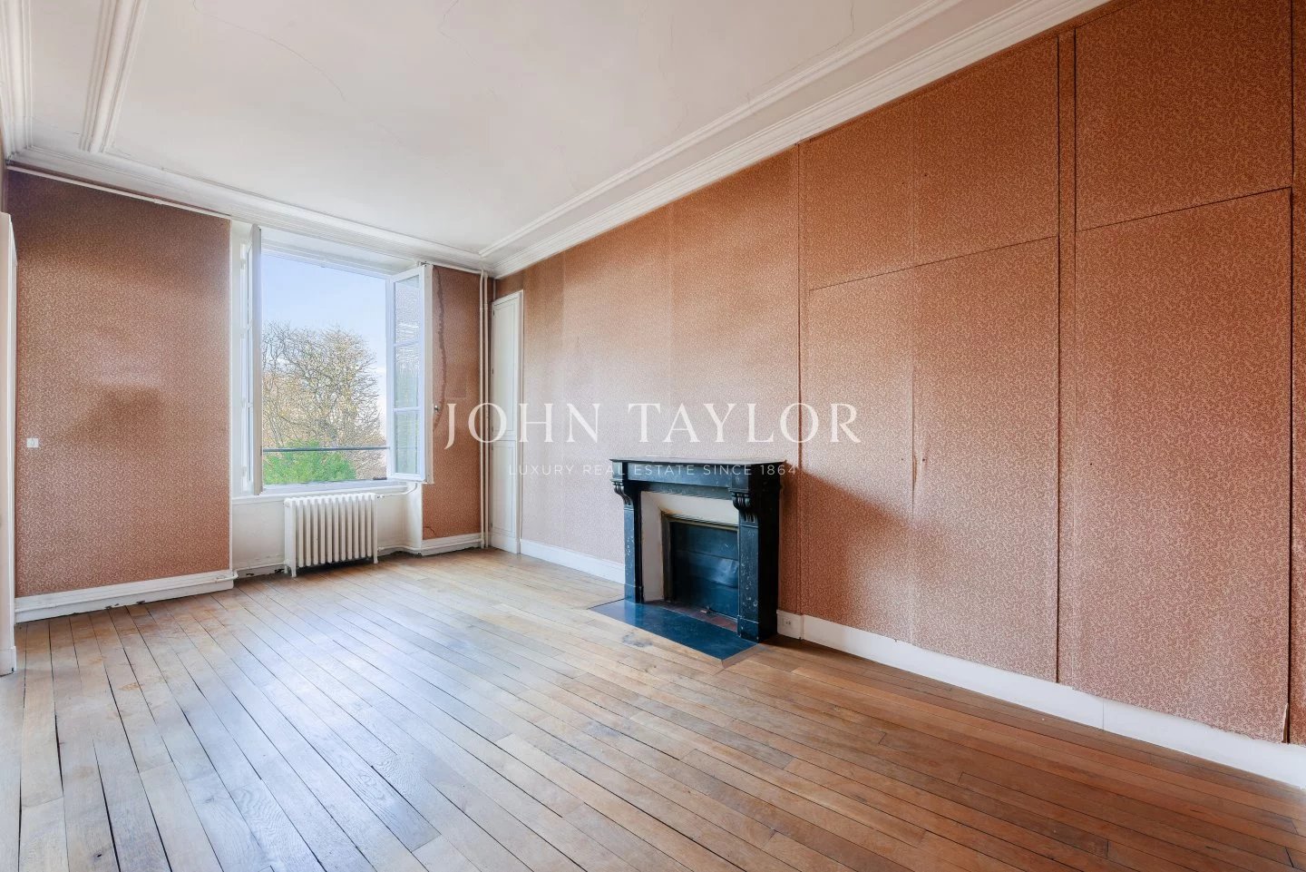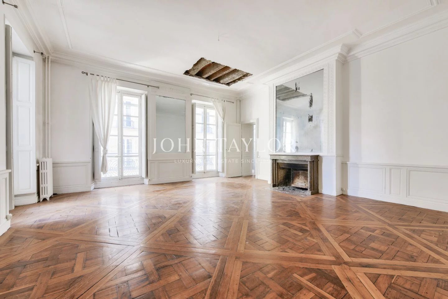 The apartments benefit from high ceilings, uninterrupted light thanks to east-west exposure, and Hausman-style features (solid parquet flooring, moldings, fireplaces).