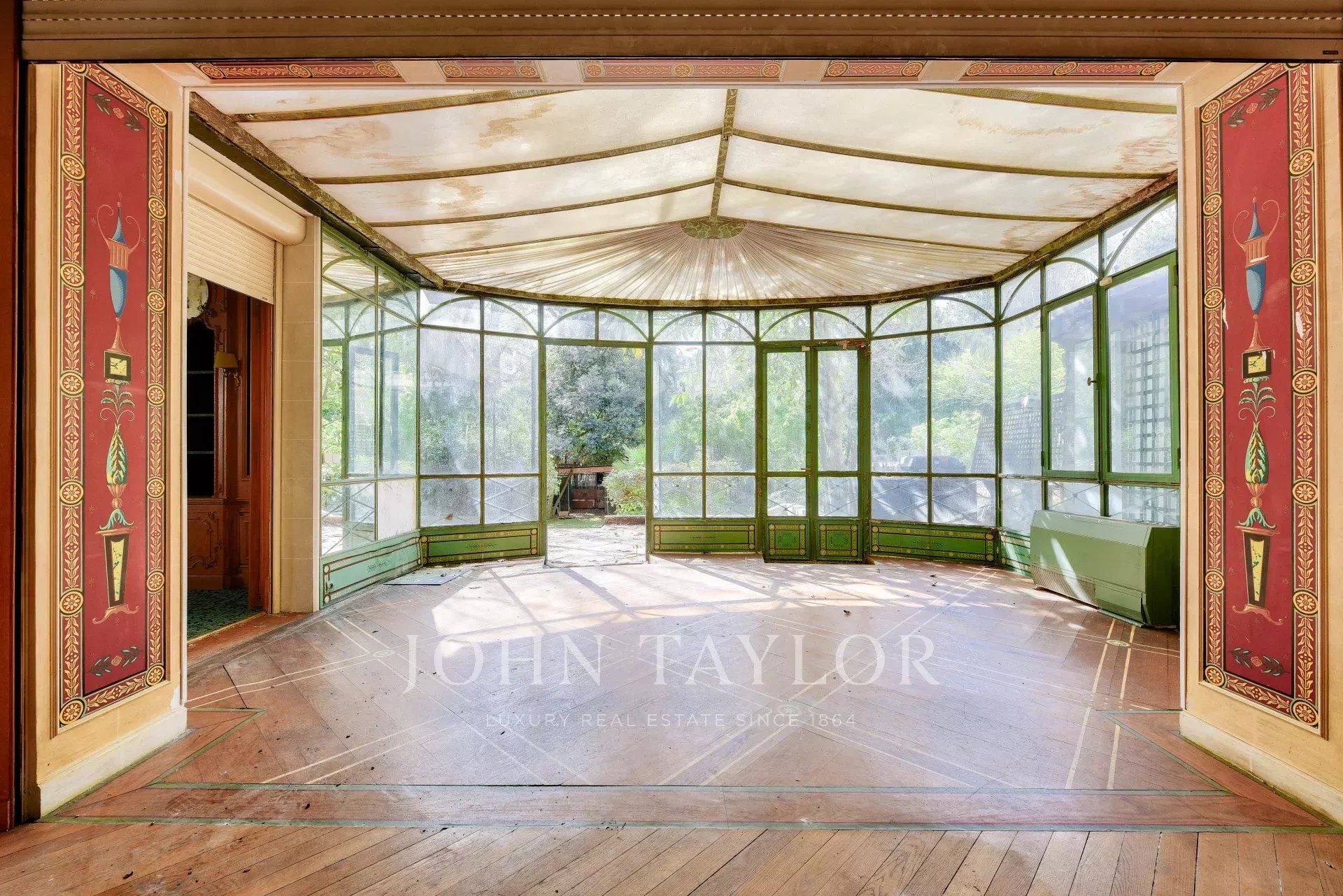 In a peaceful street in the 16ᵉ arrondissement, close to the Seine, discover this superb private mansion with generous volumes, enhanced by a magnificent southwest-facing garden with no overlooking.