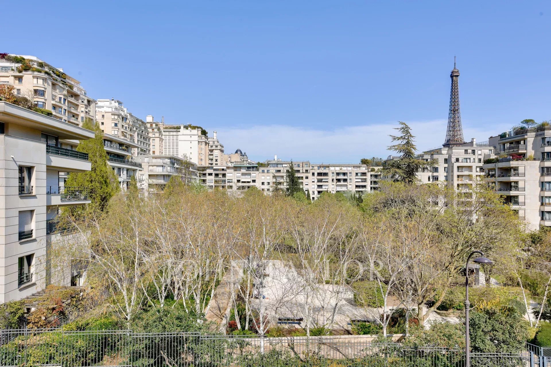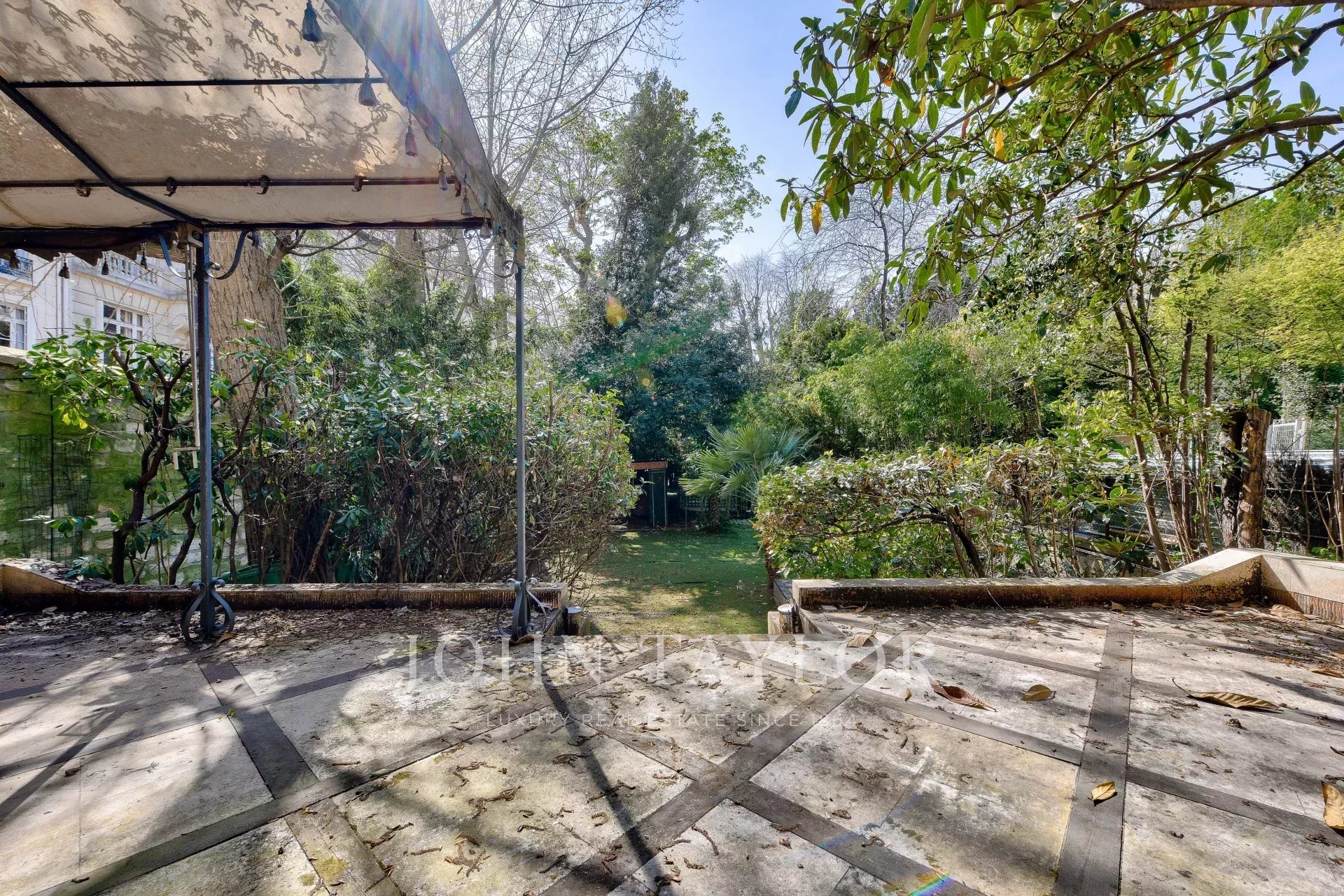 The 250 m² tree-lined garden is a haven of peace, offering calm and privacy in the heart of Paris.