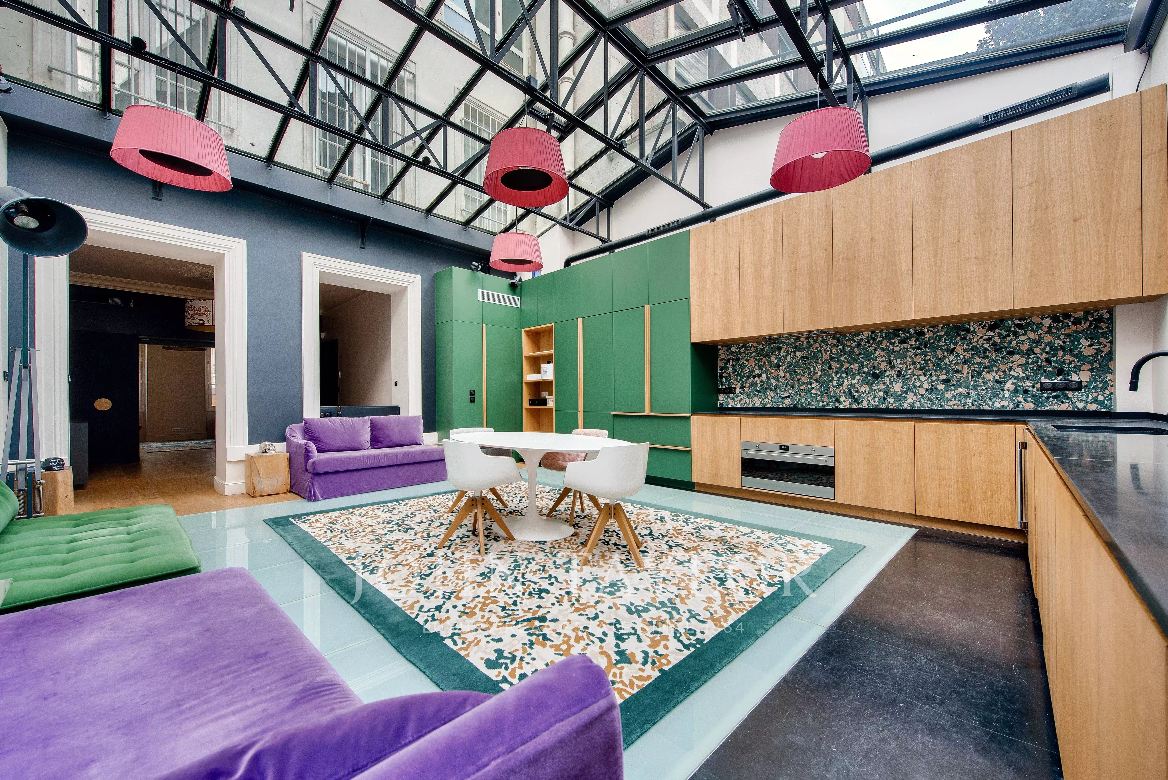 Near La Muette, we offer for sale a charming 332m² town house with a magnificent glass roof.