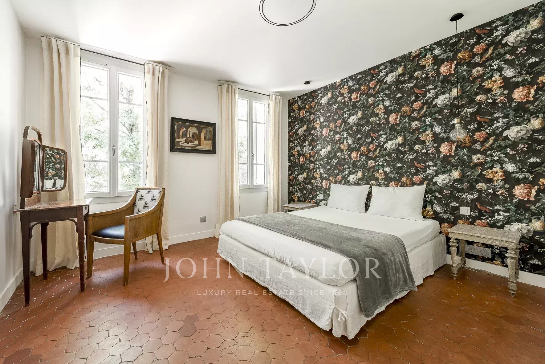The house offers an ideal configuration for entertaining or hosting family and friends: two bedrooms upstairs, and a superb independent master suite on the garden level, accessible from the garden or the garage.