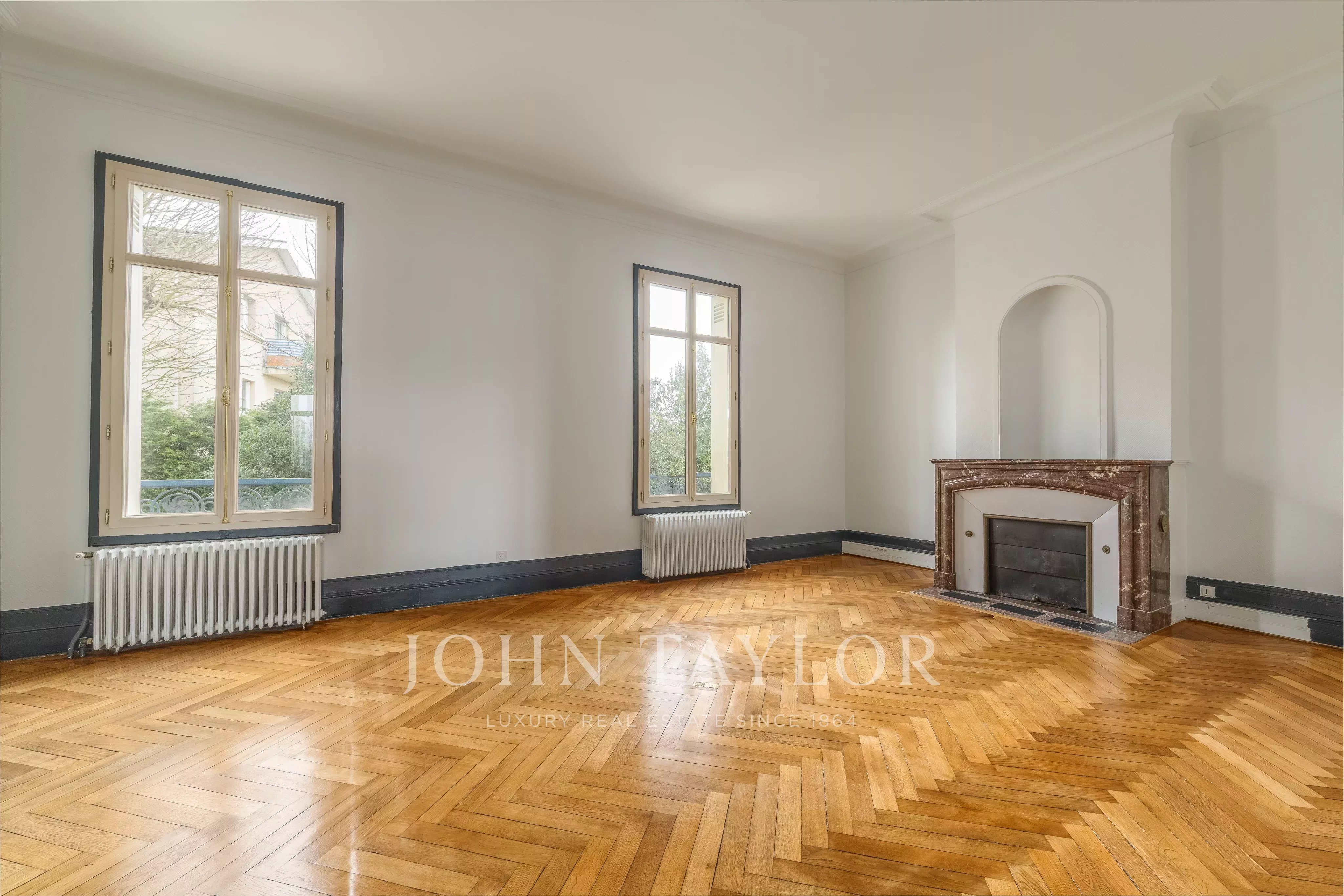 The building’s historic façade and classic architecture exude charm and distinction, making a memorable impression on clients and visitors alike. Large windows throughout fill the interiors with natural light, creating a pleasant working environment. Mature trees and a private garden add a touch of tranquility, while the spacious driveway provides convenient parking for staff and guests.