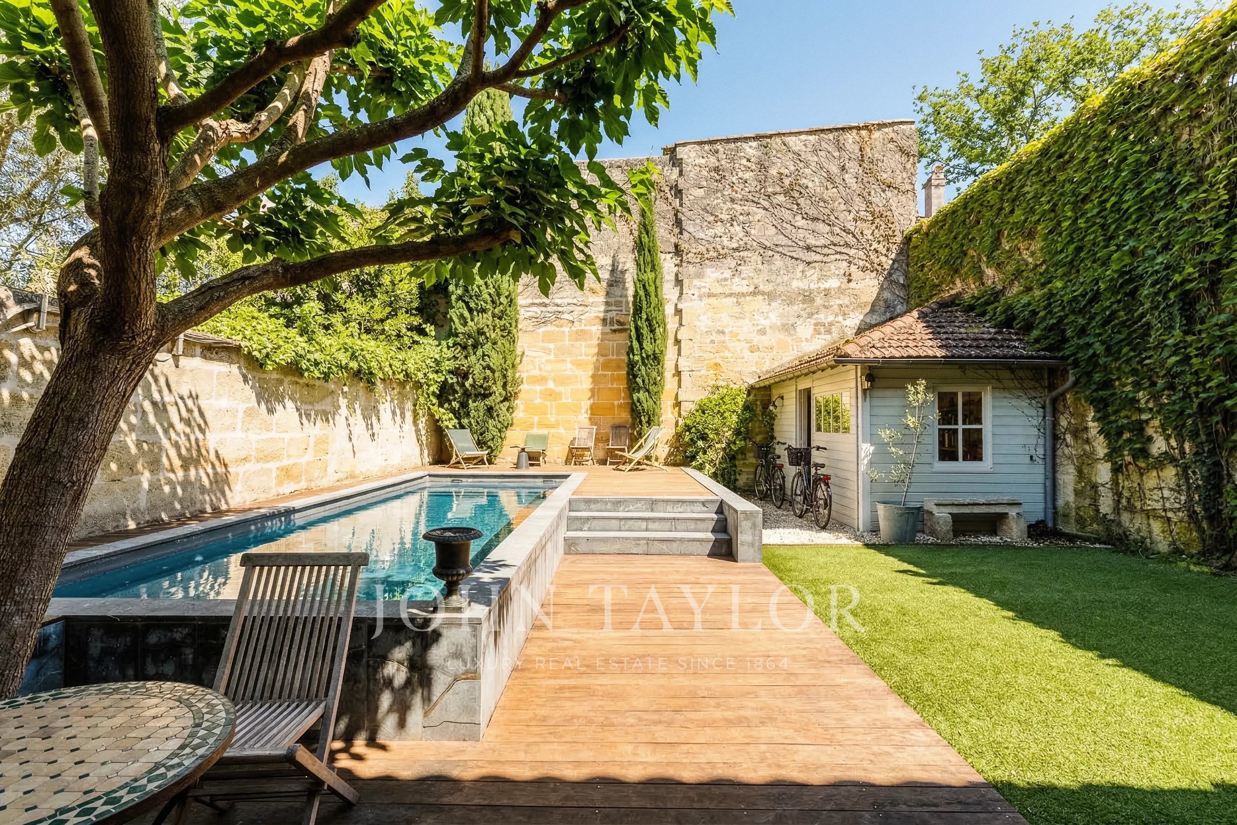 Located in the highly sought-after neighborhood of Saint-Genès, this elegant Bordeaux townhouse, spanning approximately 250 m², captivates with its charm and its 150 m² garden featuring a swimming pool.