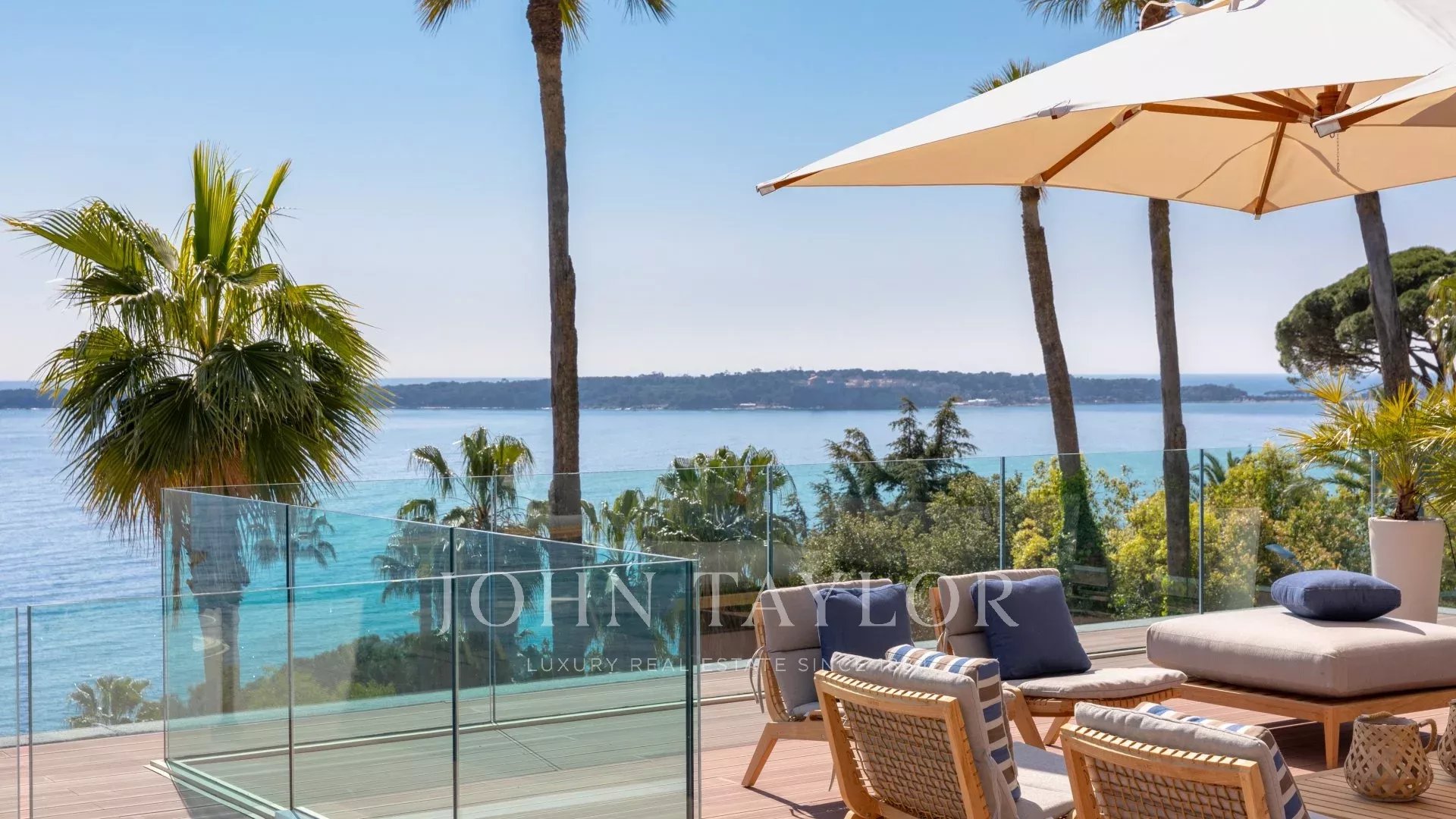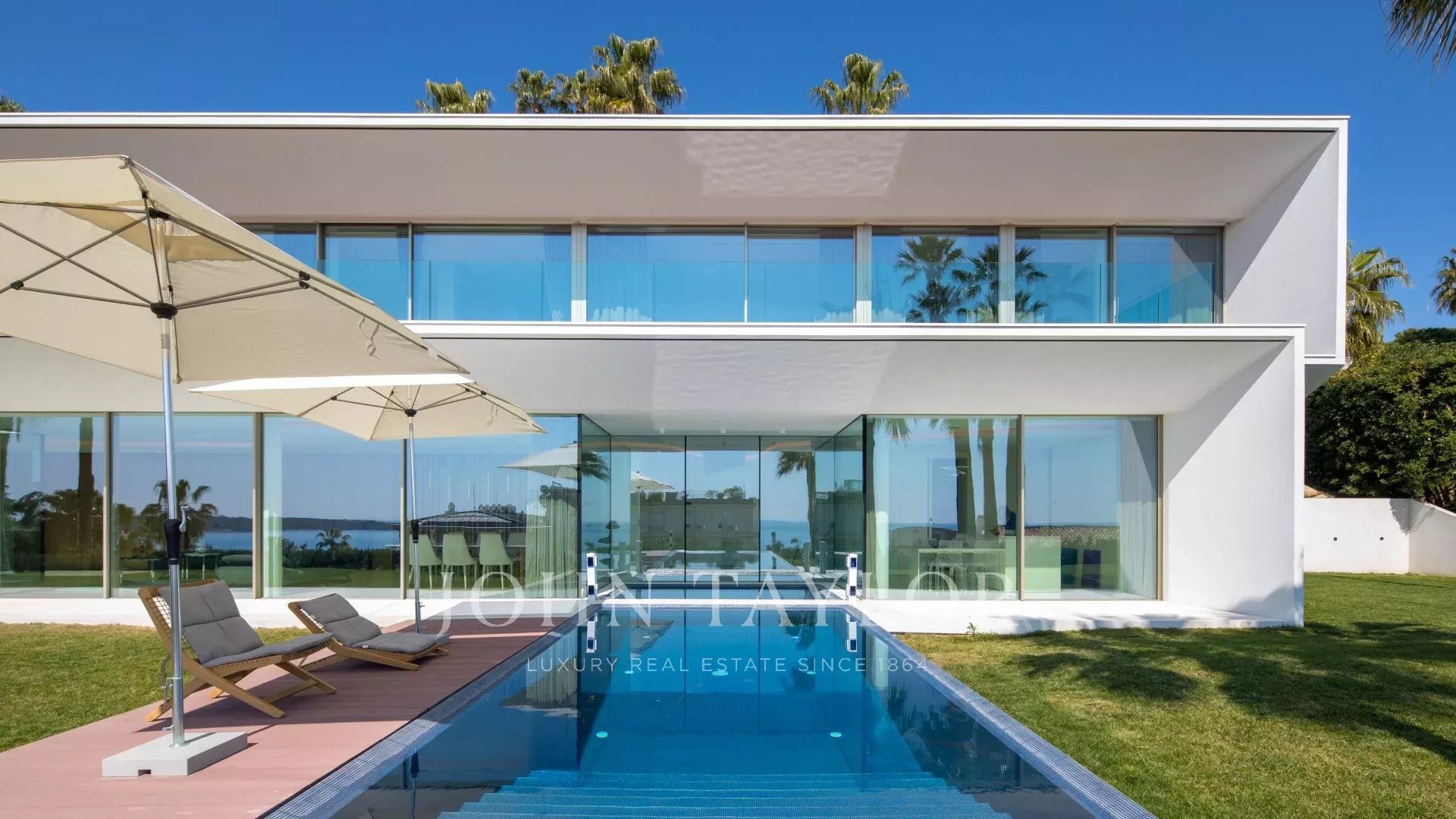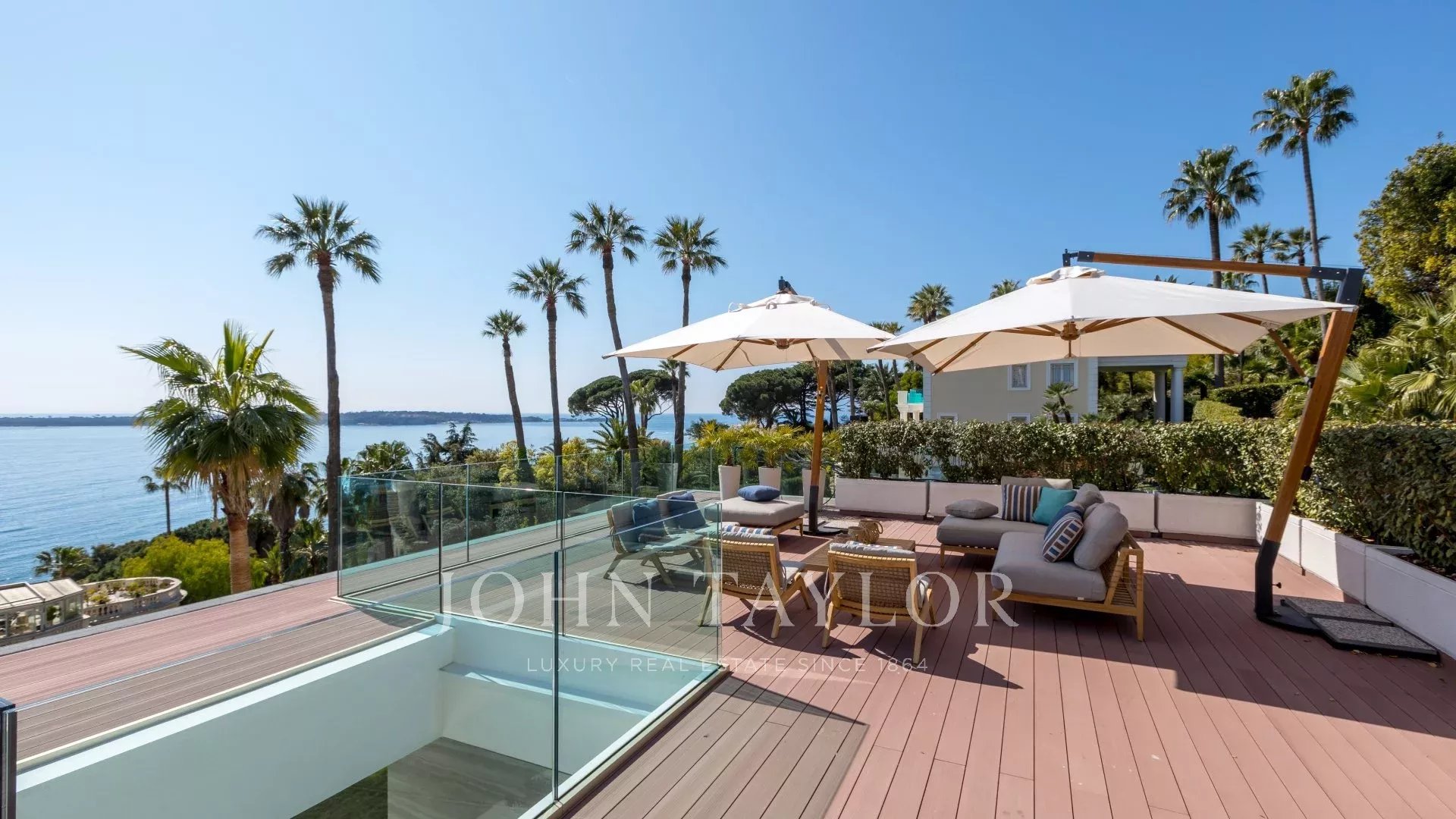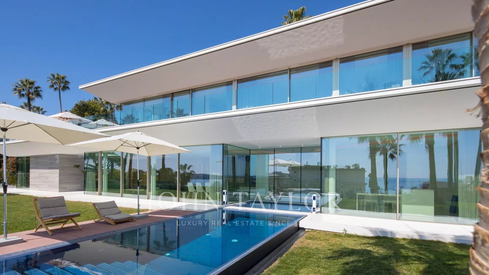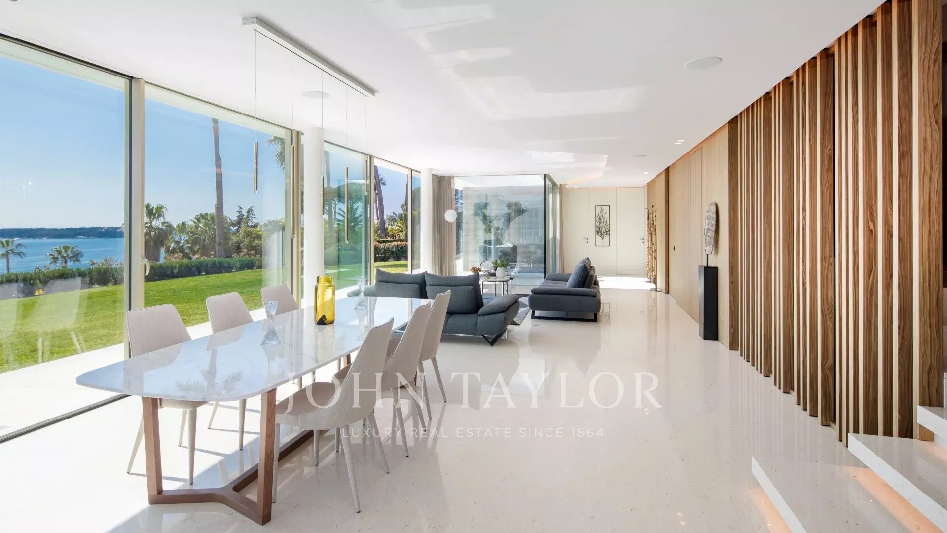 In the heart of one of the most exclusive estates in Cannes, on the edge of the coastline, this splendid, resolutely Californian achievement features an area of approximately 500 sq.m on a landscaped plot of 2,245 sq.m.