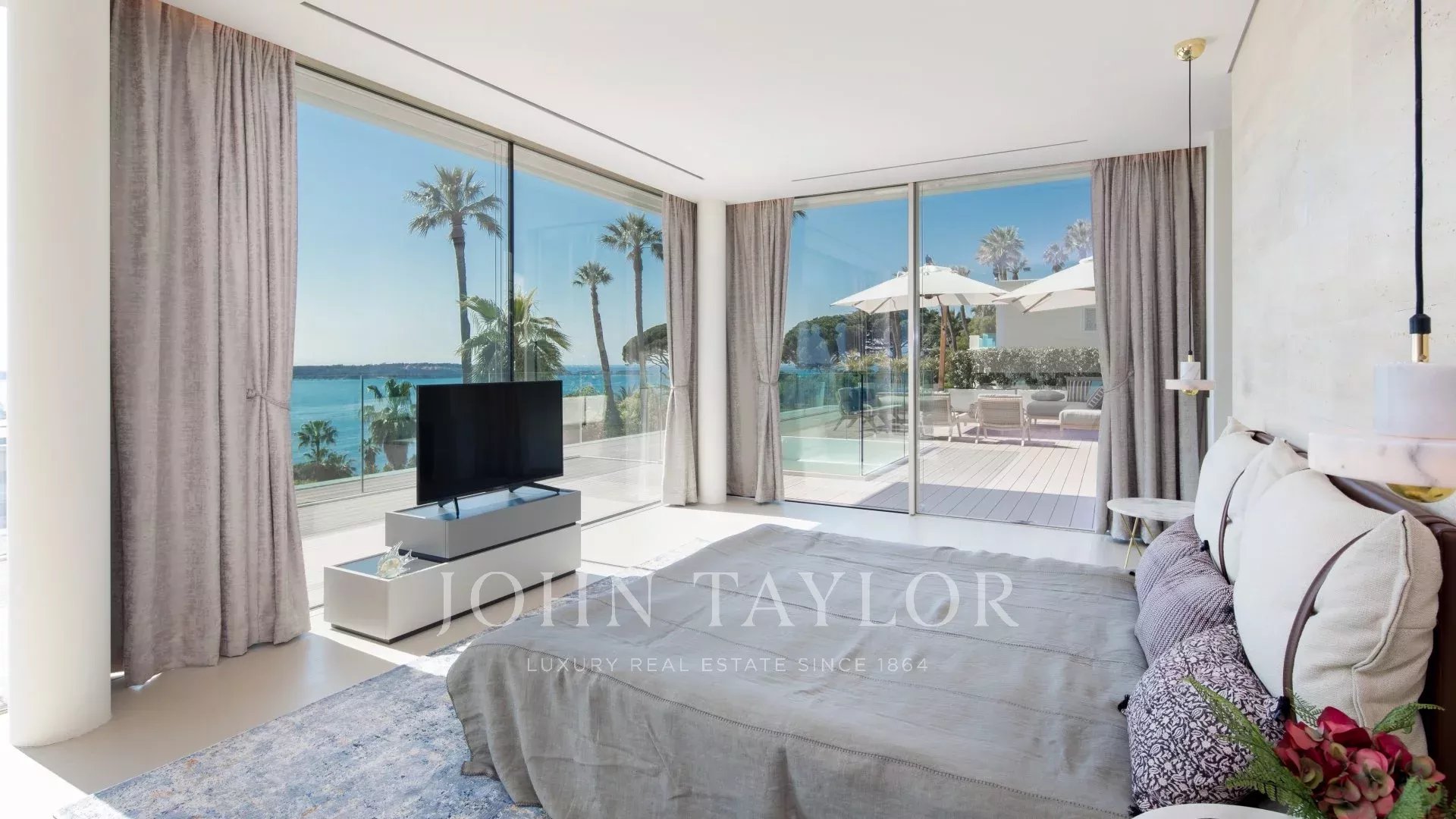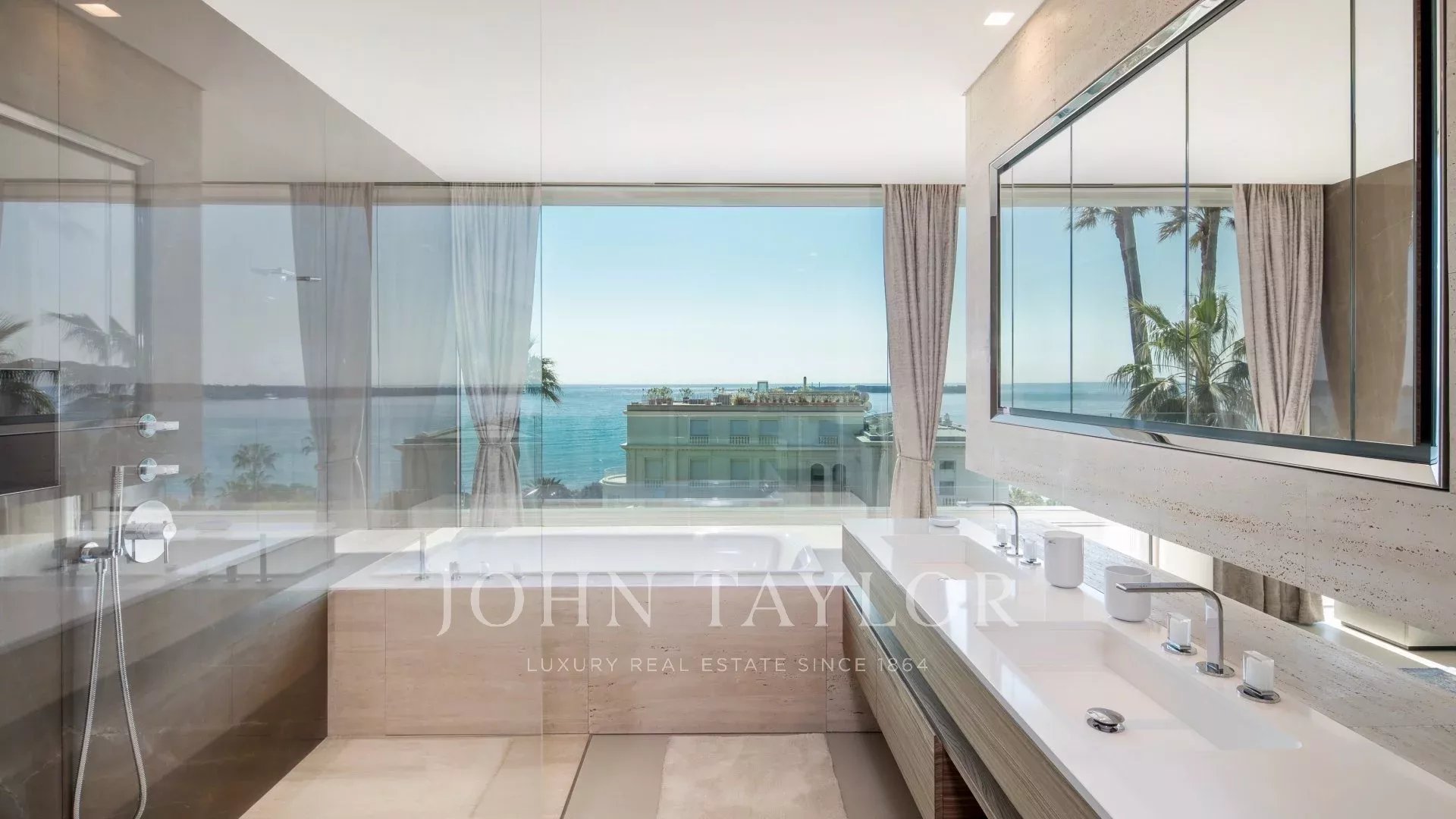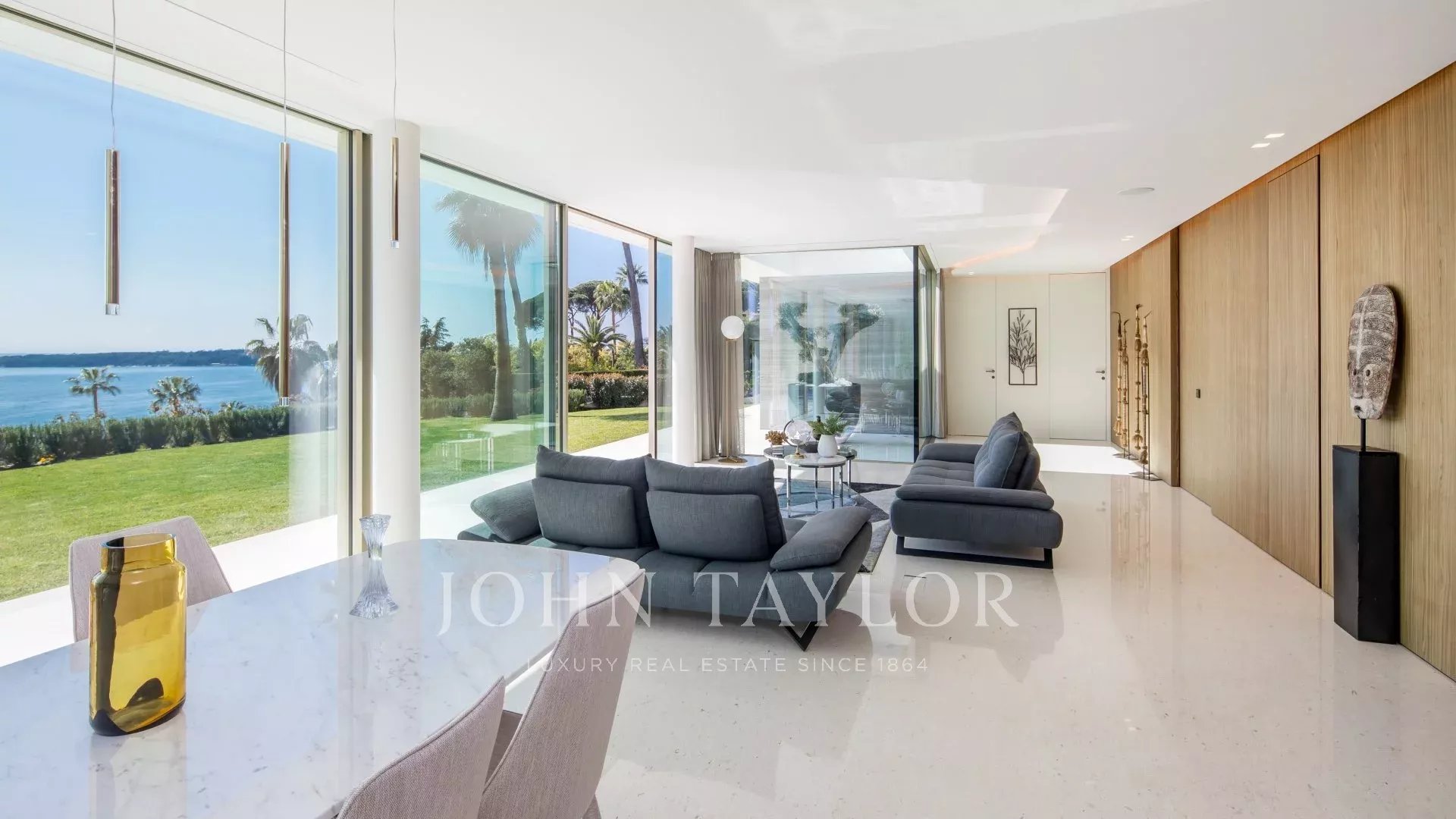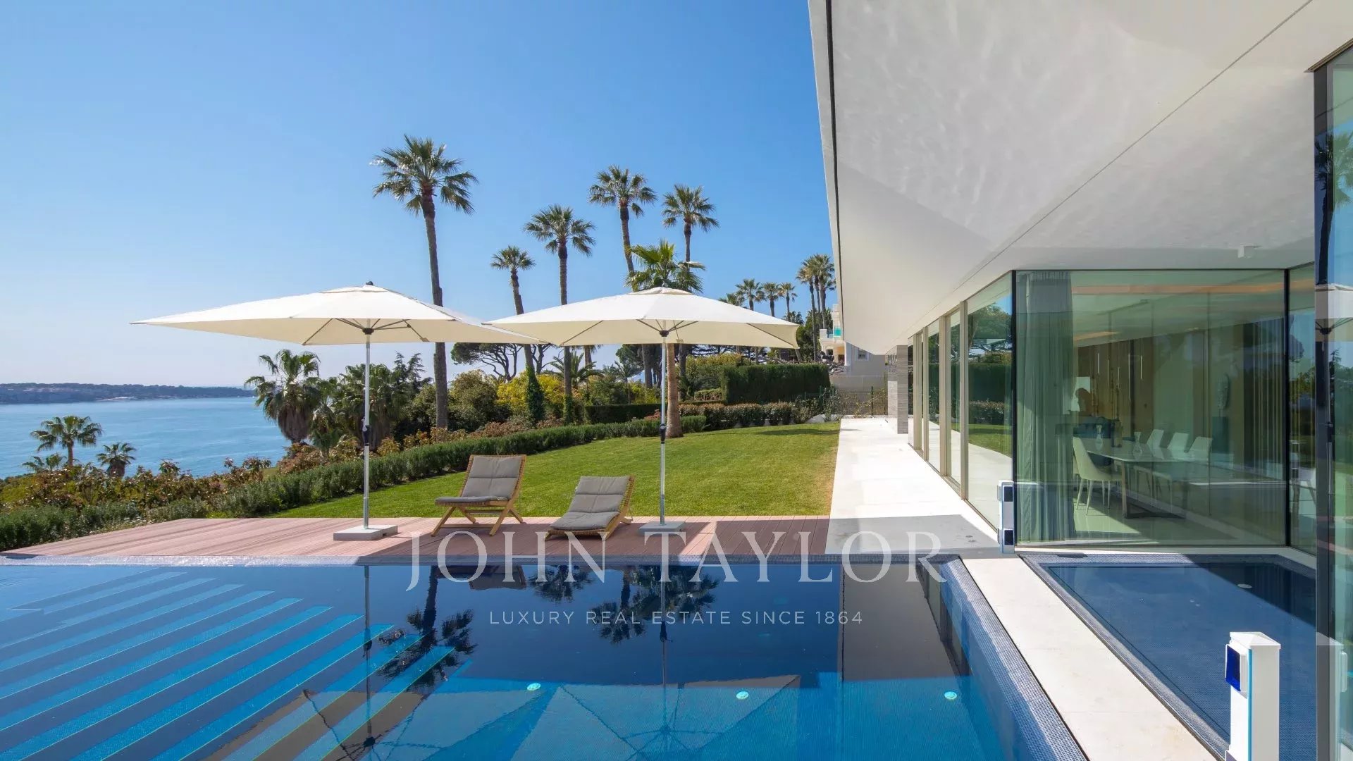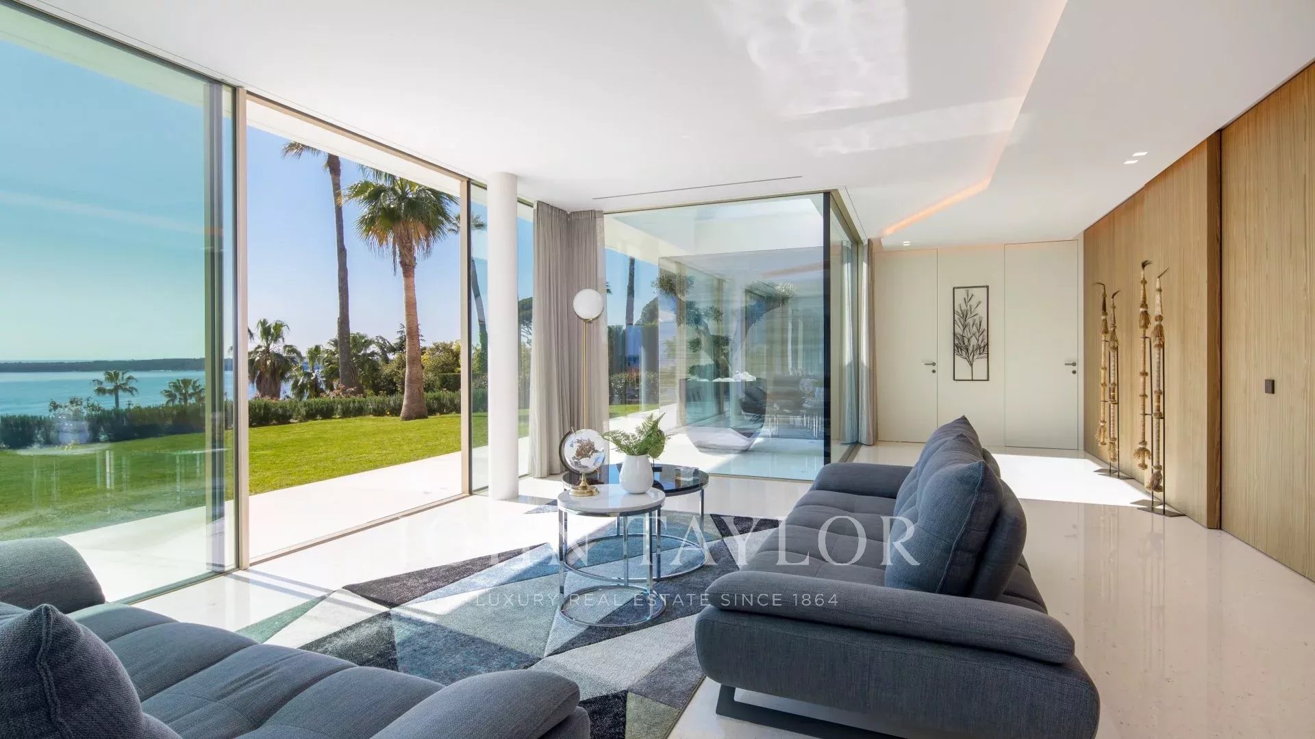 In the heart of one of the most exclusive estates in Cannes, on the edge of the coastline, this splendid, resolutely Californian achievement features an area of approximately 500 sq.m on a landscaped plot of 2,245 sq.m.