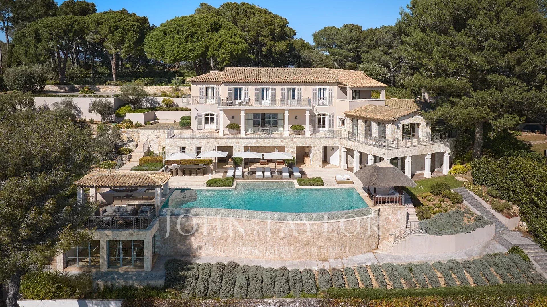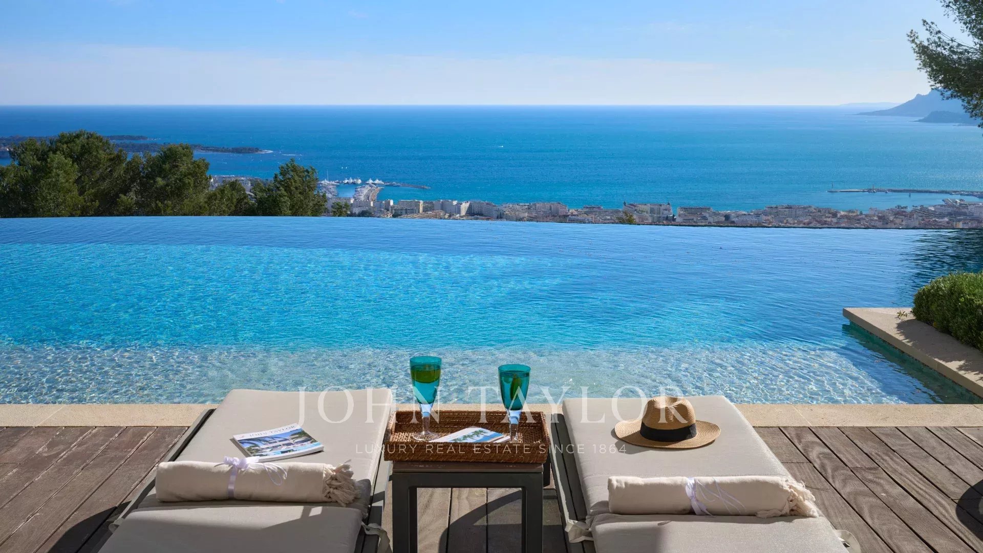 Co-exclusivity. Situated on the heights of Cannes' most coveted hill, this sumptuous property enjoys spectacular panoramic views over the bay, the Lérins islands and the Estérel massif.