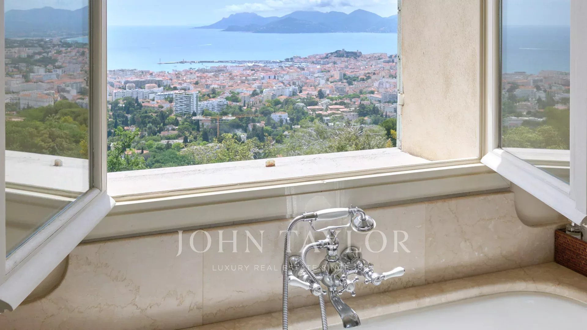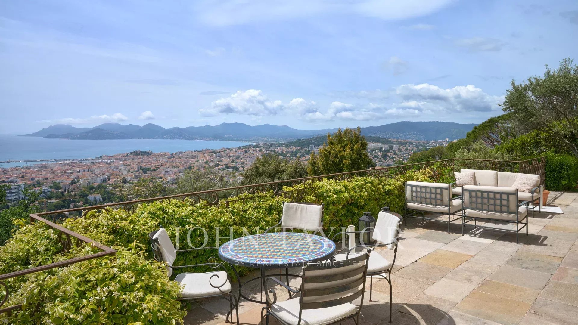 Situated in a renowned, gated and guarded estate, this magnificent villa offers one of the finest sea views over the entire bay of Cannes.