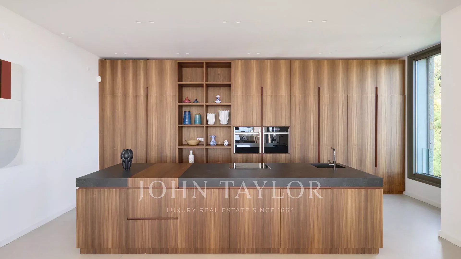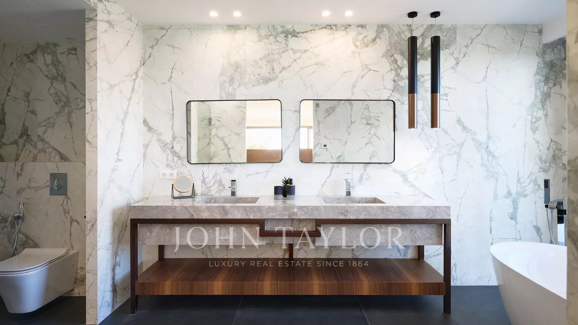 With a surface area of around 500 m², the villa comprises a reception hall on the first floor, a vast living room comprising a double lounge, dining room and open-plan kitchen, an en suite bedroom, dressing room, shower room and guest toilet. Garden level: dining room and open-plan kitchen, laundry room and separate toilet, three en suite bedrooms, master bedroom.