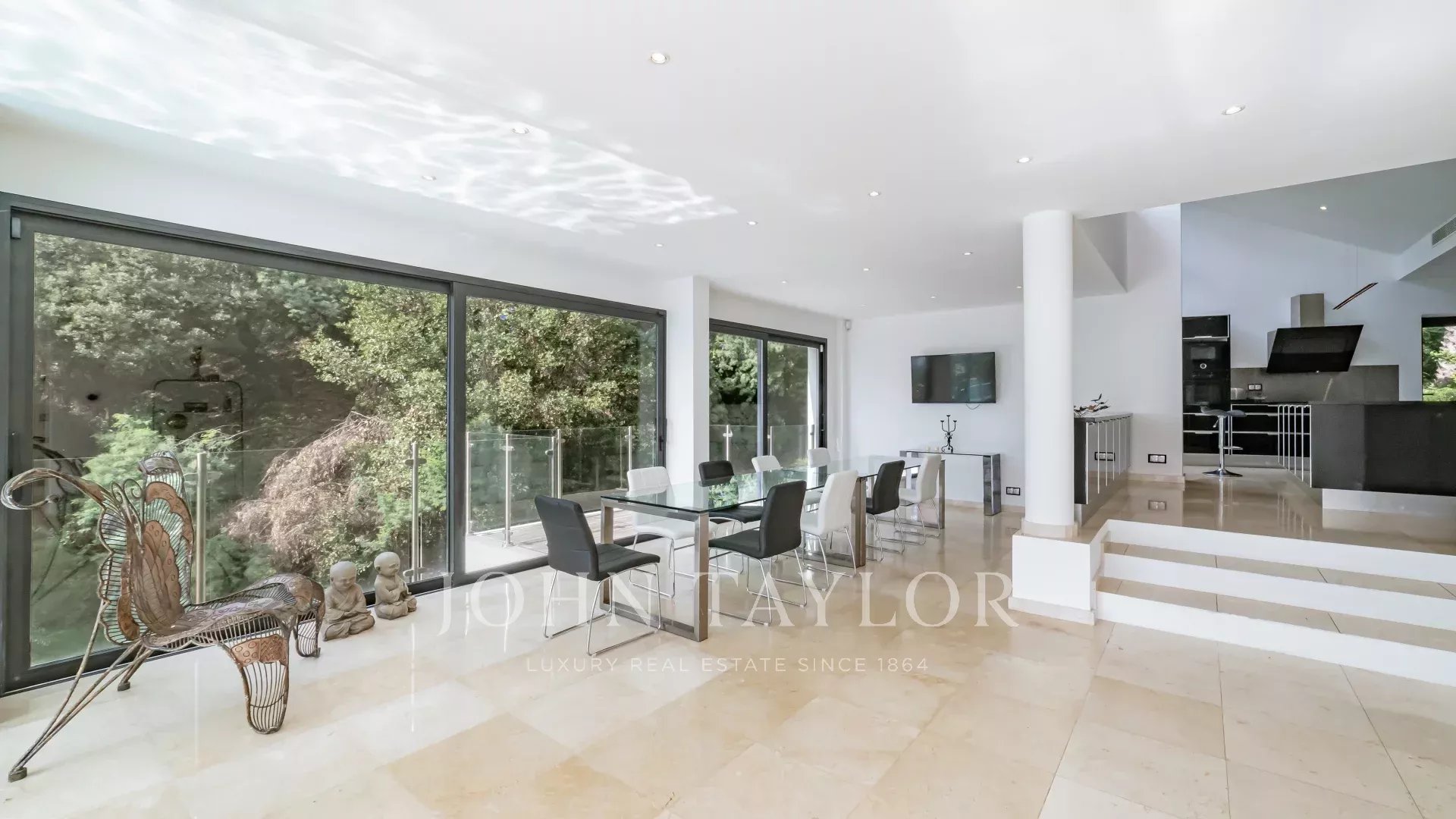 Situated in a quiet, residential area, 500 meters from the beach and 10 minutes from the town center, this bright, contemporary villa offers beautiful materials and an idyllic living environment.