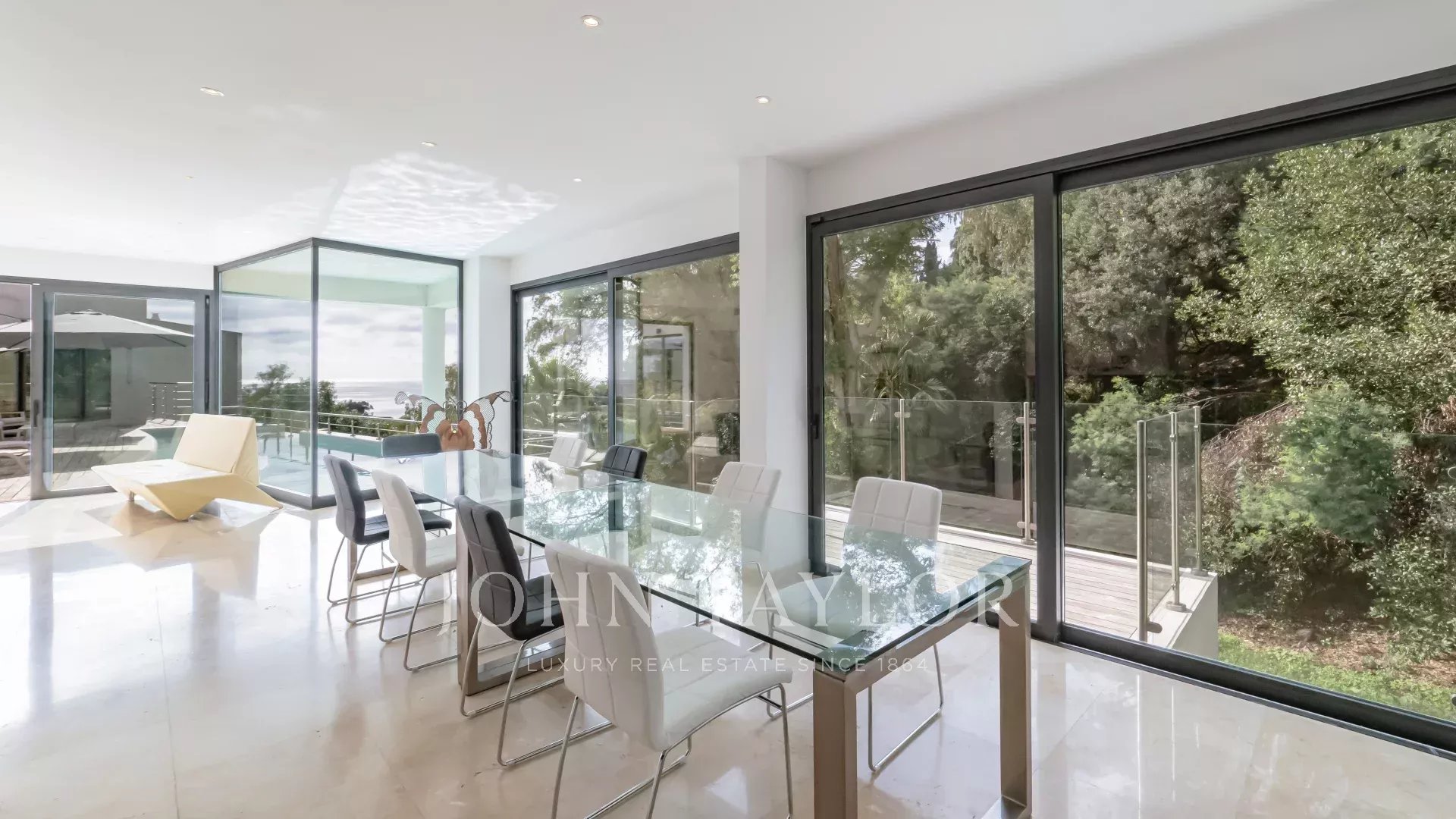 The villa also benefits from a Mediterranean garden on a 6100 m2 plot with a heated infinity pool, a sea view and luxurious amenities.