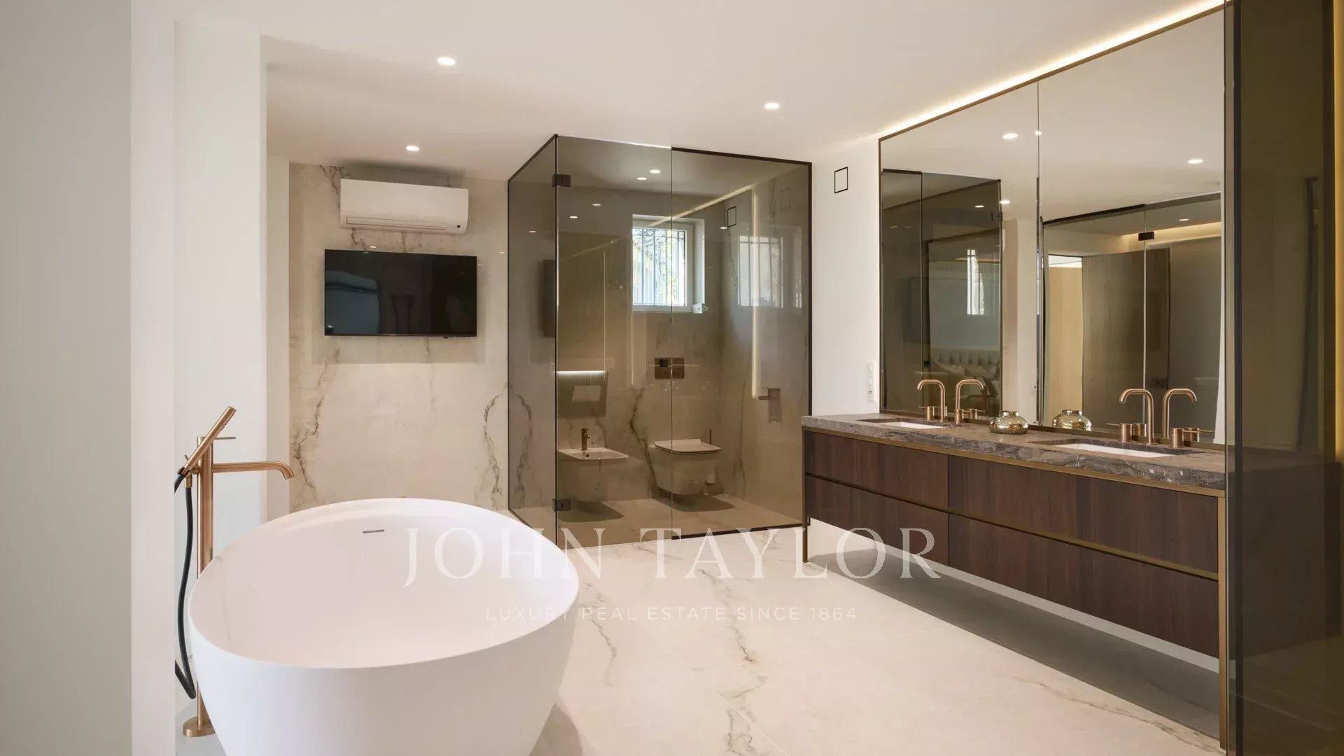 On the garden level: three bedrooms with en-suite shower rooms, a convertible basement and technical rooms, an independent studio, a gym and a home cinema.