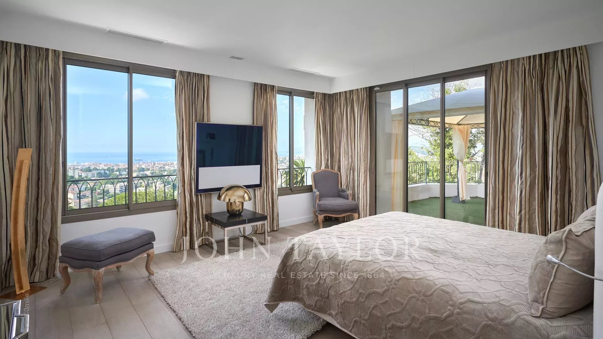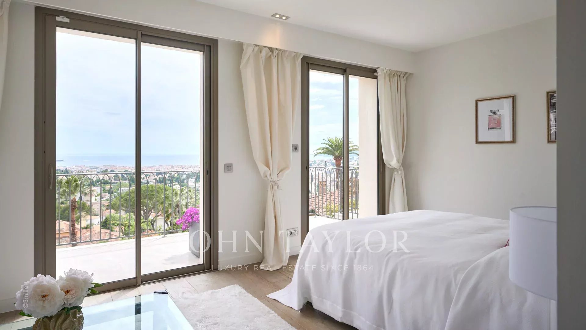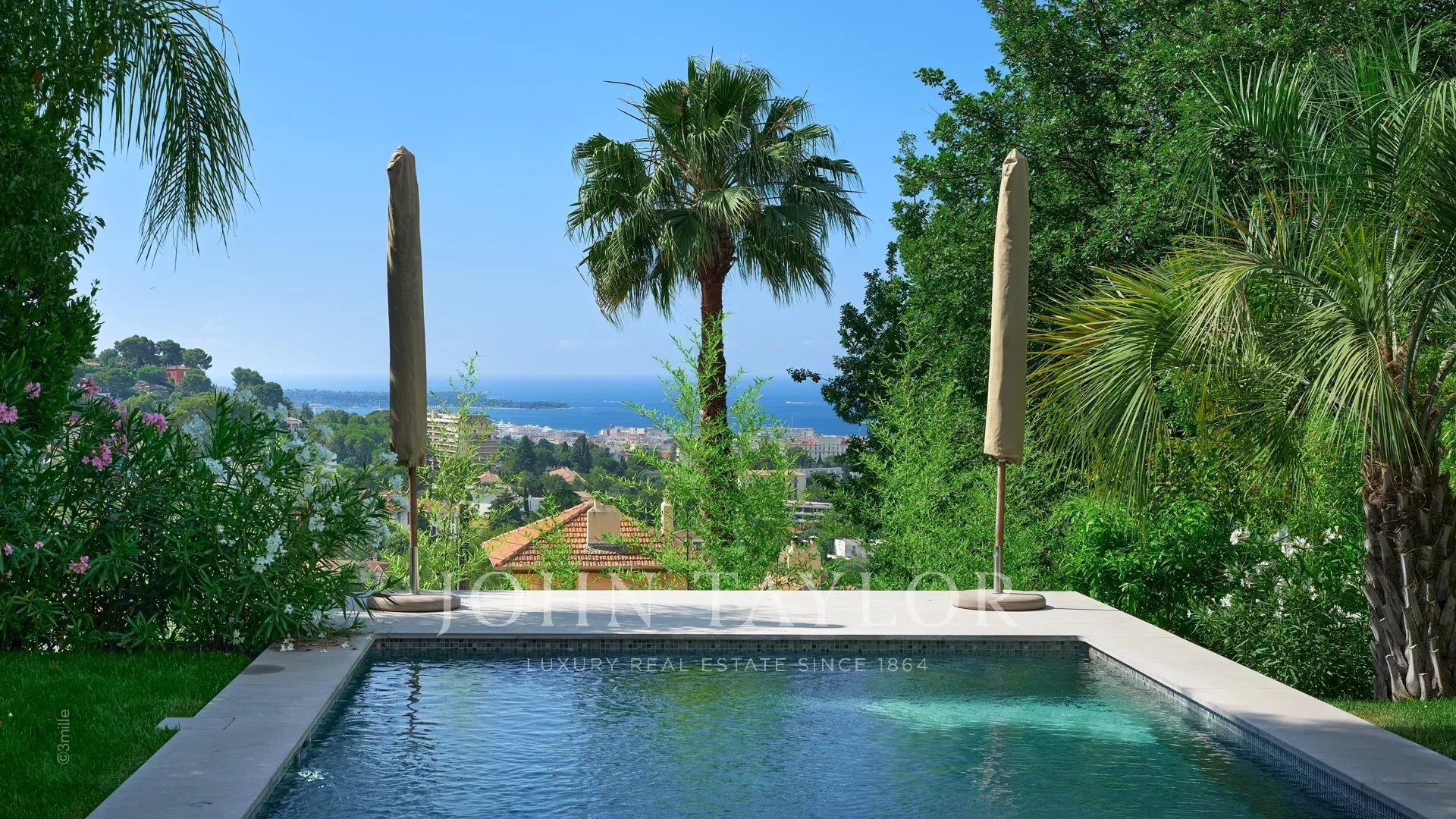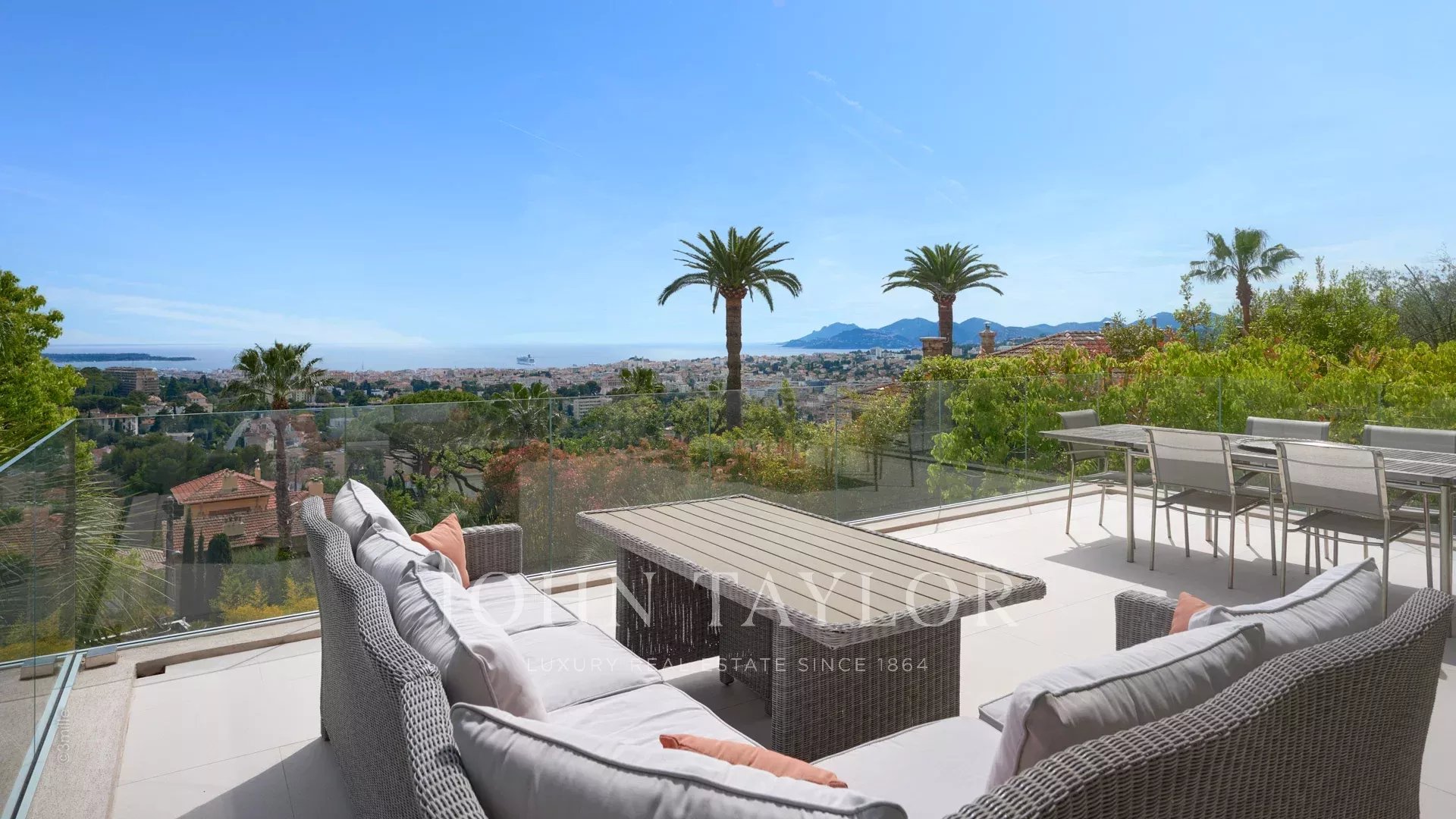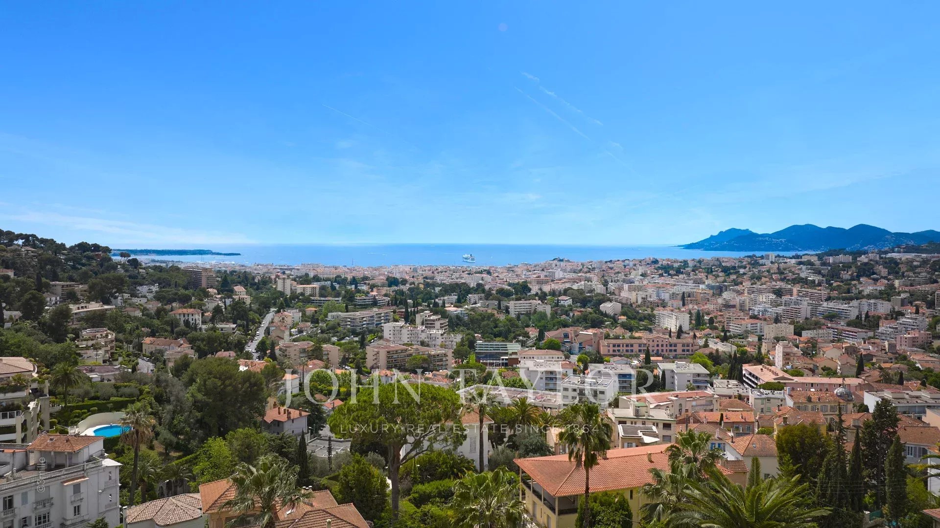 Facing due south and overlooking the bay of Cannes, it enjoys wonderful sea views from the Lerins islands to the Esterel massif.